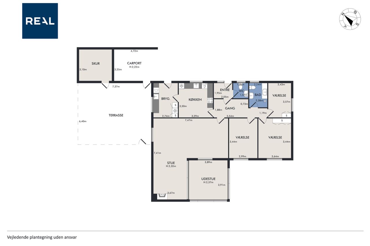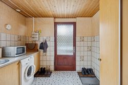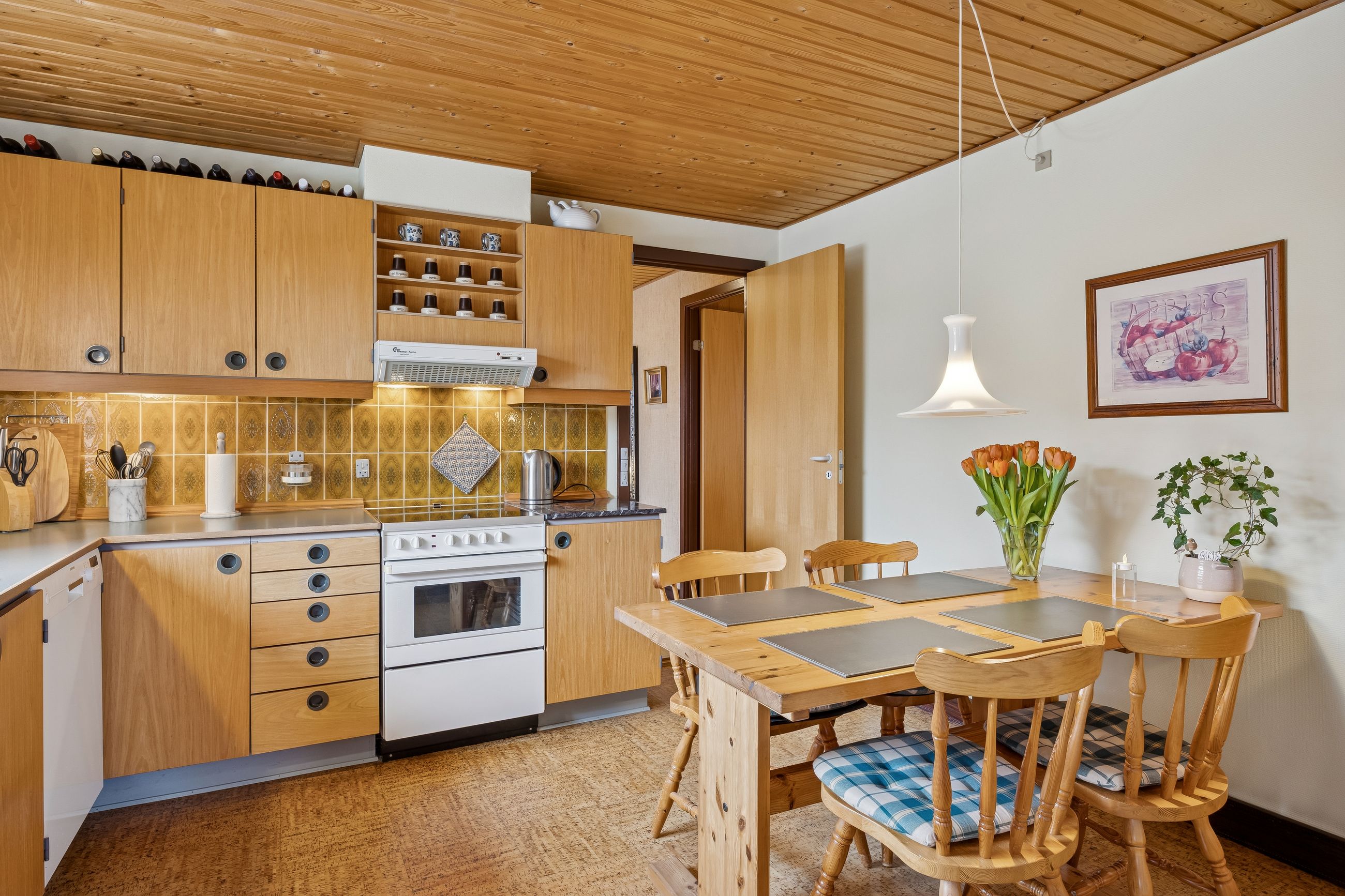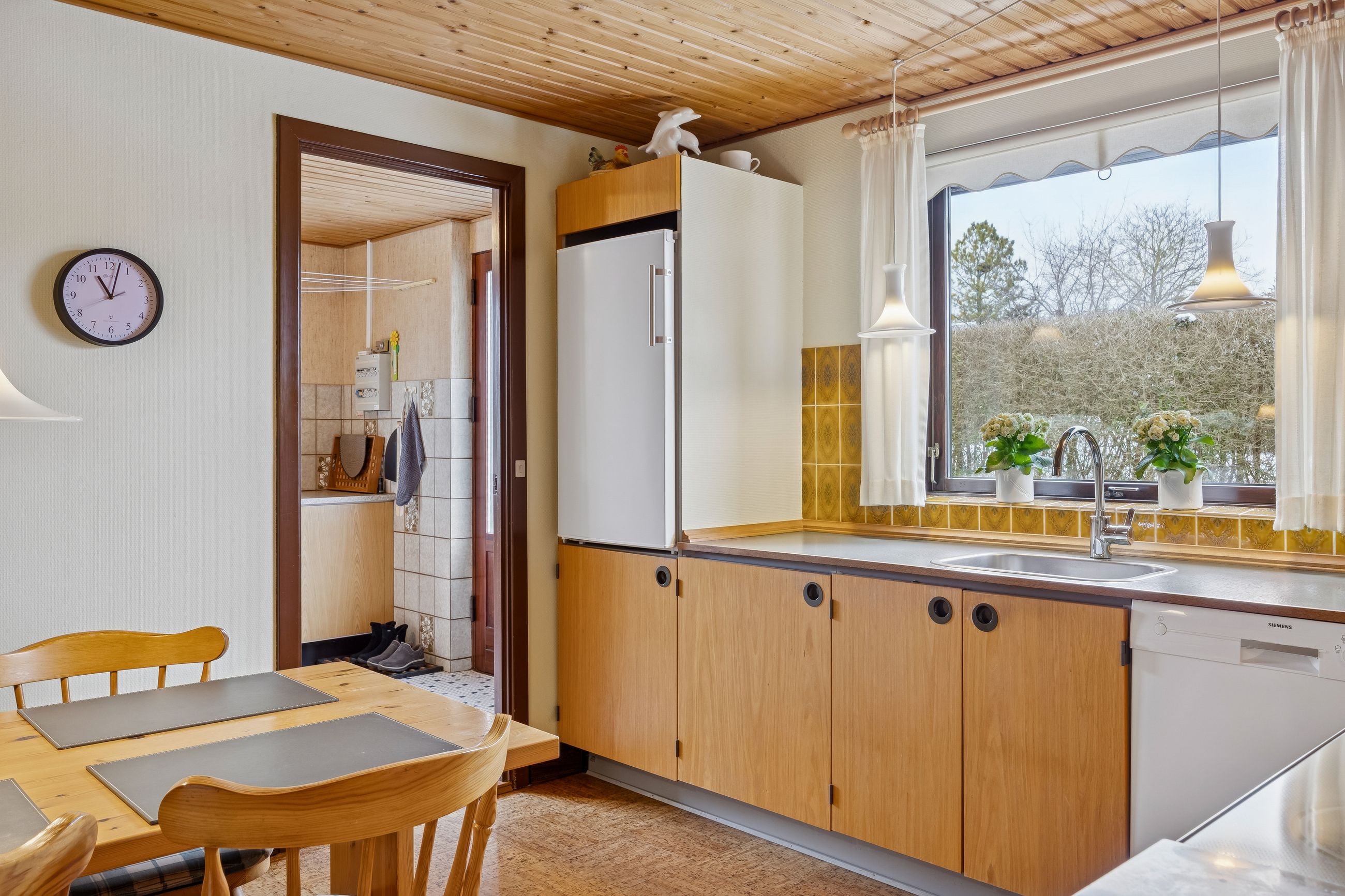 Planløsningen er både funktionel og familievenlig. Boligen byder på et stort og praktisk bryggers med masser af bord- og skabsplads samt god plads til vaskemaskine, tørretumbler m.m. Det hyggelige og funktionelle køkken ligger i direkte forbindelse med stuen, og her er oplagt mulighed for at åbne op og skabe et moderne køkken-alrum.