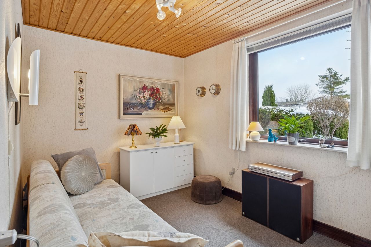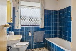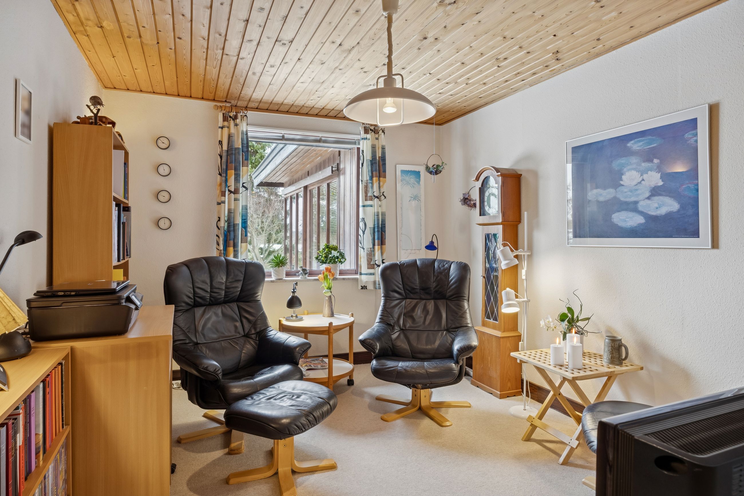 Derudover rummer huset et gæstetoilet, et badeværelse med badekar samt tre gode og regulære værelser, der nemt kan indrettes som børneværelser, soveværelse eller hjemmekontor.