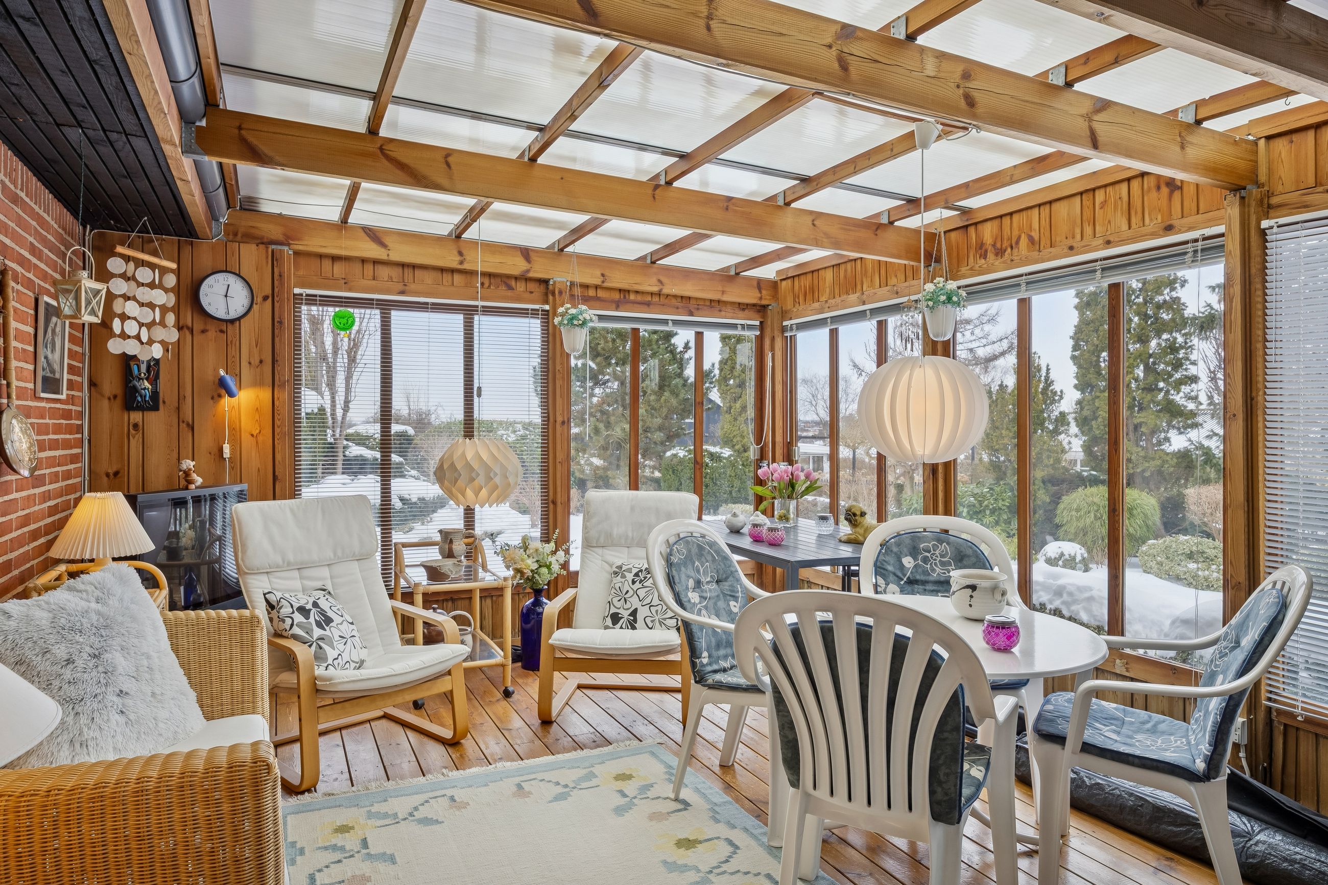 Stuen er stor og rummelig med plads til flere naturlige zoner – spiseafdeling, kaffehjørne og hyggekrog. Herfra er der direkte udgang til den charmerende udestue, som forlænger sommeren og danner ramme om mange lange aftener, når duggen falder.