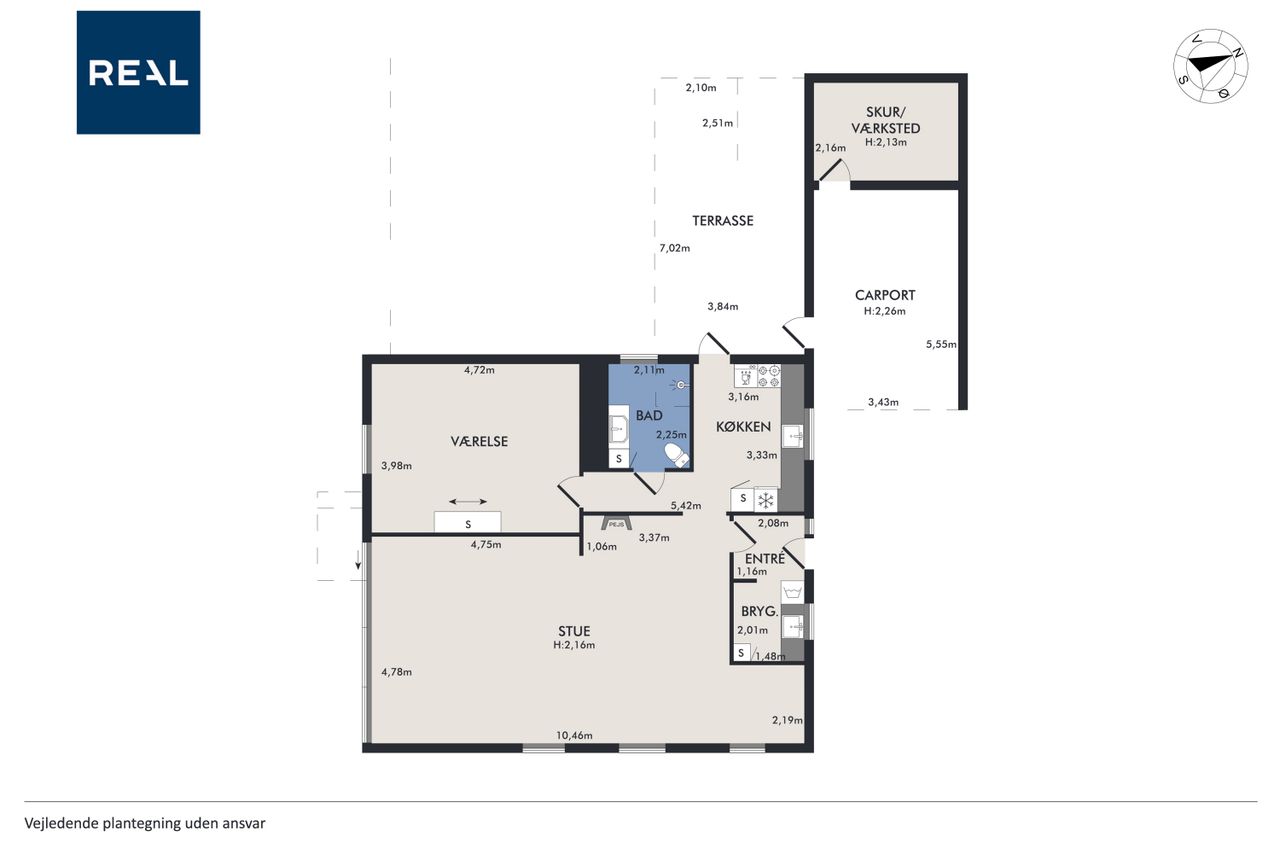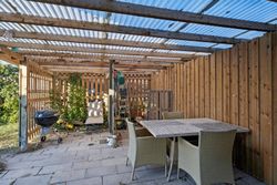 Ejendommen byder på carport med tilhørende skur samt en dejlig overdækket terrasse, som forlænger sommeren og inviterer til lange aftener i læ for dug og regn.
