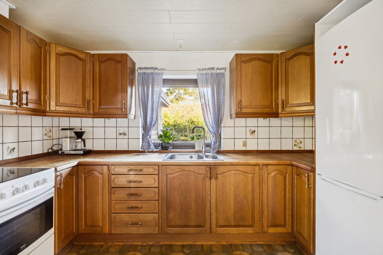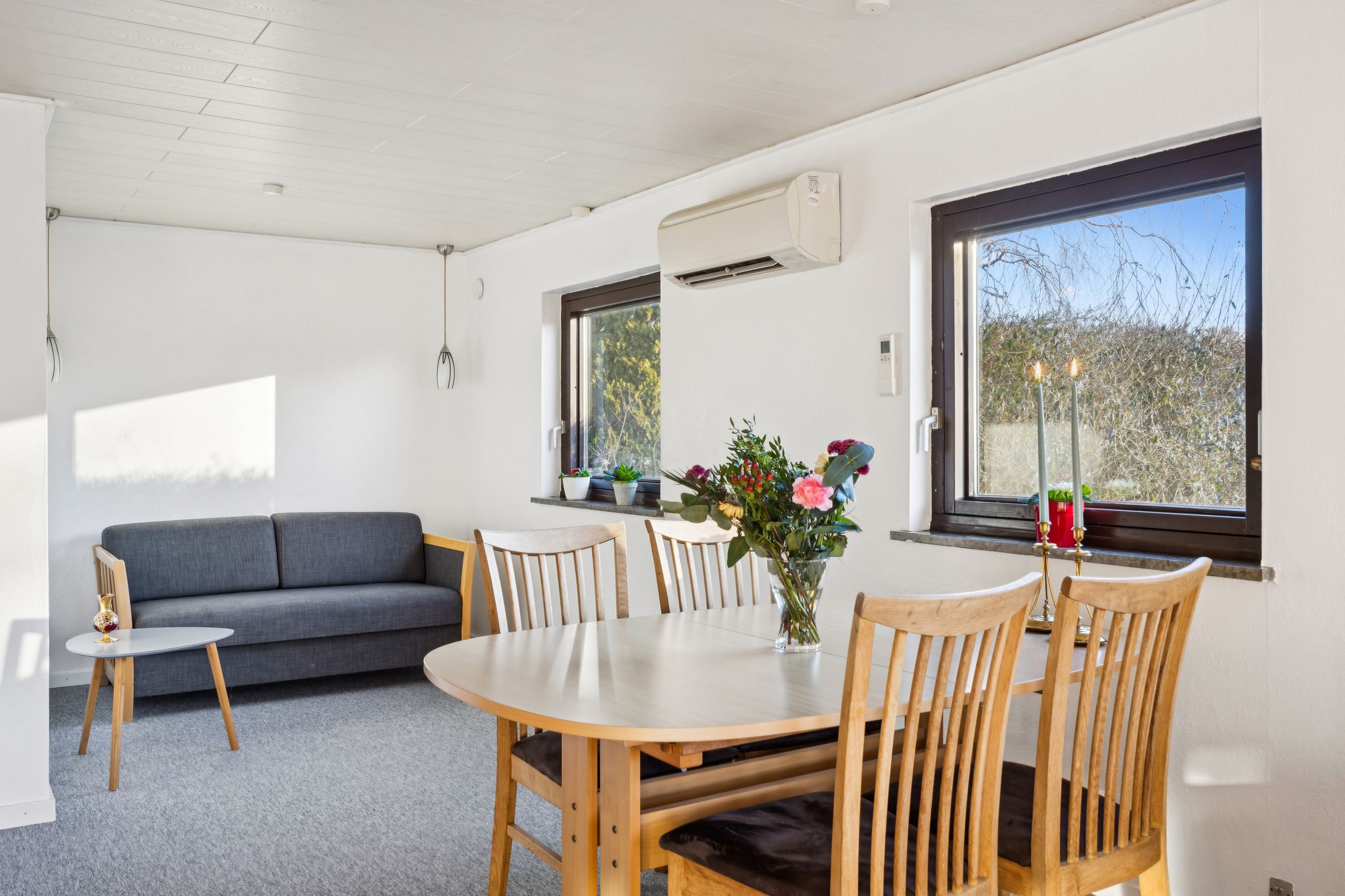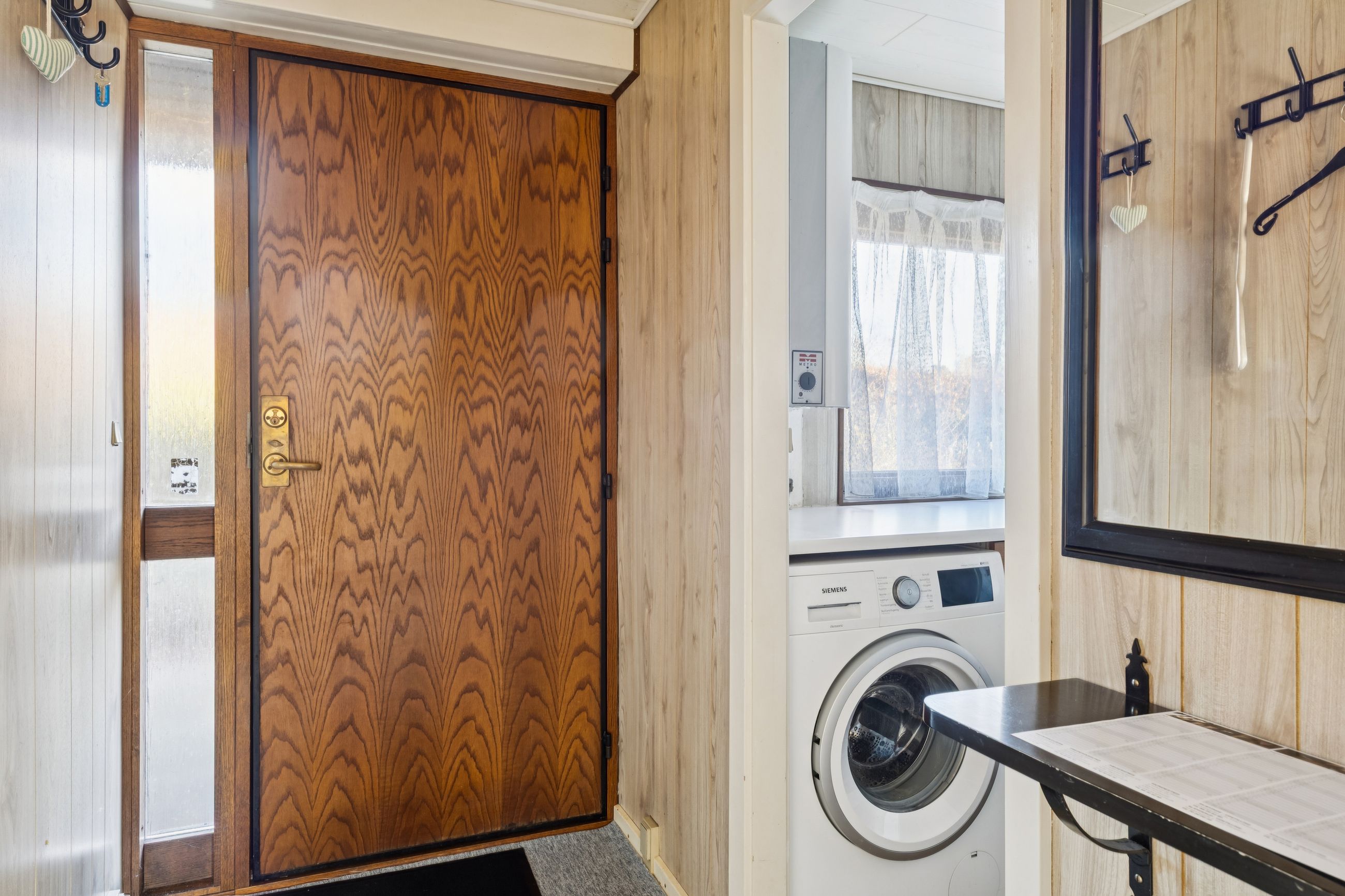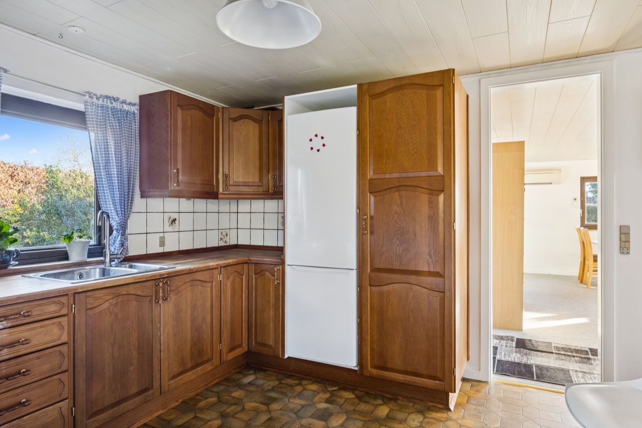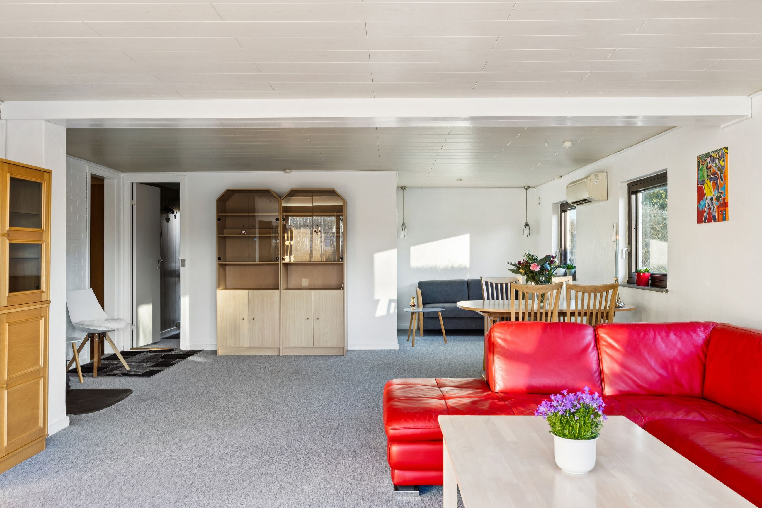 Indenfor mødes I af en hyggelig entré og et godt, funktionelt bryggers. Husets hjerte er den kæmpestore stue, hvor der virkelig er plads til at samle familie og venner og lade sommerhuslivet udfolde sig. Det rummelige køkken har direkte udgang til den overdækkede terrasse – ideelt til grill, morgenkaffe og hyggelige middage.