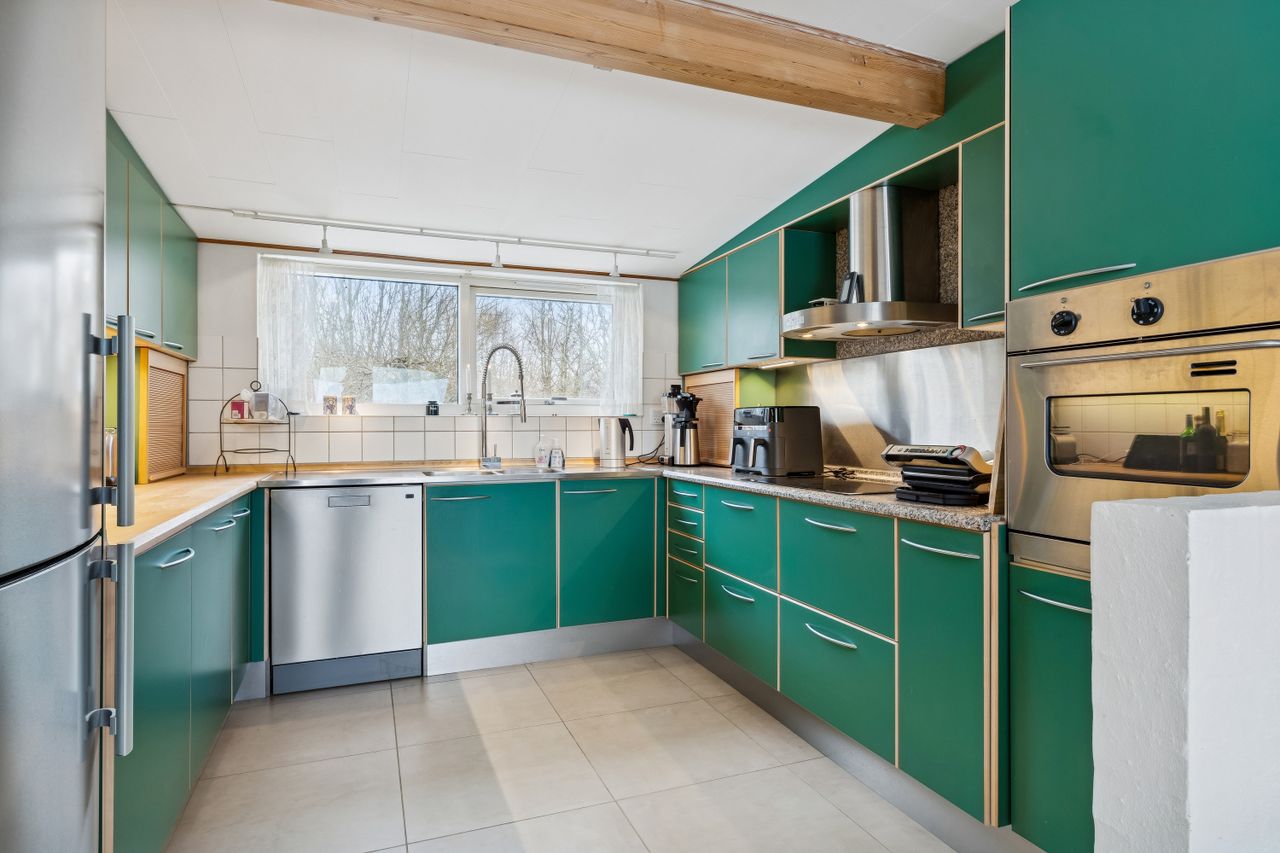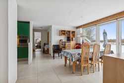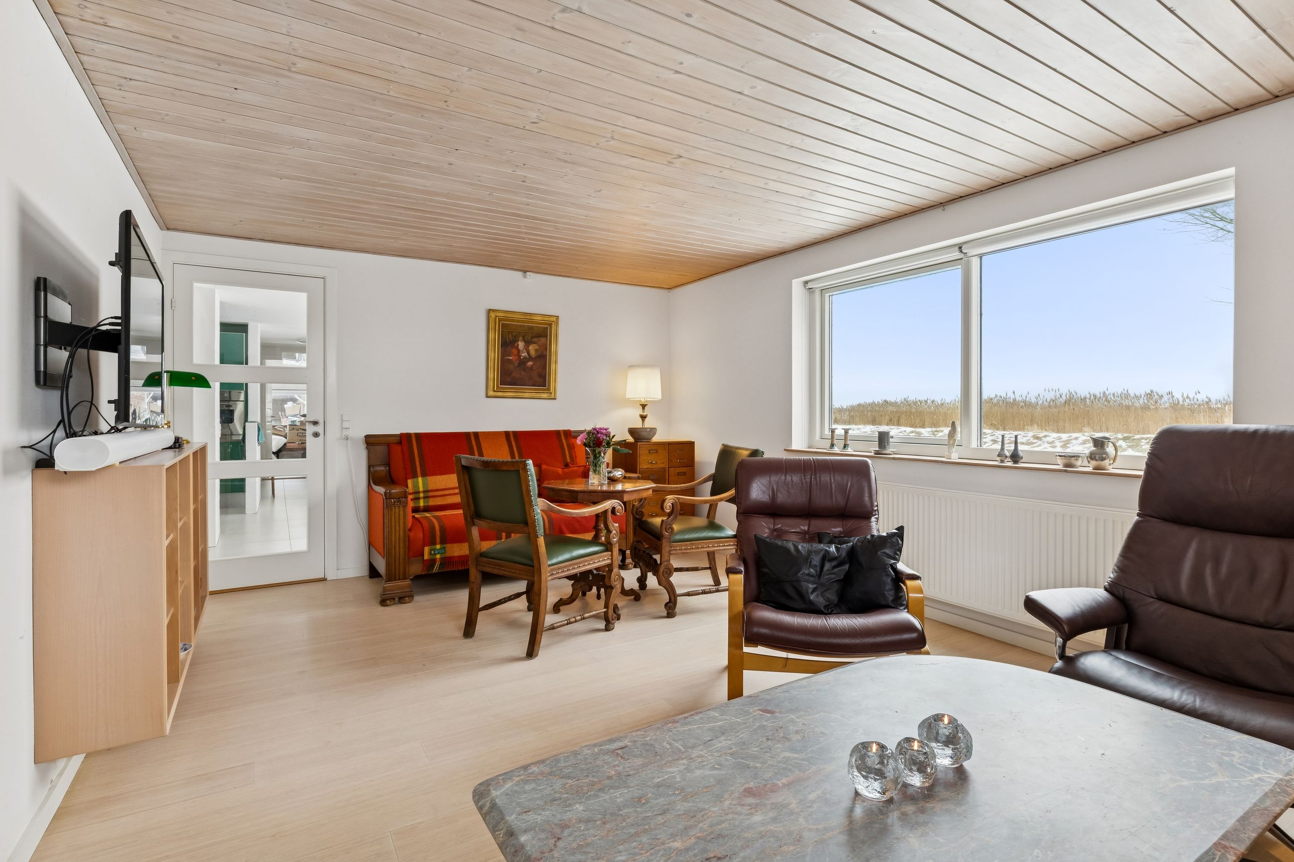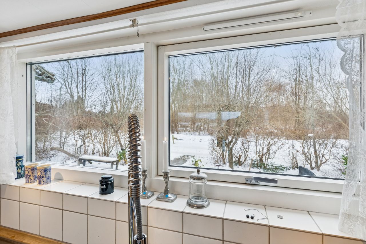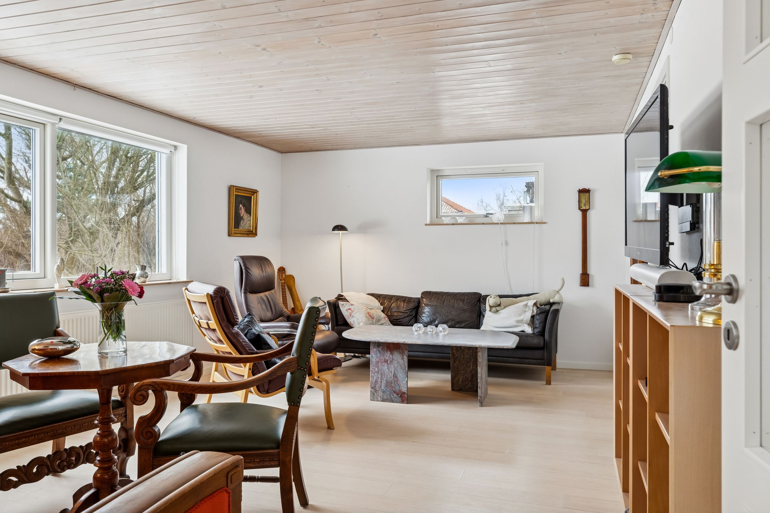 Det åbne køkken-alrum ligger i naturlig forbindelse med opholdsstuen og skaber et lyst og indbydende samlingspunkt. Herfra er der direkte udgang til terrasse og have, hvor udsigten over både marker og fjord virkelig kommer til sin ret og kan nydes året rundt.