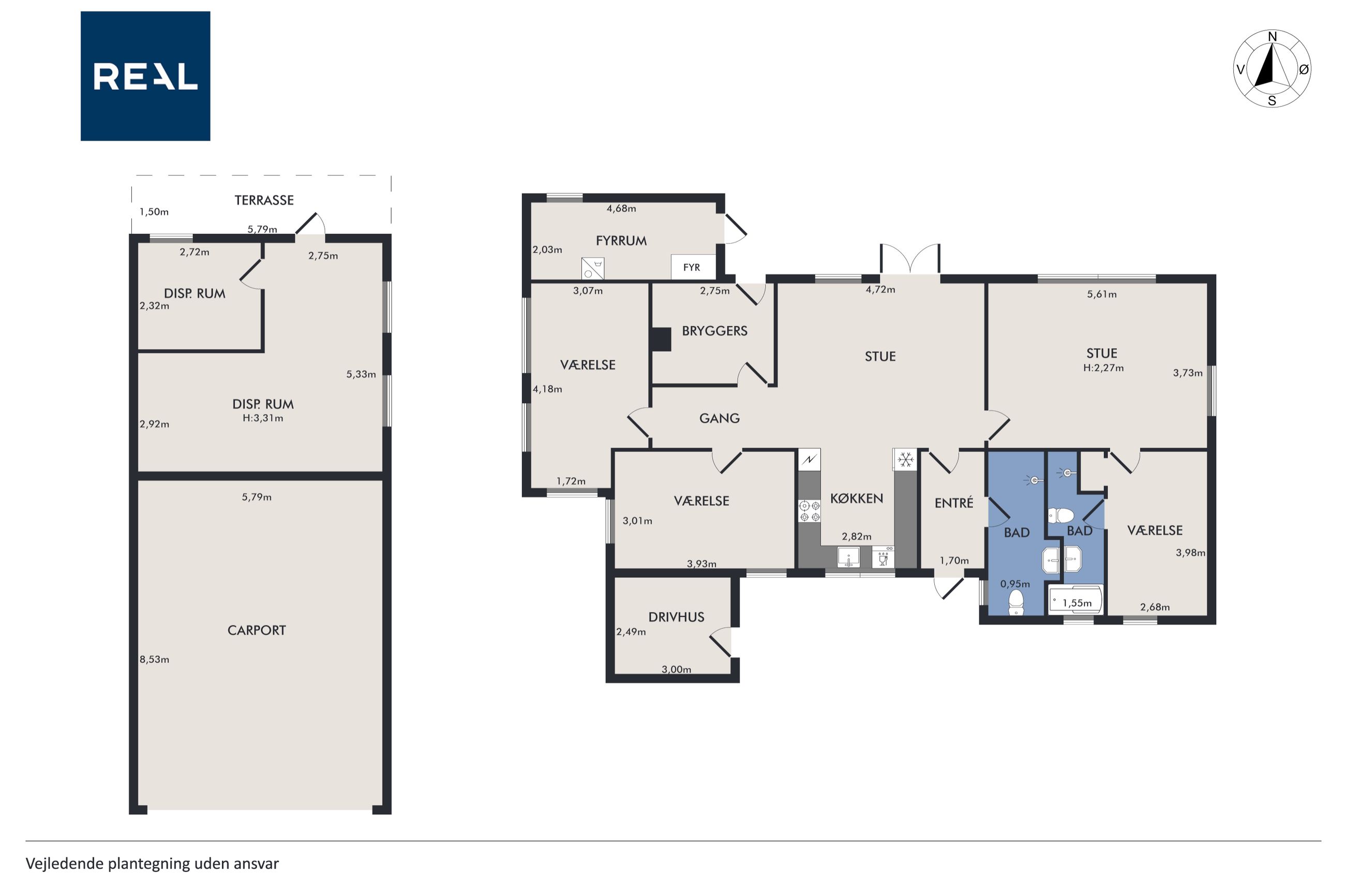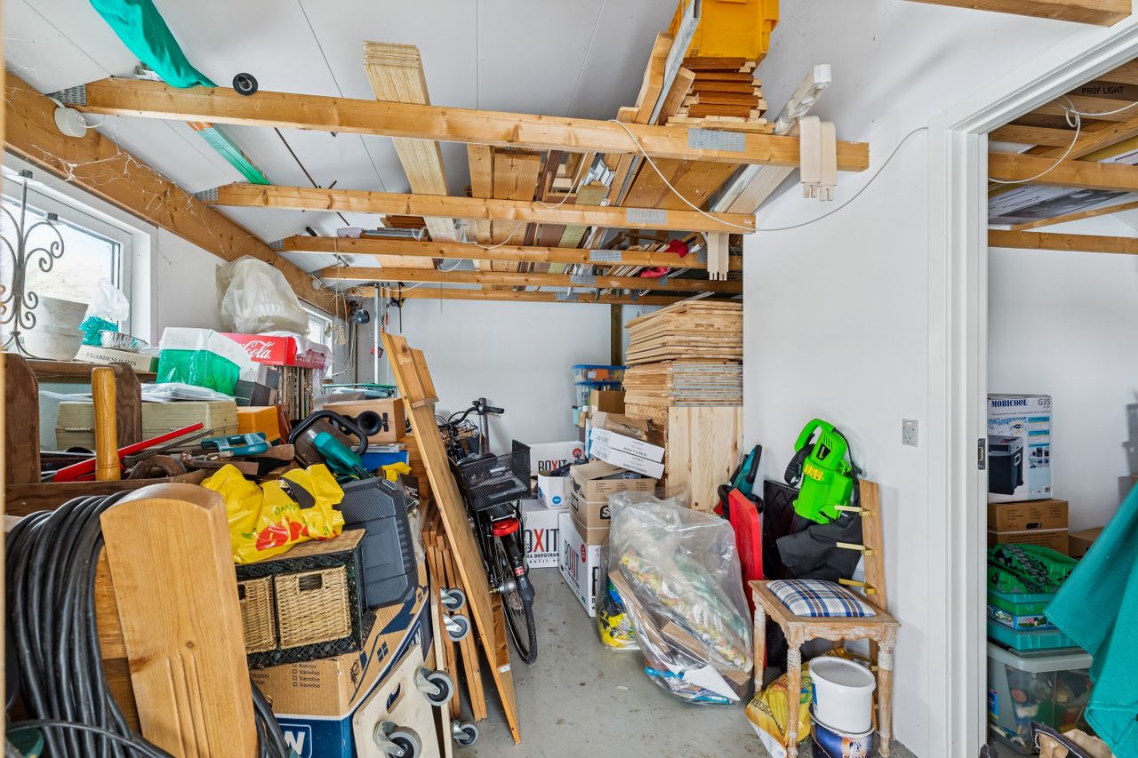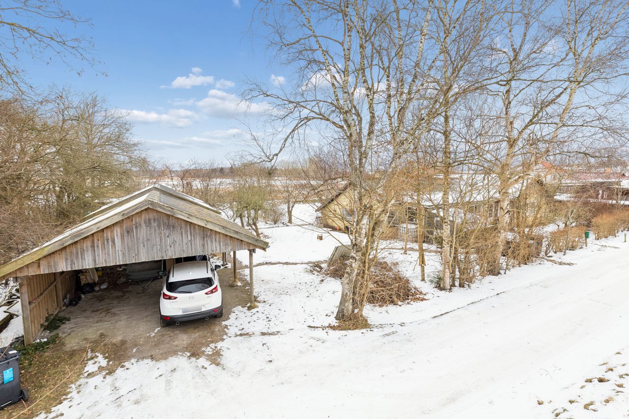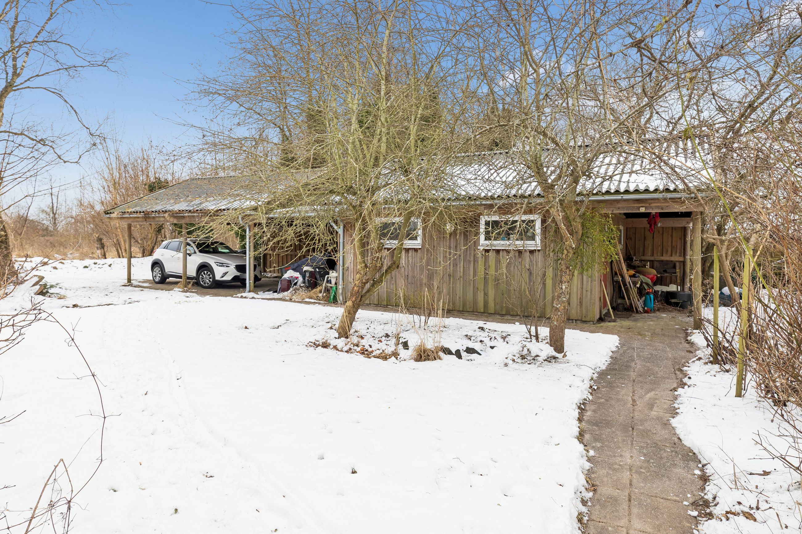 Til ejendommen hører også et dejligt drivhus samt carport med tilhørende disponible rum i forlængelse – perfekte til opbevaring, værksted eller haveredskaber.