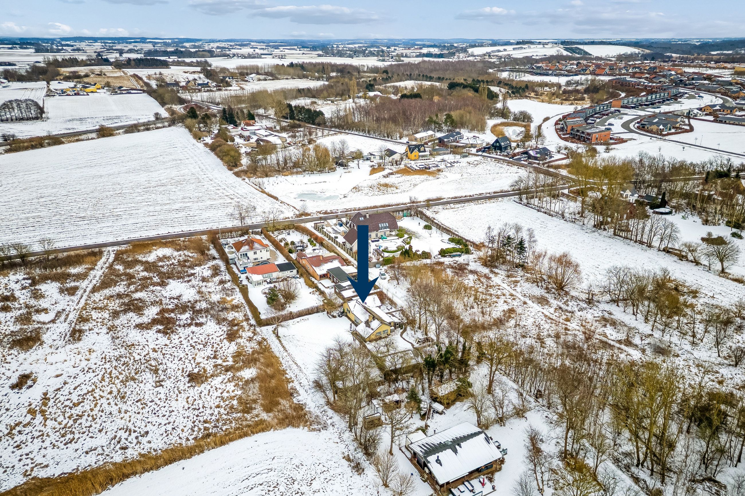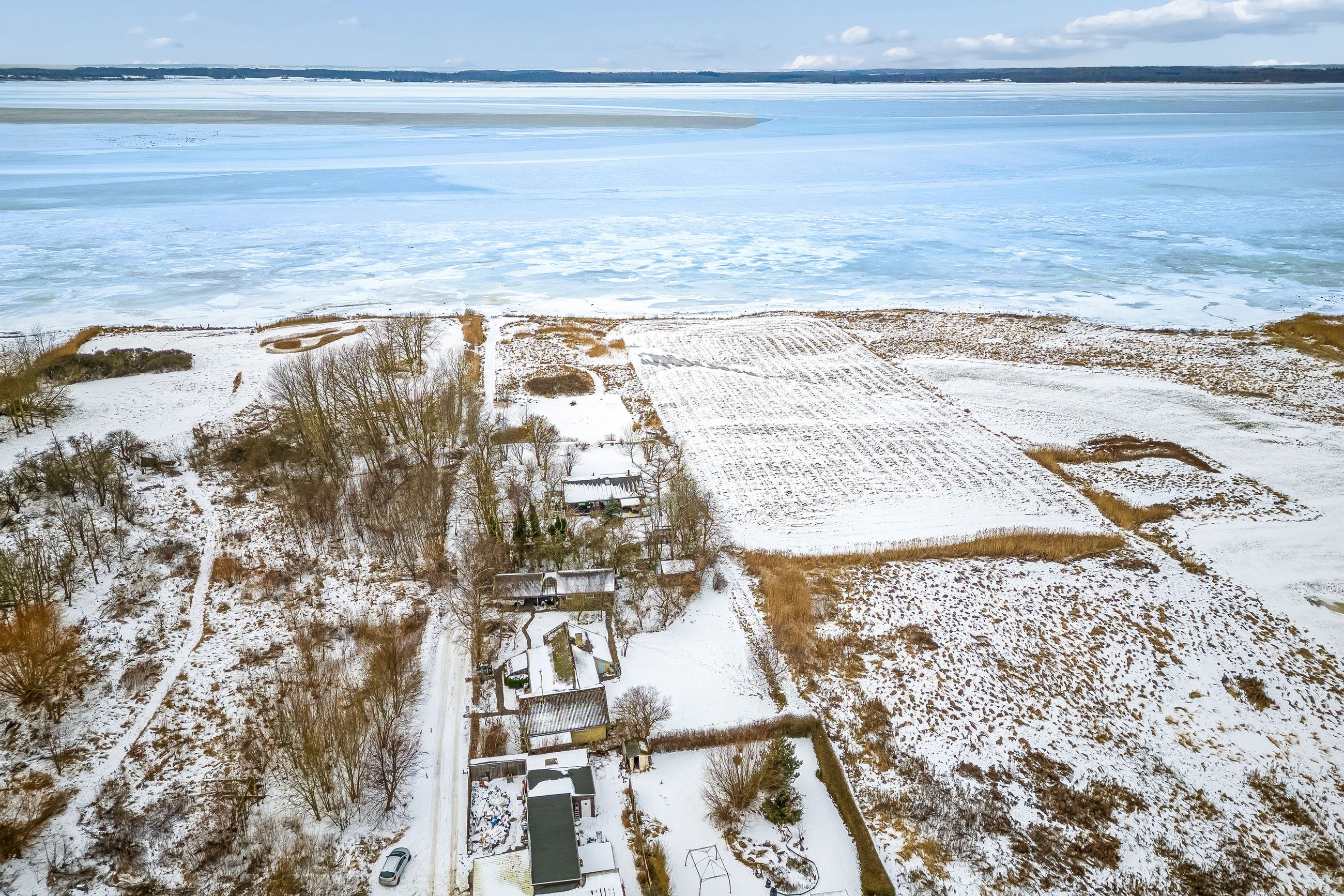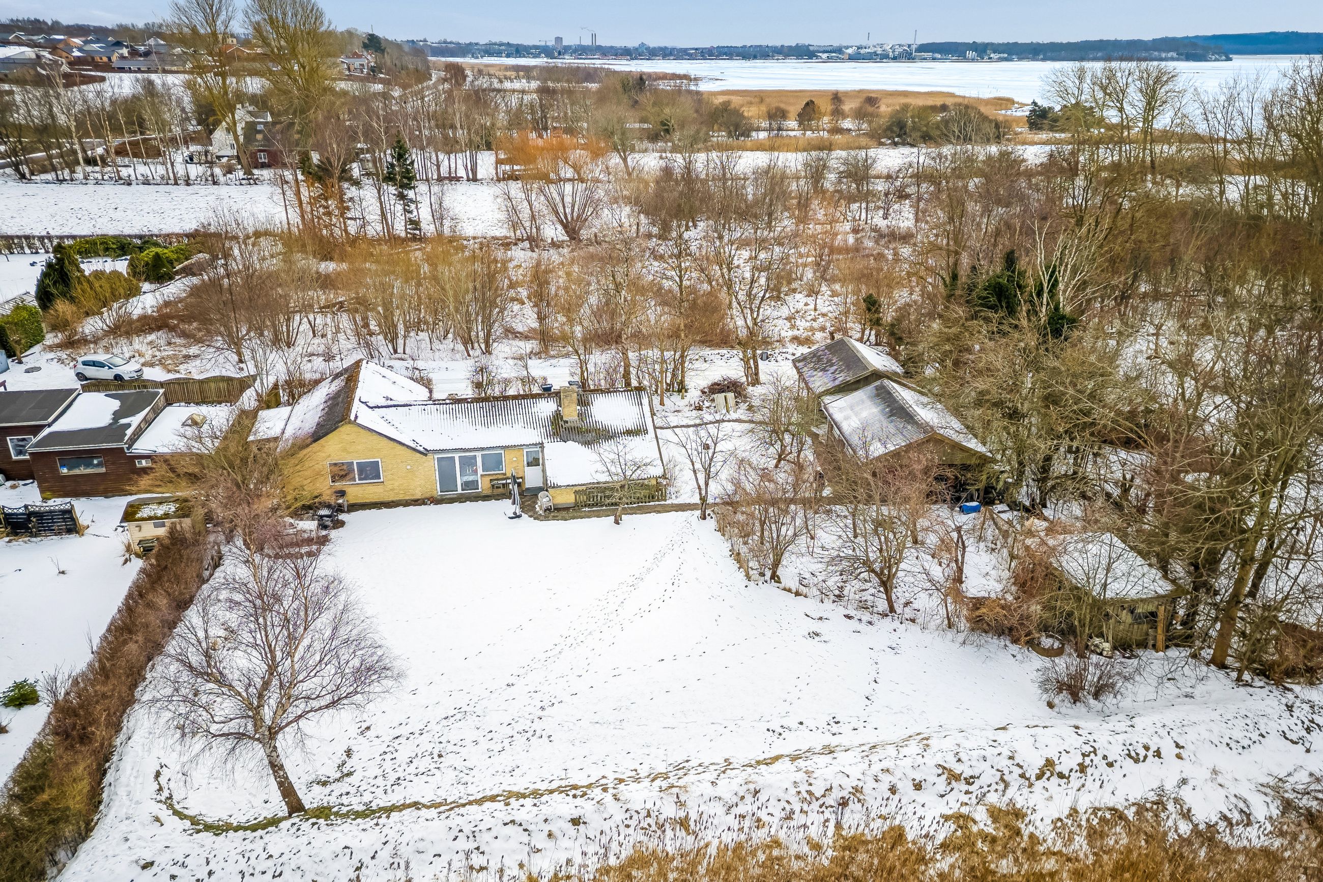 Ejendommen ligger næstsidst på en lukket vej ned mod fjorden, hvilket sikrer maksimal ro, privatliv og fravær af trafikstøj. Her får du en sjælden kombination af natur, udsigt og fredelige omgivelser – og samtidig masser af muligheder.