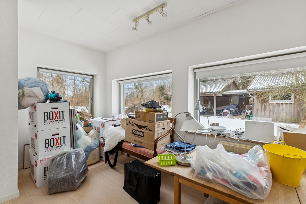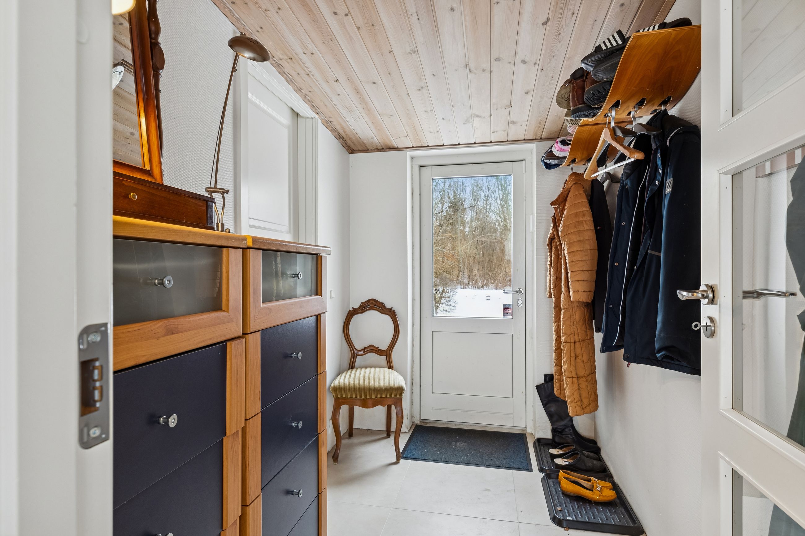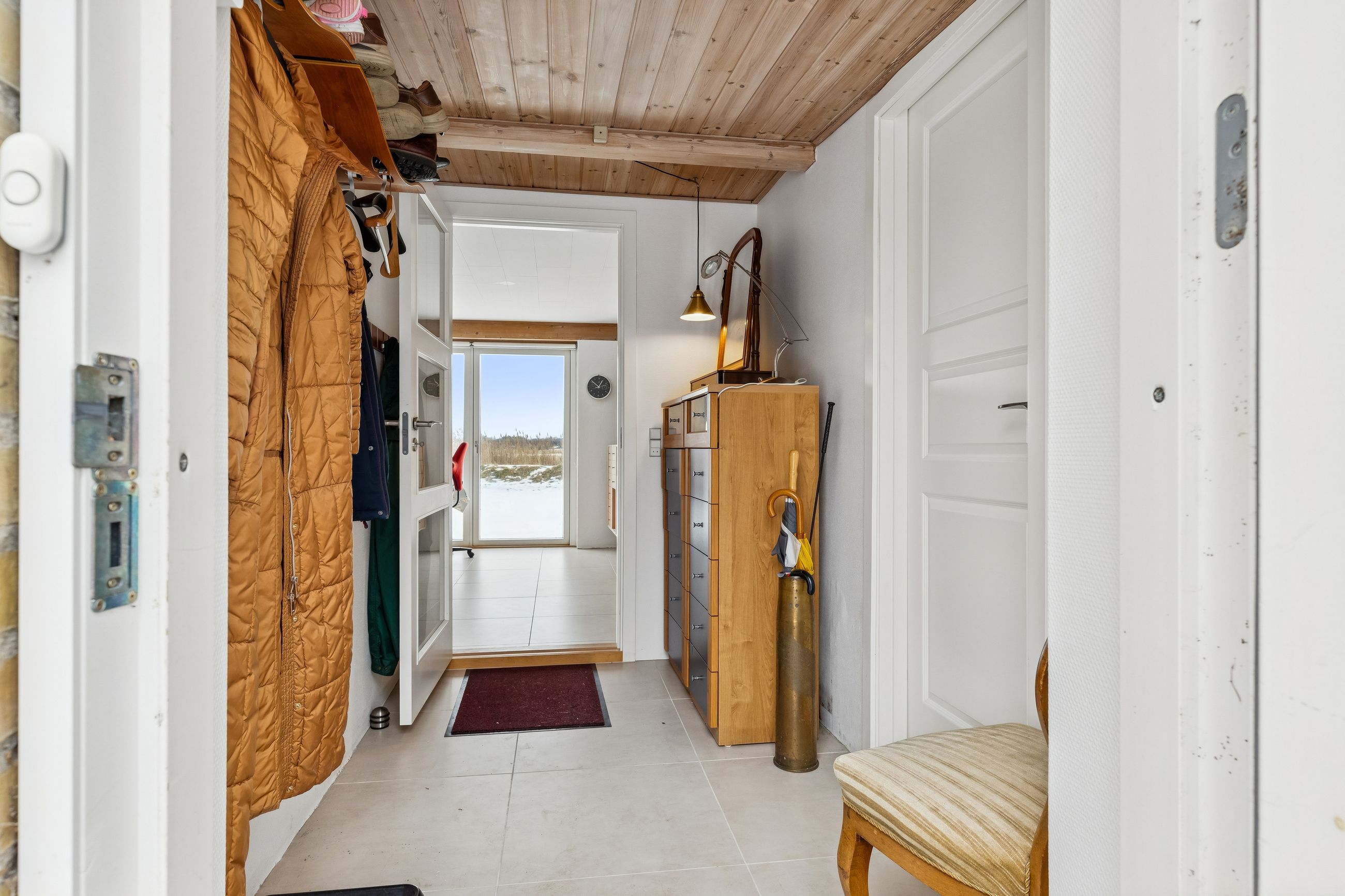 Ejendommen ligger næstsidst på en lukket vej ned mod fjorden, hvilket sikrer maksimal ro, privatliv og fravær af trafikstøj. Her får du en sjælden kombination af natur, udsigt og fredelige omgivelser – og samtidig masser af muligheder.