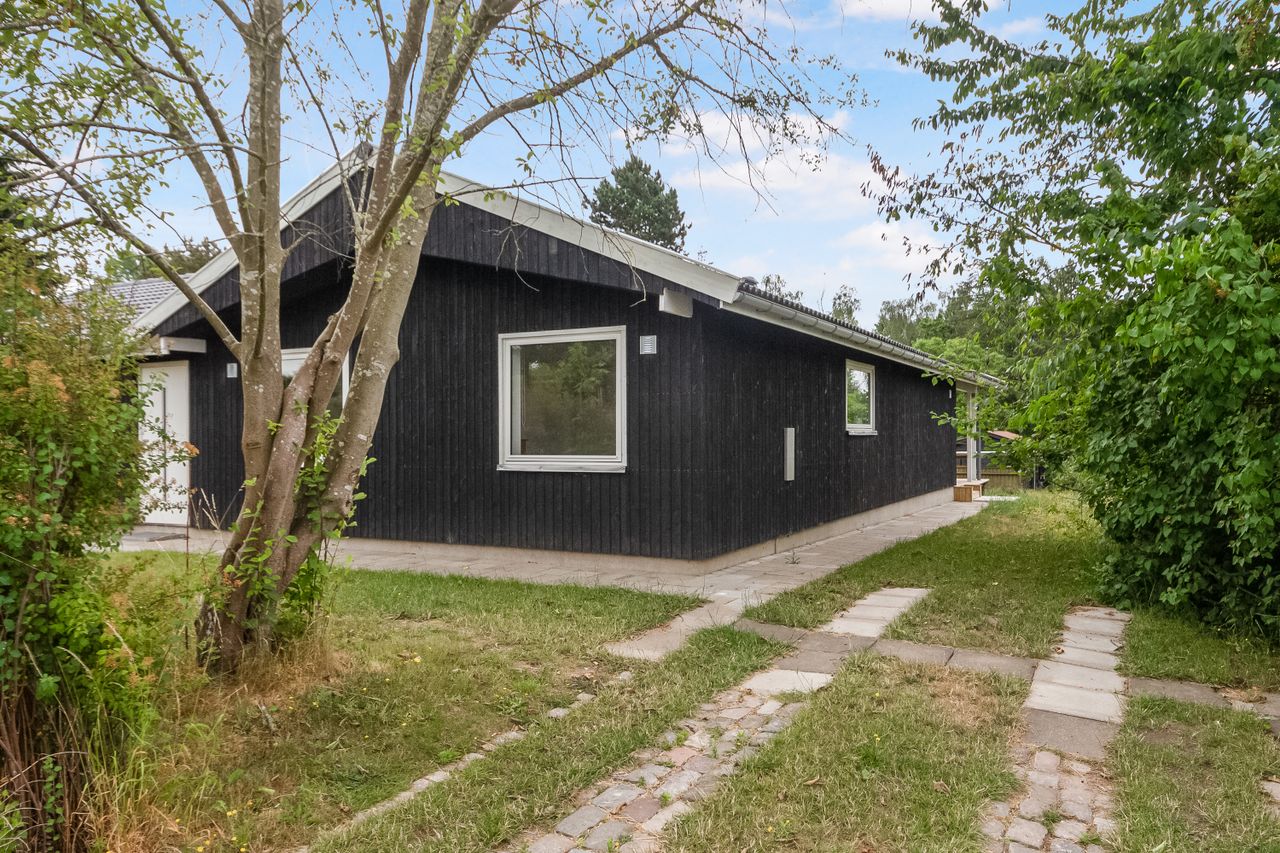 møder I klassisk sommerhuscharme, for huset er opført i den rette stil med sortmalet træfacade og hvide