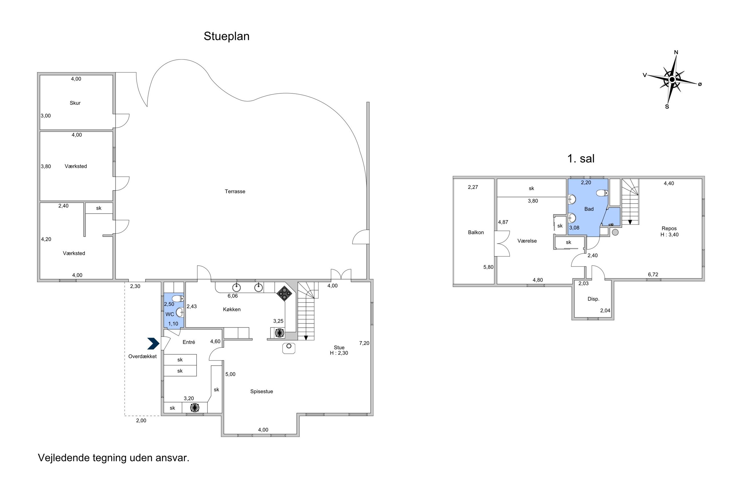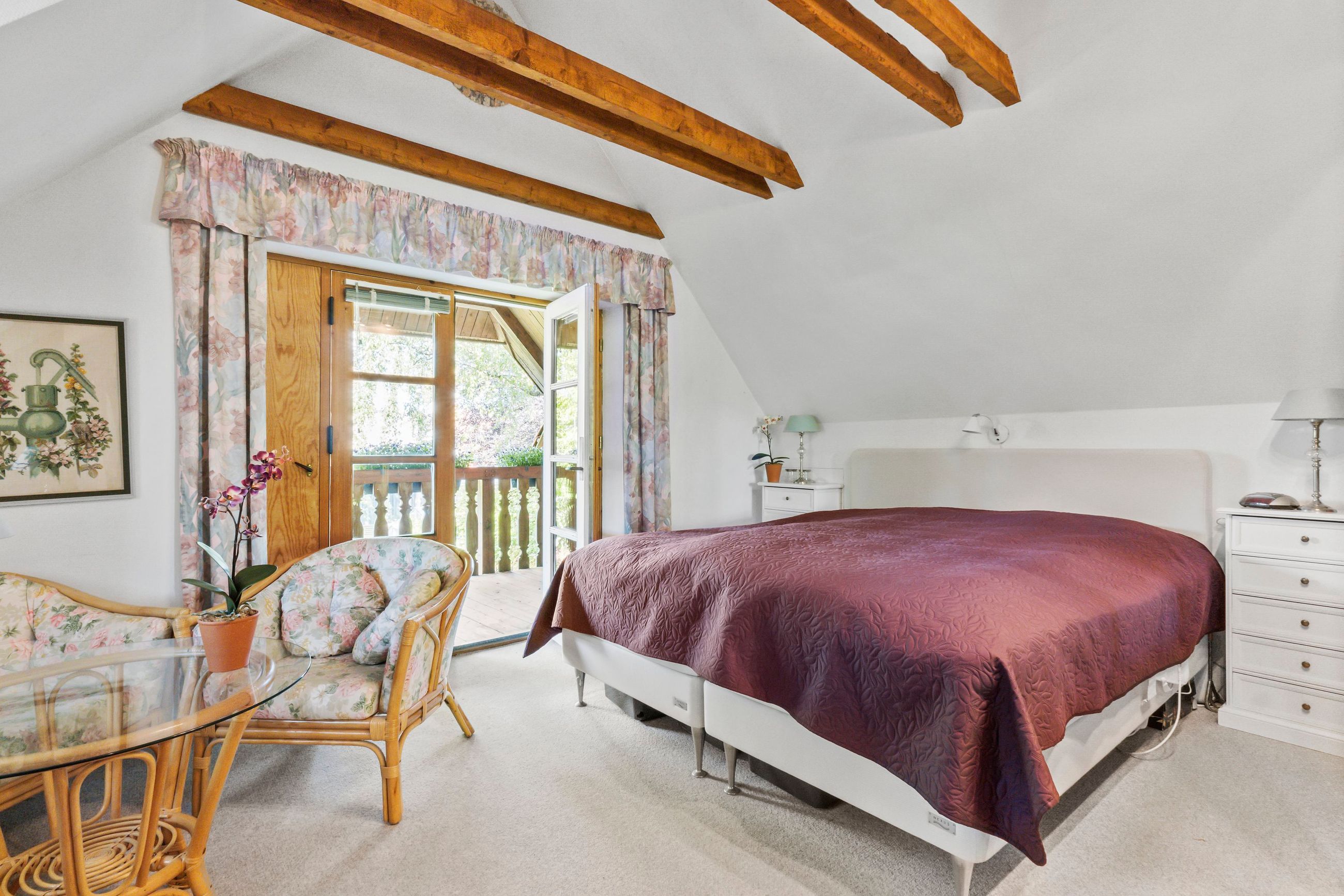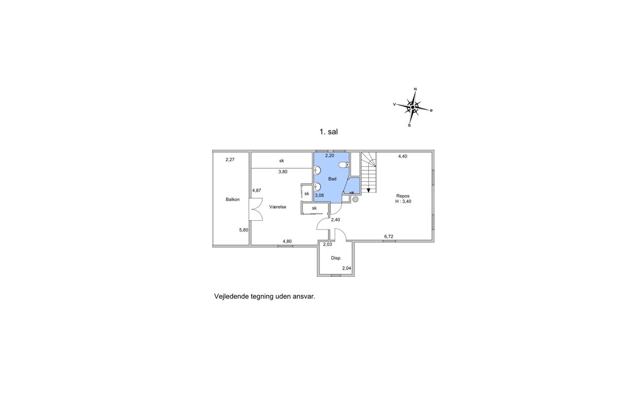 På førstesalen finder man en stor repos, der med sin rummelighed og fleksibilitet indbyder til at blive omdannet til yderligere værelser, hvis hjertet begærer det. Heroppe opleves en særlig rumfornemmelse med loft til kip, der sammen med det højloftede præg skaber en luftig og eksklusiv atmosfære. Et depotrum tilbyder praktisk opbevaring, mens det store soveværelse, med udgang til en charmerende balkon, tilbyder en fredfyldt retræte. Et stort og lyst badeværelse fuldender denne etage, hvor funktionalitet møder æstetik.