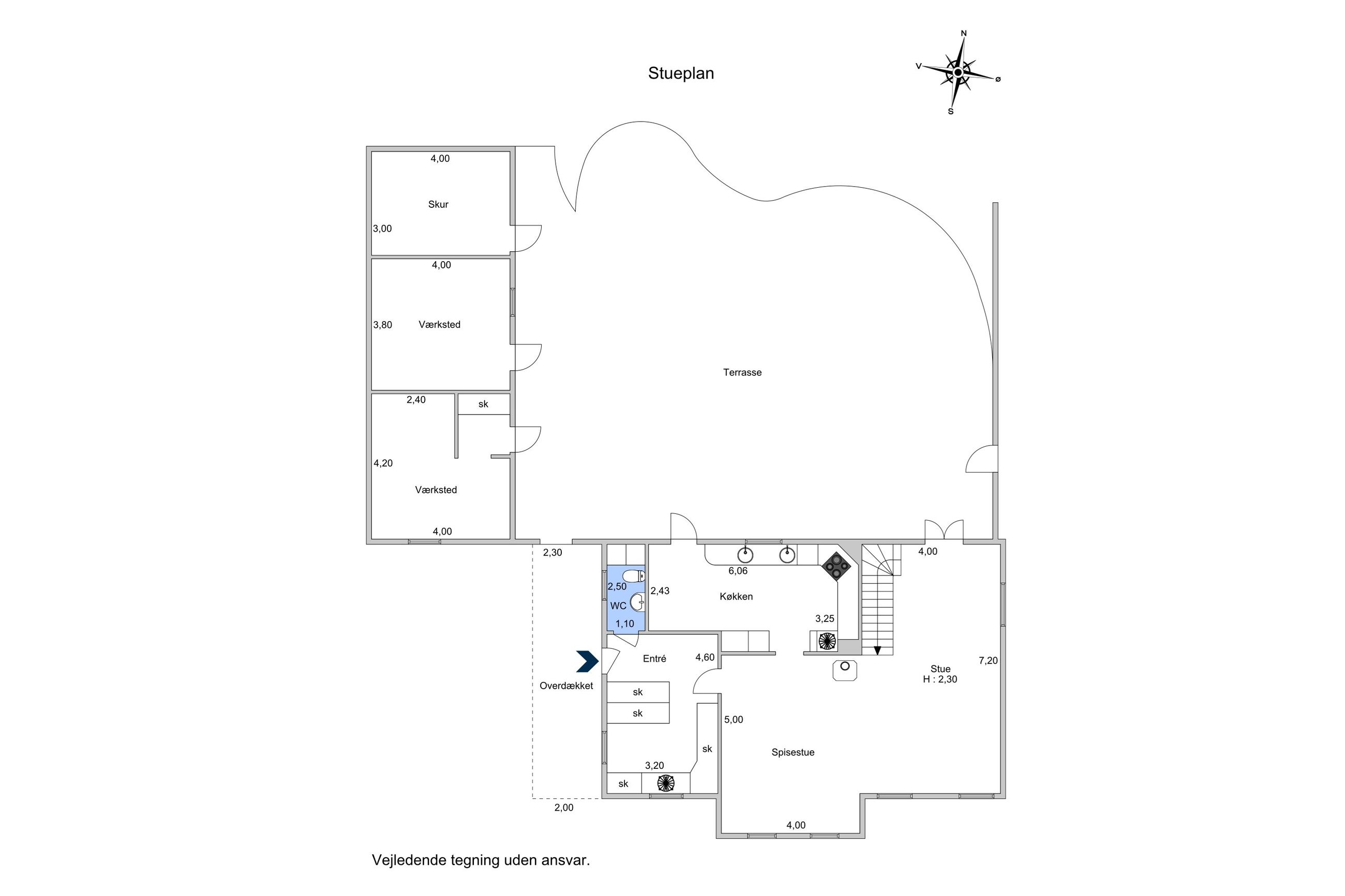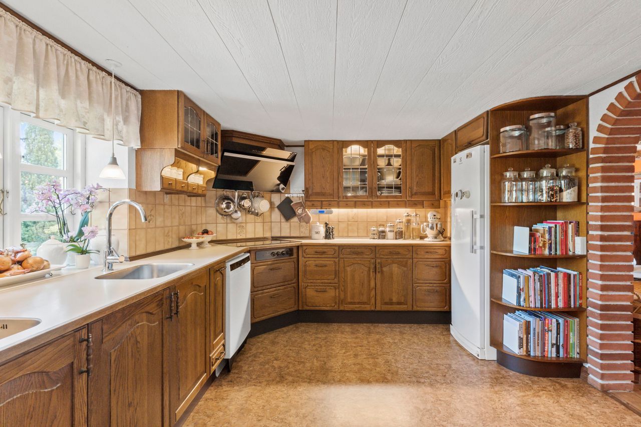 Med sine 174 kvadratmeter fordelt på to etager byder hjemmet på en indbydende overdækket indgang, der fører ind i husets hjerte. I stueetagen finder man en rummelig entre, der elegant forener funktionalitet med velkomst – her er et praktisk bryggers og et gæstetoilet. Livets mange stunder kan nydes i den store vinkelstue, hvor et smukt trappeforløb fører op til førstesalen, og dobbeltdøre åbner op til den fortryllende have, der omfavner huset. Køkkenet er en drøm for enhver kulinarisk entusiast, med rigelig plads og direkte adgang til haven, der lader madlavning og natur smelte sammen i en smuk symfoni.