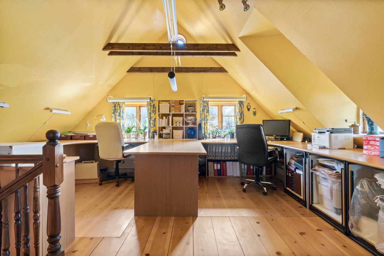 Til ejendommen hører også et anneks på 55 kvadratmeter, der med sit værksted og brændeskur tilbyder rig mulighed for kreativ udfoldelse og praktisk opbevaring. Grunden, der strækker sig over 1808 kvadratmeter, omkranser denne unikke ejendom og sikrer en følelse af privatliv og fred, et sjældent fund så tæt på byens bekvemmeligheder.