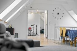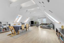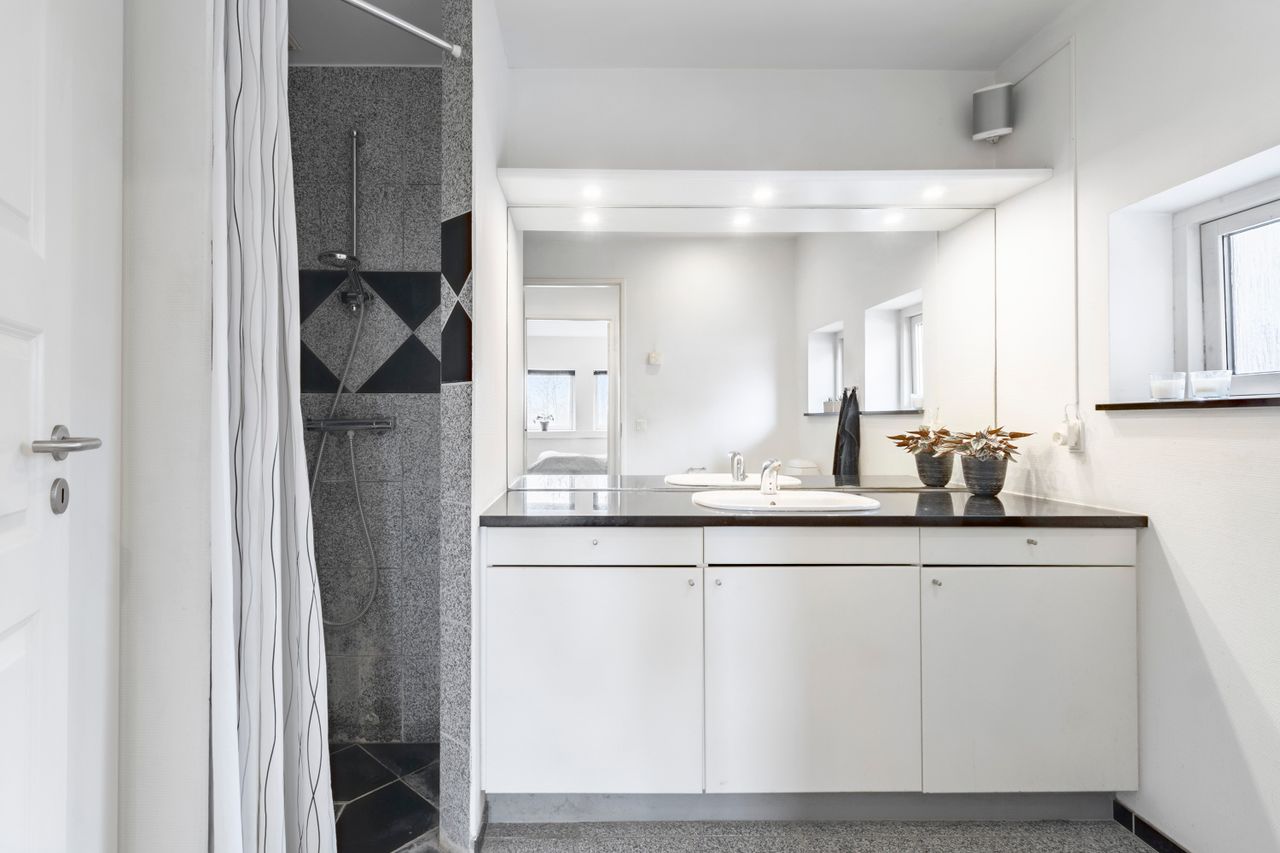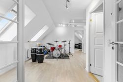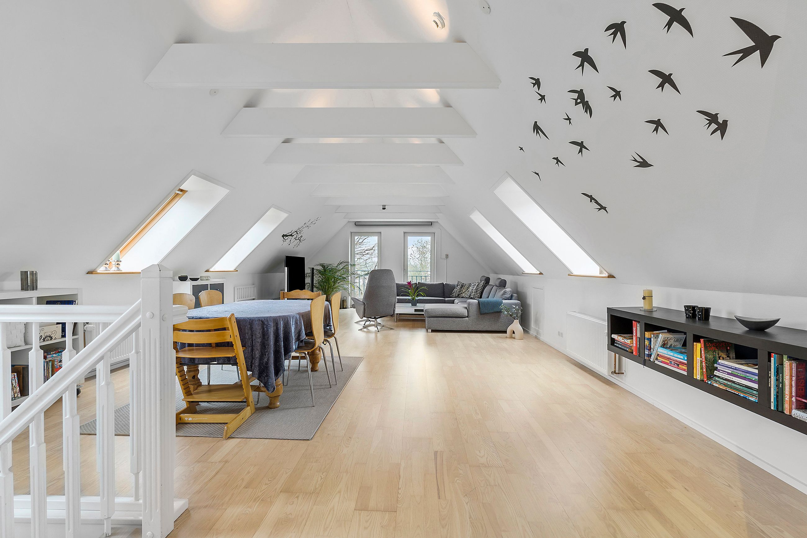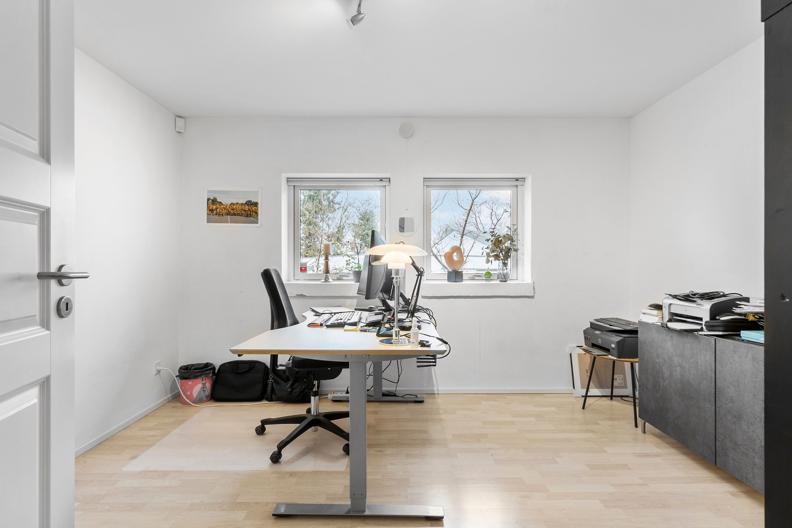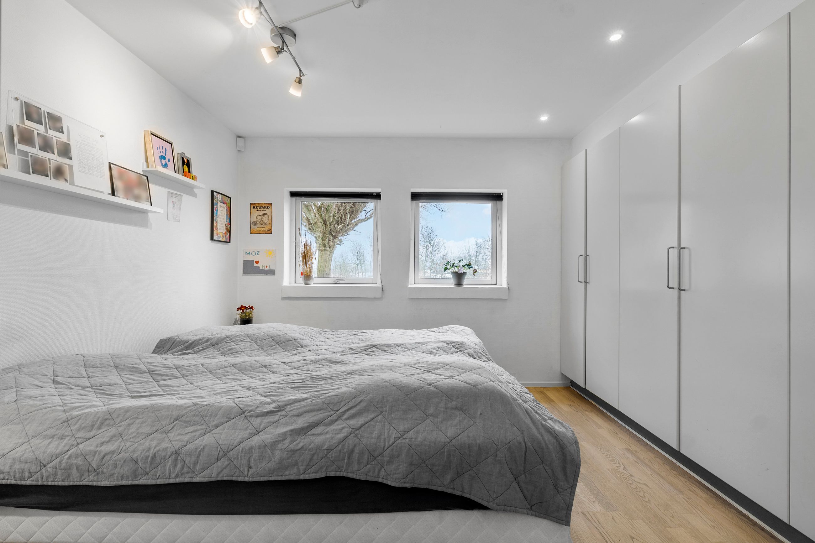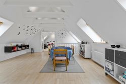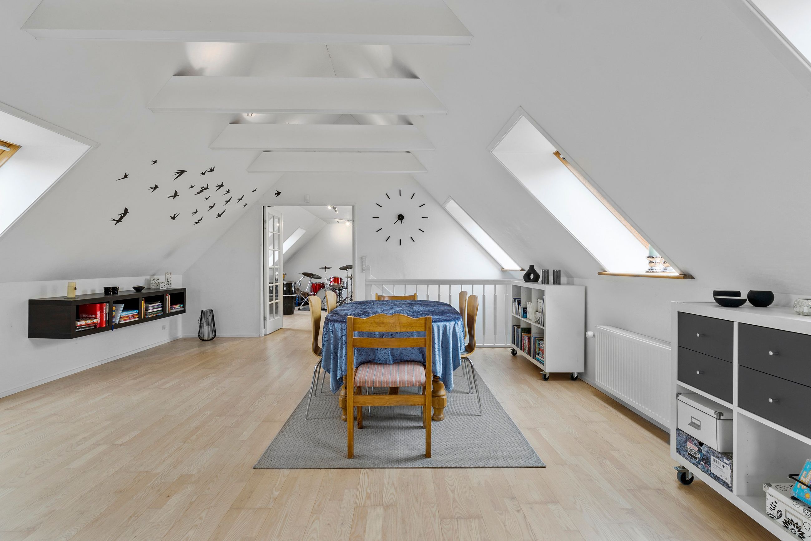 Ejendommen er med sine mange værelser og en stor, skøn grund – en af de største i kvarteret – et oplagt valg for en børnefamilie med mange individer, ligesom den også kan danne rammen om tre generationer under samme tag. I kan se frem til to badeværelser i stueplan og et ekstra toilet på den flotte førstesal, hvor der er stue og to sammenhængende værelser. De sidste kan benyttes som bedsteforældreafdeling eller den ældste teenagers fantastiske domæne med eller uden kæreste. Her vil også være fine forhold for jer, der arbejder hjemmefra eller til udfoldelse af pladskrævende hobbyaktiviteter.