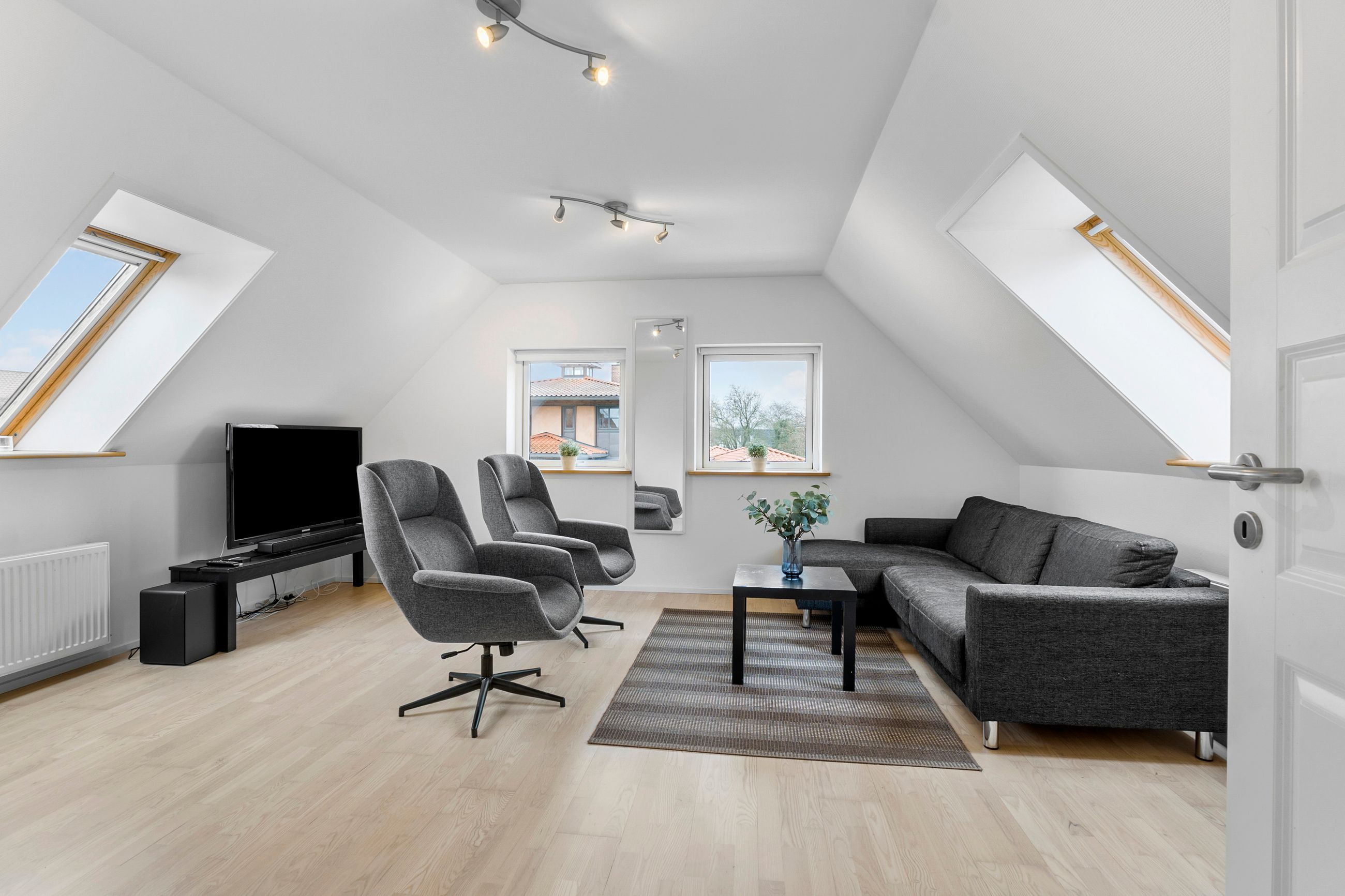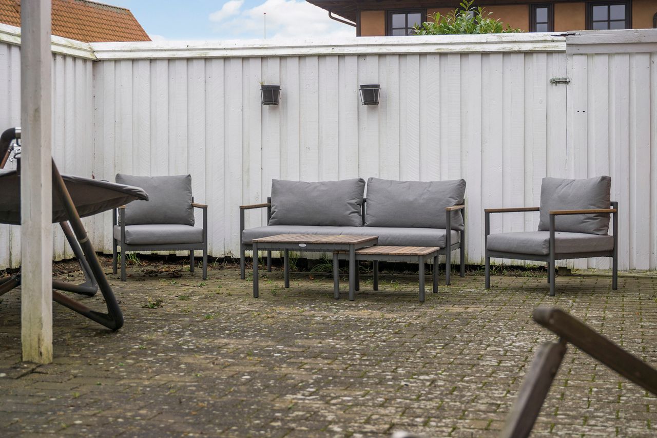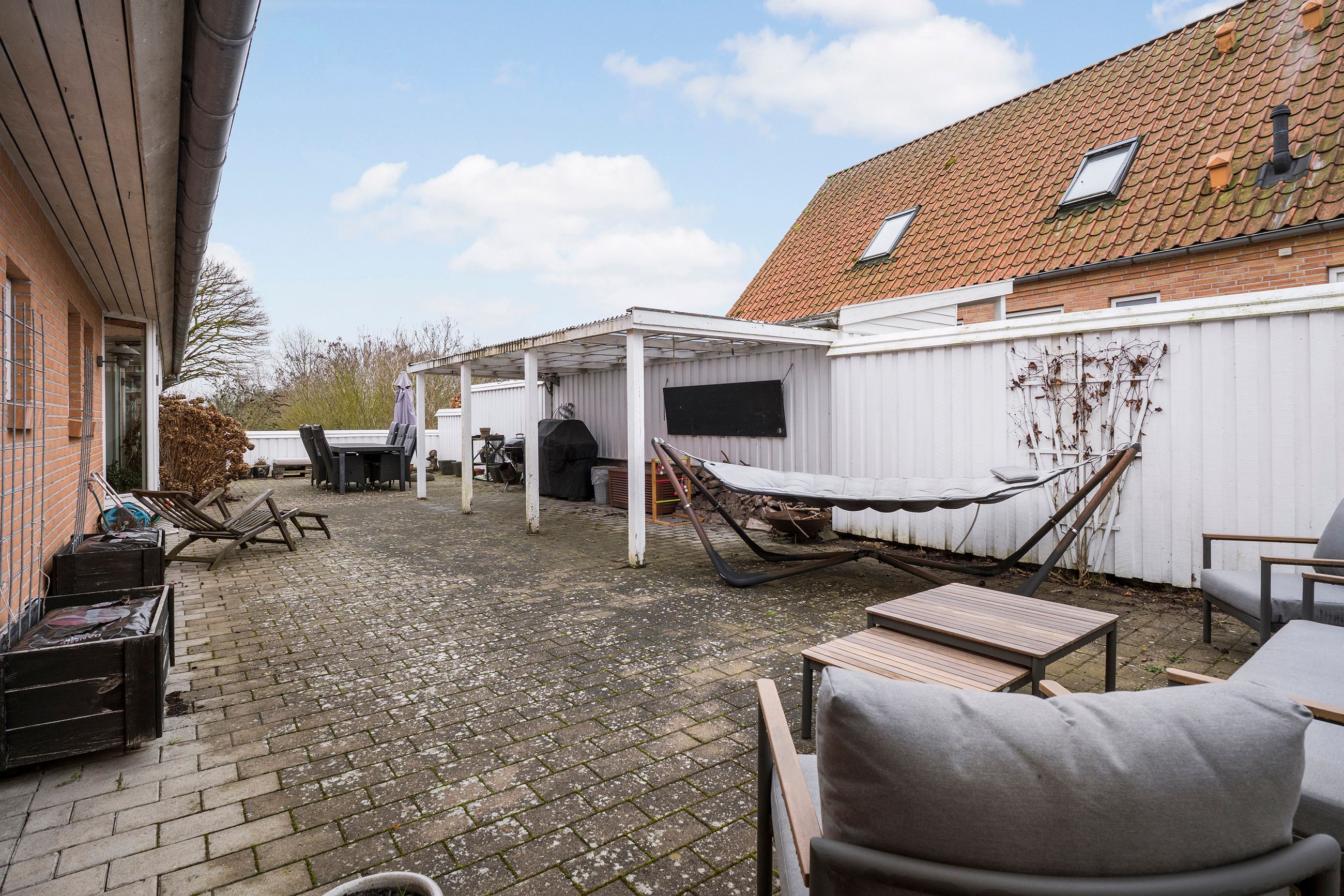 I kan også glæde jer til udelivet på den store grund, hvor der er flere skønne opholdssteder, som endda er af forskellig karakter. Fra både stuen og køkkenalrummet er der udgang til en superlækker og tophyggelig sydvendt gårdhave, og fra stuen fører dobbeltdøren ud til en østvendt terrasse, hvor I er garanteret helt ugeneret ophold og plads til lidt af hvert. Der er også en carport med et udhus i forlængelse, og over hele herligheden er der etableret loft, så I der er masser af god opbevaringsplads til bilens tagboks, skiene til vinterferien og adskillige andre effekter.