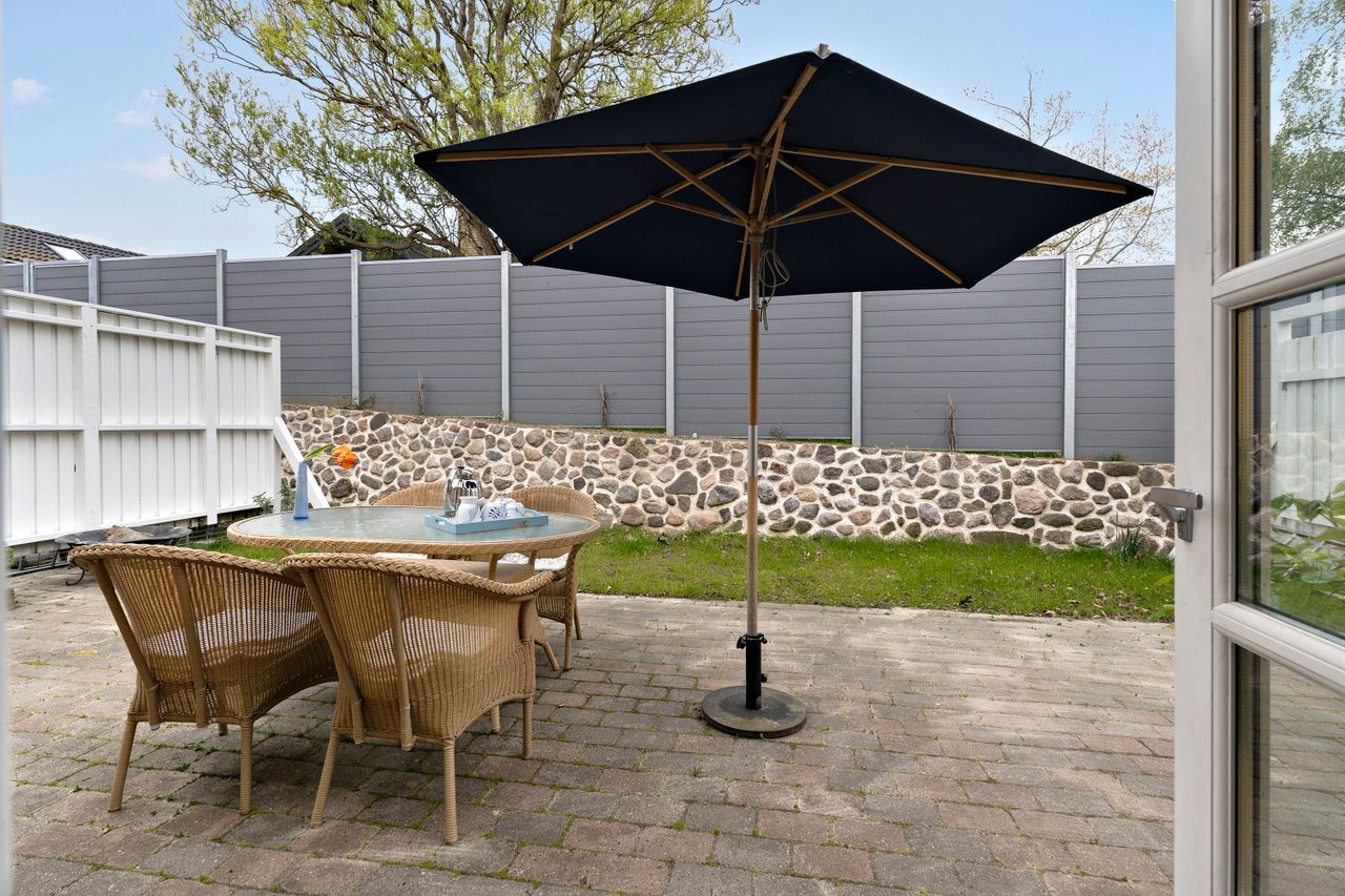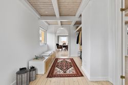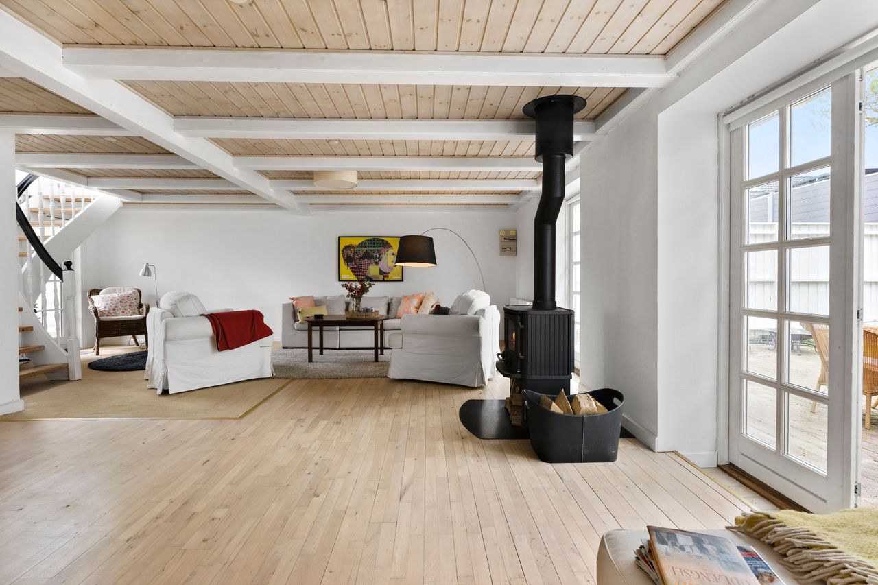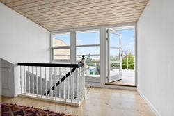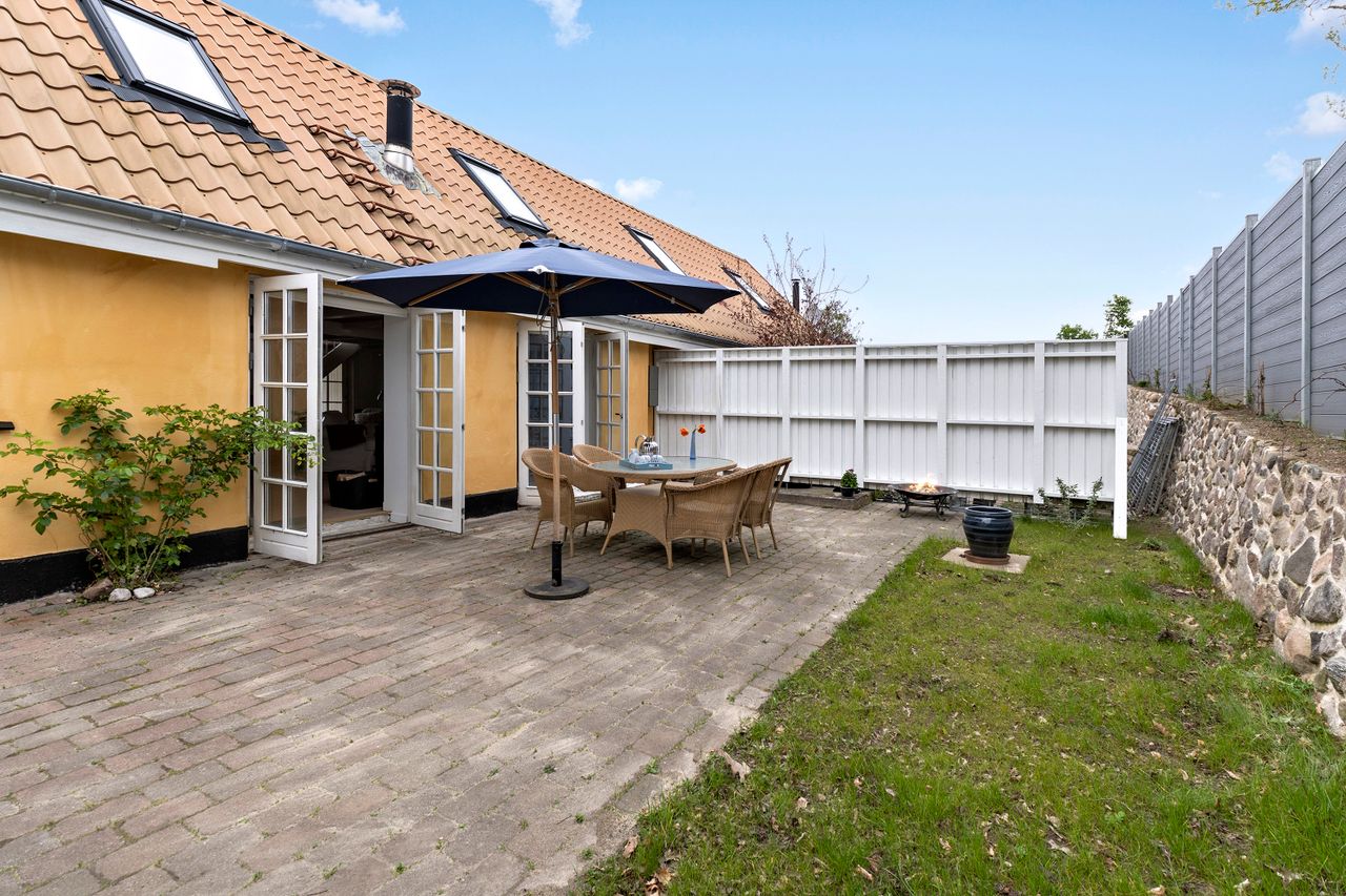 Beliggenheden er uden diskussion i topklasse, og selve huset byder på 196 kvadratmeter boligareal fordelt på et stueplan og en værelsesafdeling ovenpå med to fine værelser, en udsigtsaltan, hvor der er plads til at sidde og nyde kaffen ved et cafebord. Der er et stort soveværelse, også med en flot udsigt over fjorden. I stueplan er der fokus på de fælles opholdsrum, med køkken med gulvvarme og spisestue med direkte udgang til stor træterrasse. Den lyse sydvendte dagligstue kan åbnes helt op med to store dobbeltdøre ud til et solrigt, ugeneret gårdmiljø med flot stensat mur. Badeværelset ligger også i stueplan, ligesom I får en stor lys entré med god plads til både familien og til at modtage gæster.