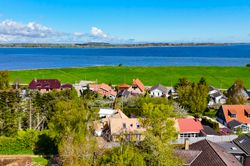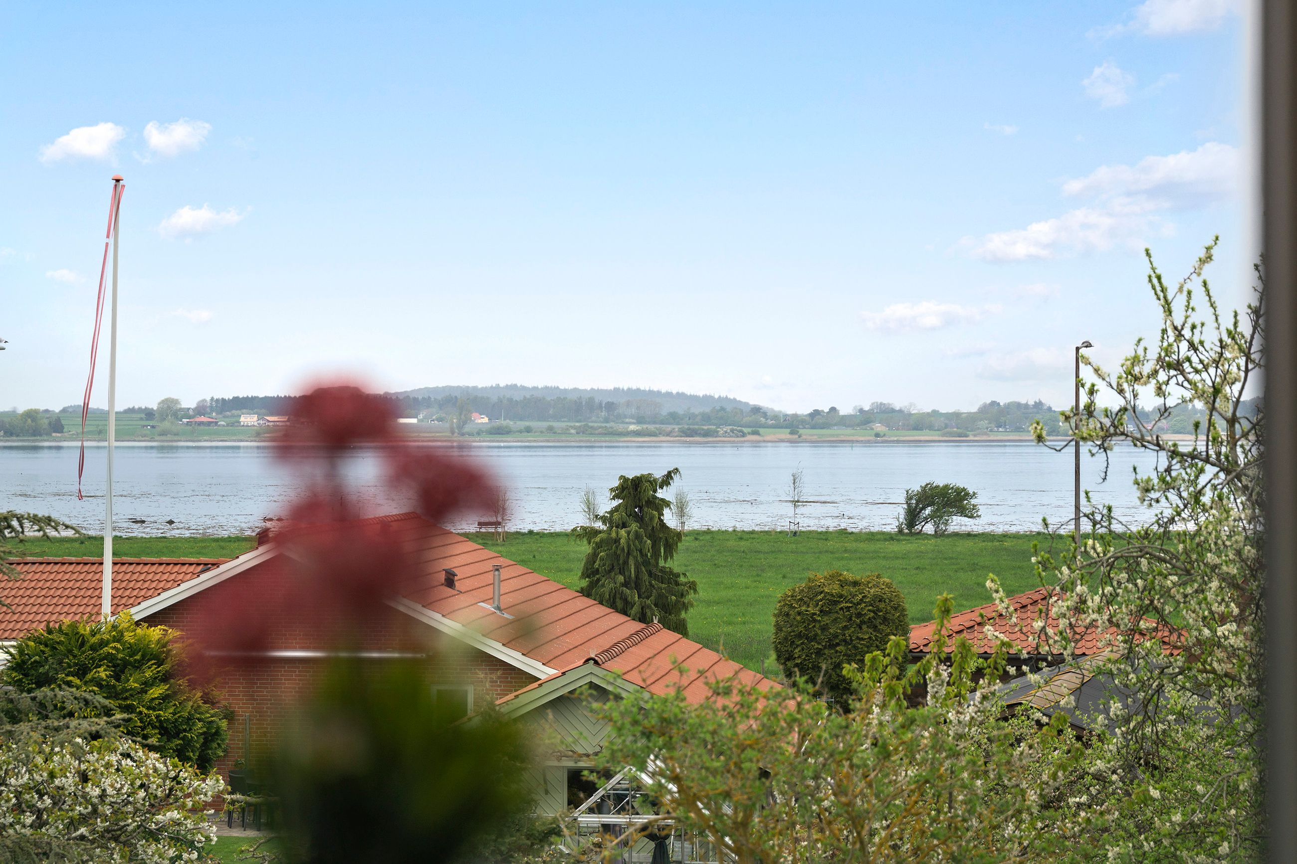 I kan også se toppen af sejlskibenes master, i marinaen, og til den anden side, kan I kigge ind til Holbæk by. Og så er der også solopgangene og solnedgangene, der bare er særligt smukke ud over vandet.