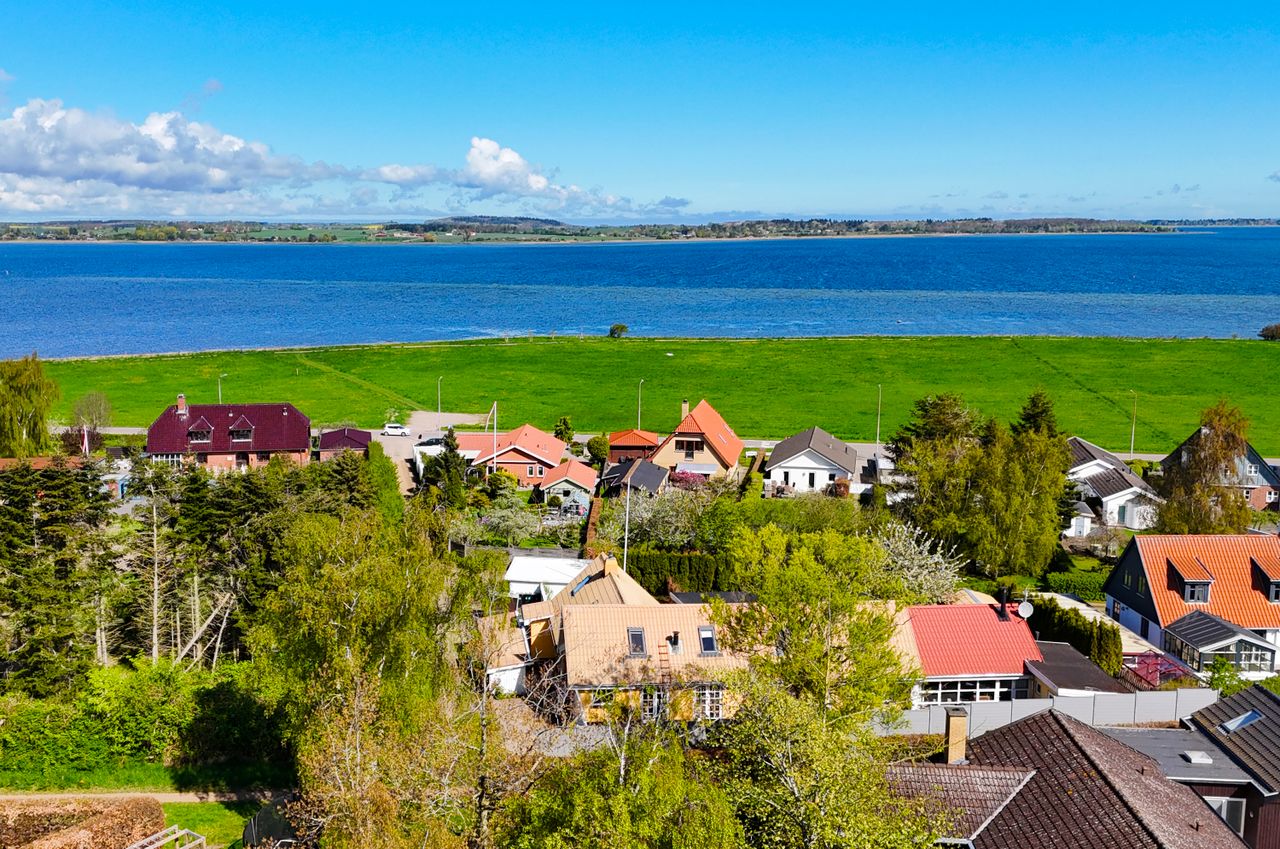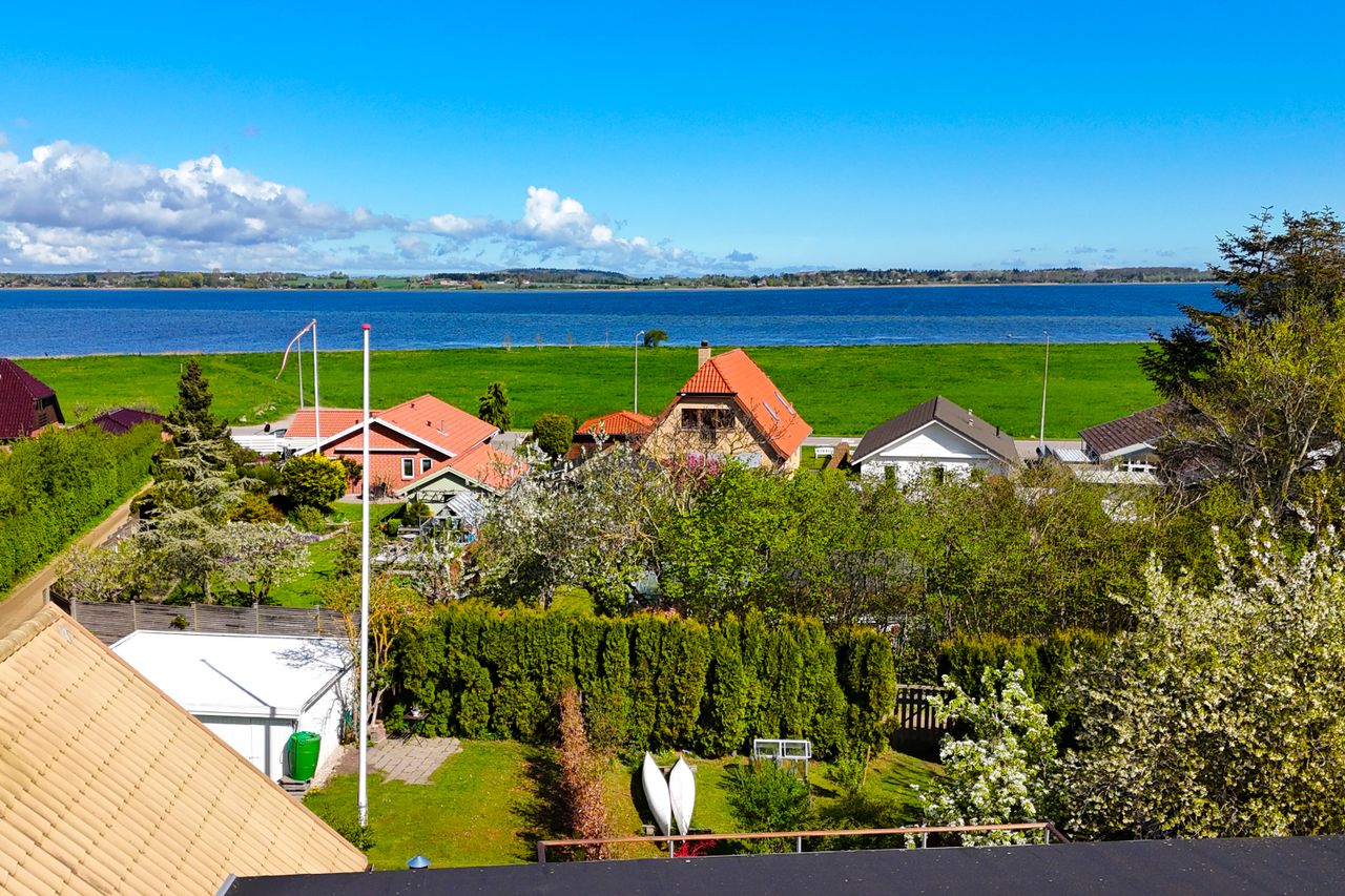 Det er i den grad også et hus med en attraktiv beliggenhed, for det ligger en smule trukket tilbage fra vandkanten i anden række og med en lidt højere placering, hvilket sikrer jer en ekstra god udsigt til fjorden, livet ude på vandet og til den anden side, hvor Tuse Næs befinder sig, med marker og skov.