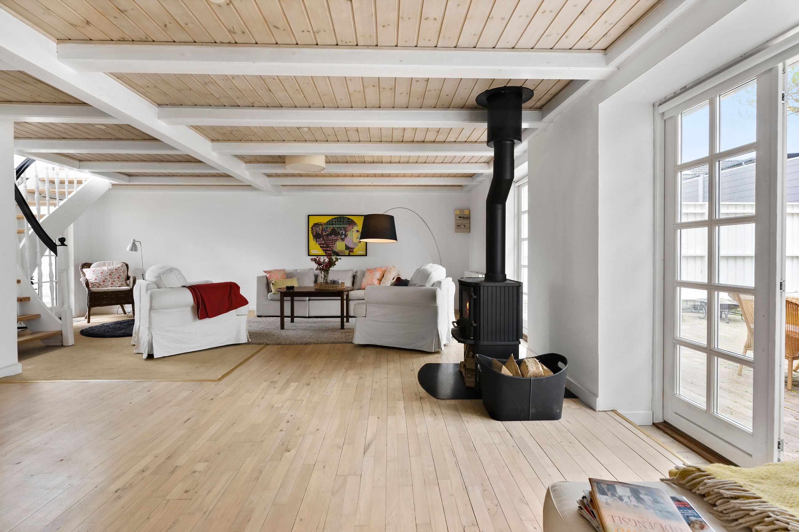 Boligen fremstår velholdt med de flotteste bjælkelofter, og nyrenoverede trægulve fra 2023. Alt, både indvendigt og udvendigt, er malet i 2024, ligesom hoveddøren er fra 2024. Udenfor er der en dobbelt carport og mulighed for at parkere yderligere tre-fire biler eller andre køretøjer på grunden. Der er en lille hyggelig have, som er nem holde for selv en travl familie, da den mest er udlagt i græs. Men der er mulighed for at sætte jeres eget præg med flere blomstrende buske, legeredskaber eller nyttehave, eller måske lidt af det hele.