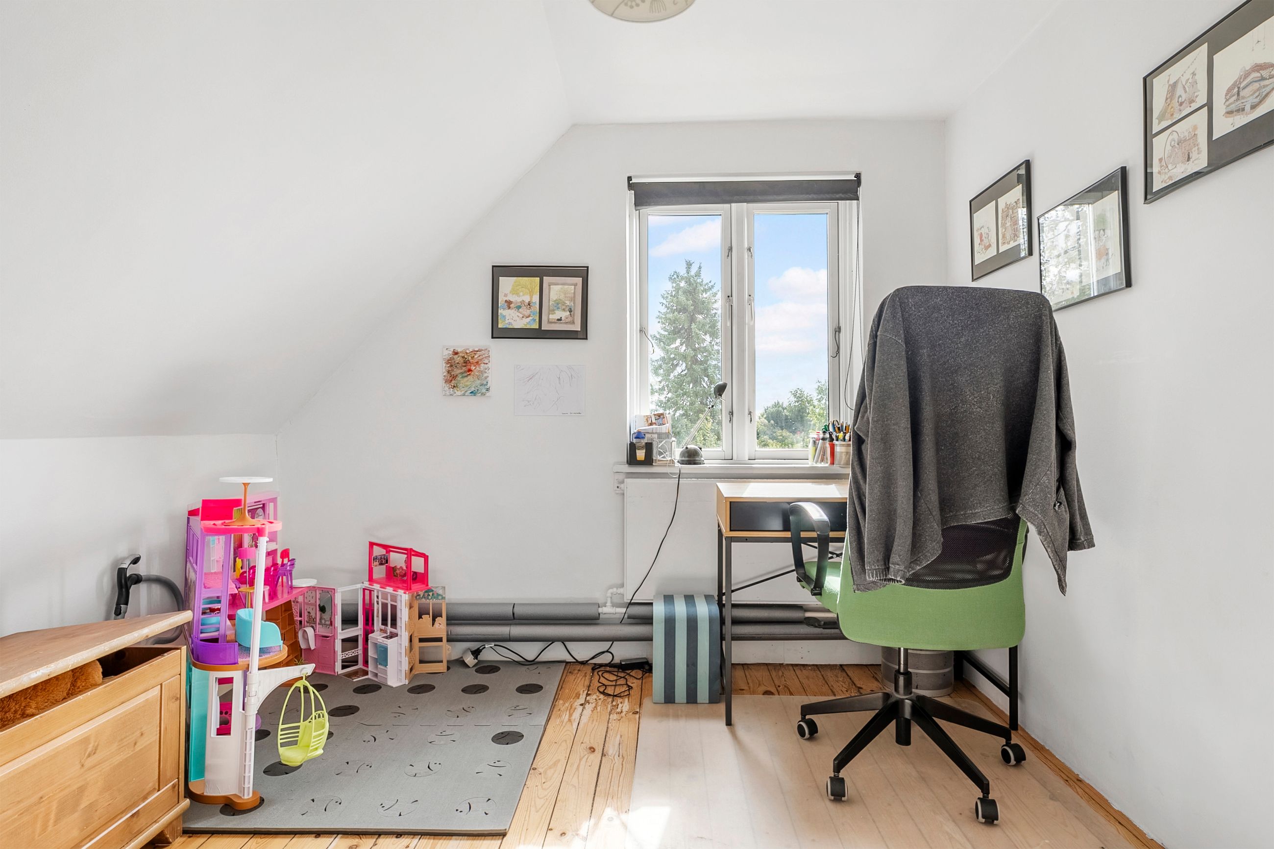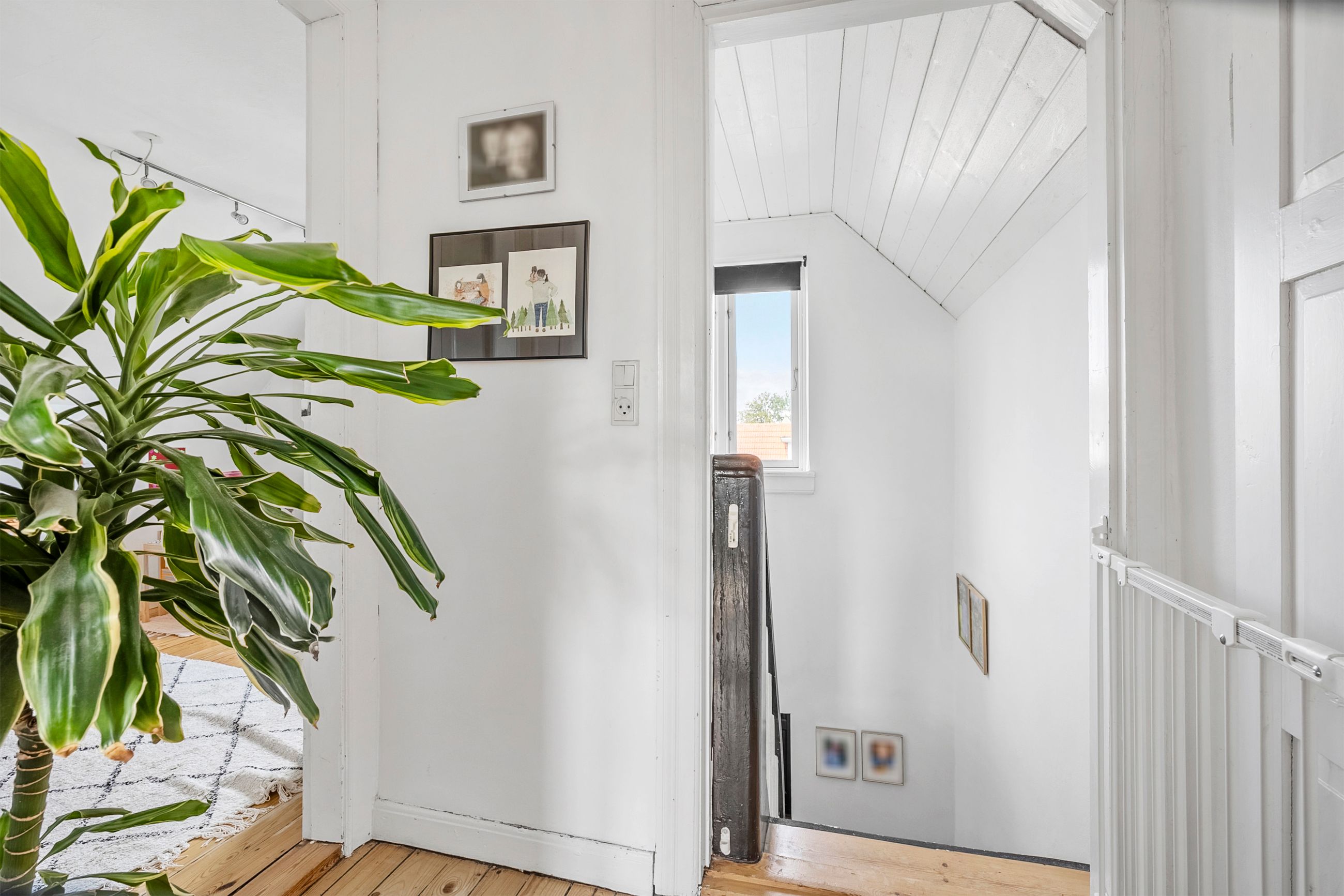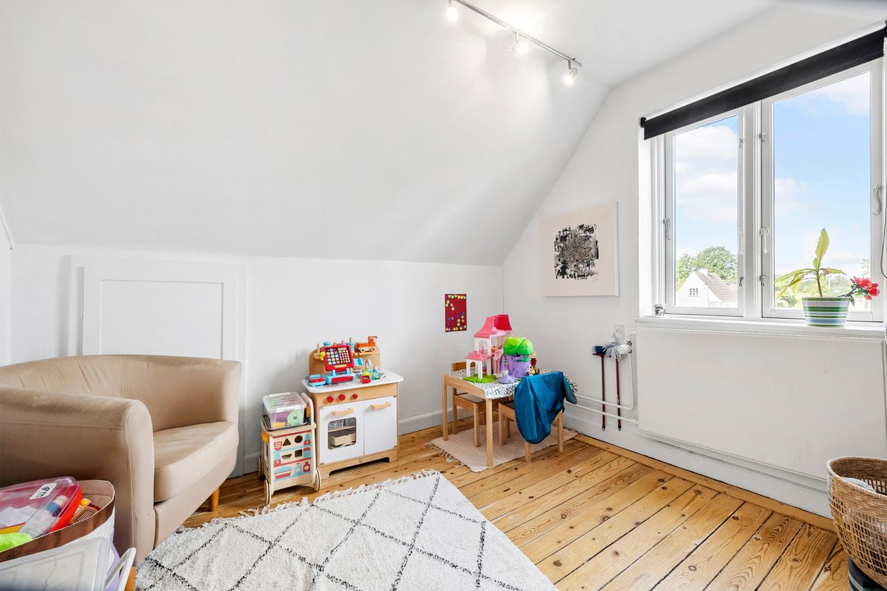 Villaen har en skøn loftshøjde og en fleksibel planløsning, som I selv kan justere efter behov. Boligens 114 kvadratmeter er fordelt på et stueplan og en førstesal, hvor den øvre etage rummer tre af boligens i alt fire værelser. Her kan de to værelser mod øst nemt lægges sammen, så I får et stort multirum, en hyggelig stue eller et lækkert master bedroom med plads til det hele. Værelset i stueplan får et dejligt lysindfald fra både syd og vest, og i samme plan venter et brusebadeværelse og et dejligt opholdsmiljø med stue og køkkenalrum, som til sammen udgør et dynamisk samlingspunkt for hele familien. Under huset er der vaskekælder med egen indgang.
