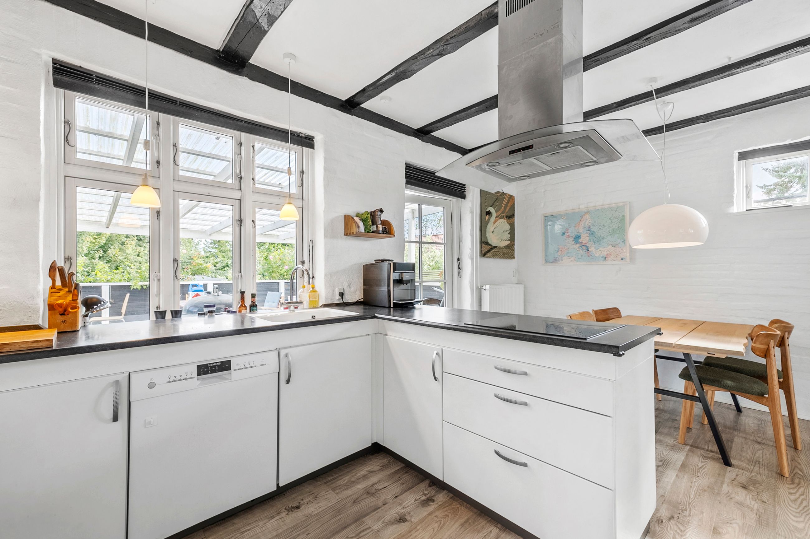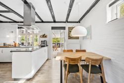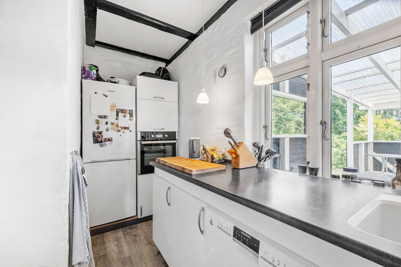 Den helt lukkede have med en stor, overdækket terrasse og gode udfoldelsesmuligheder for børnene tilføjer denne villa på Kathrinevej 11 i Holbæk en høj attraktionsværdi. Selve huset er istandsat ad flere omgange, og restaureringen er meget original, så man får fornemmelsen af den oprindelige charme i en fin kombination med et ellers meget strømlinet udtryk.