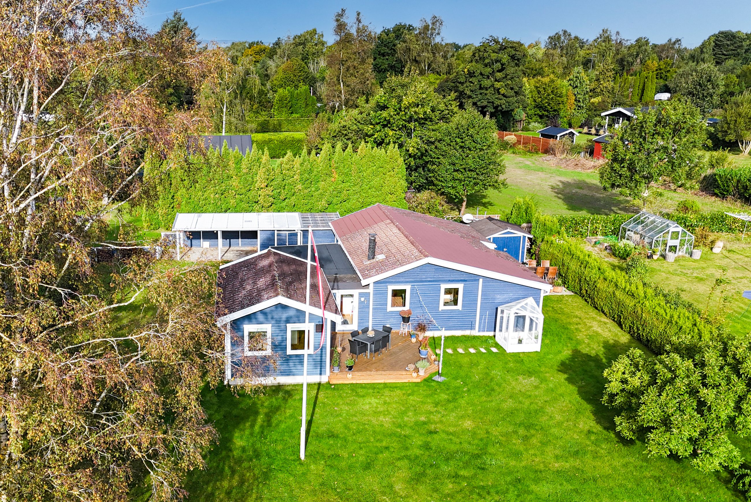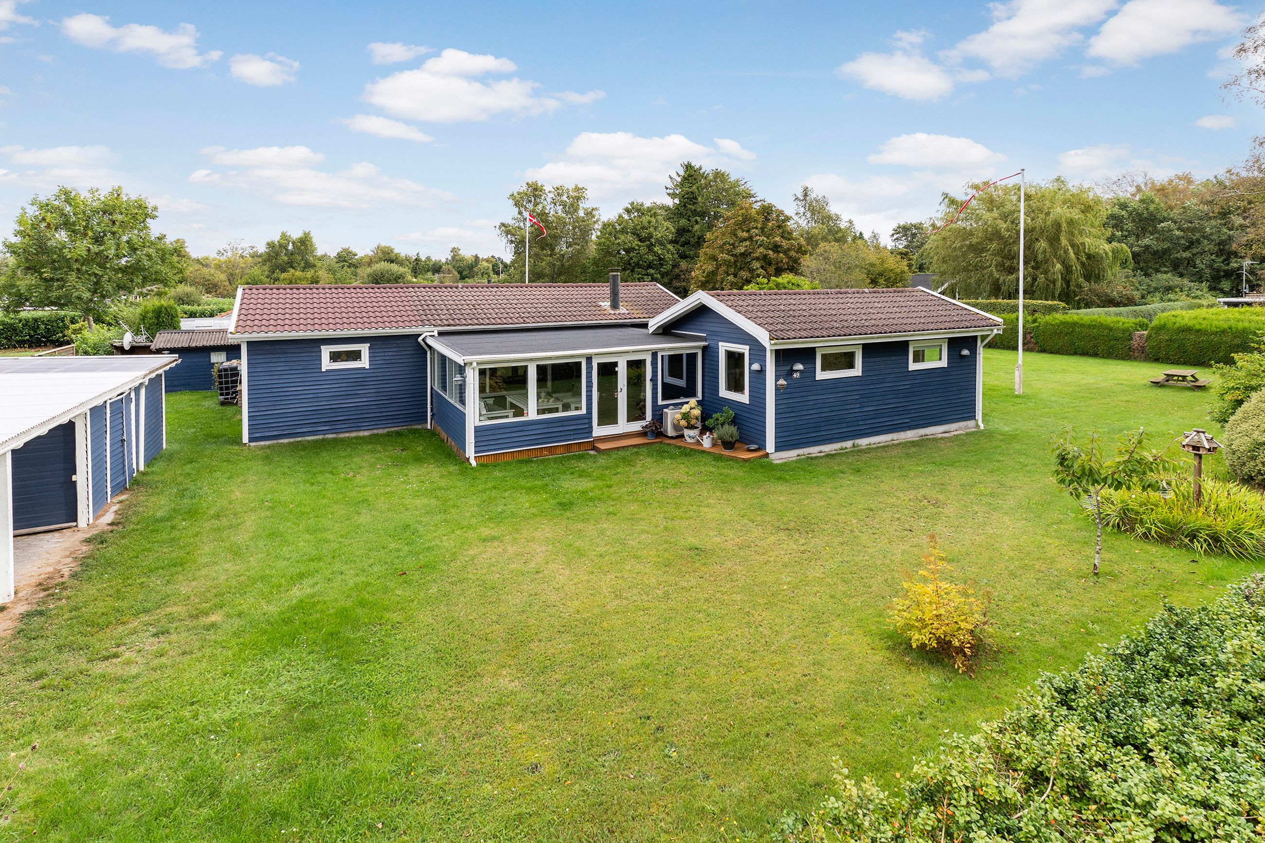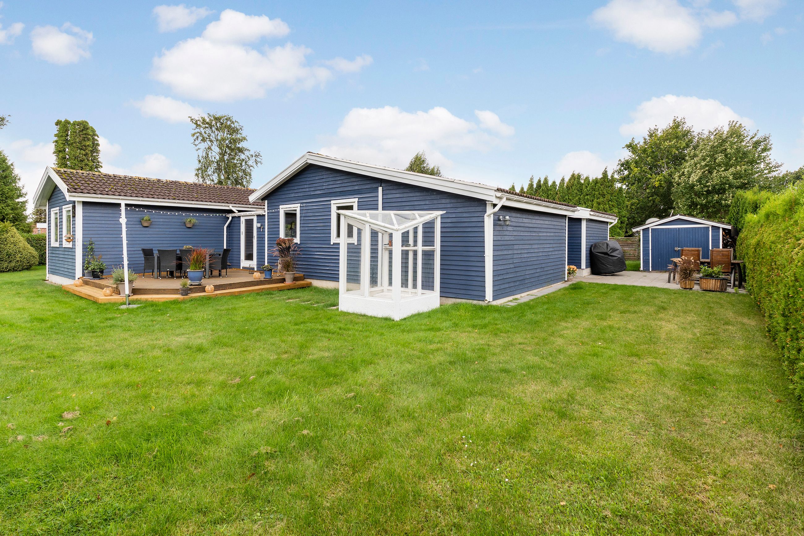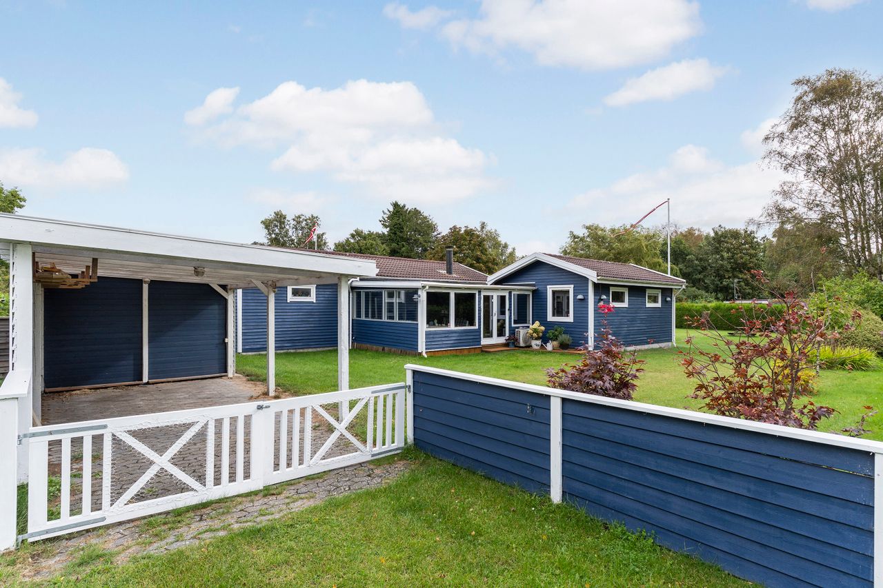 På grunden er der i øvrigt flere skure og en carport, så bilen kan holde tørt, samtidig med at der er plads til havemøbler, grill, græsslåmaskine og meget andet. Velkommen til.