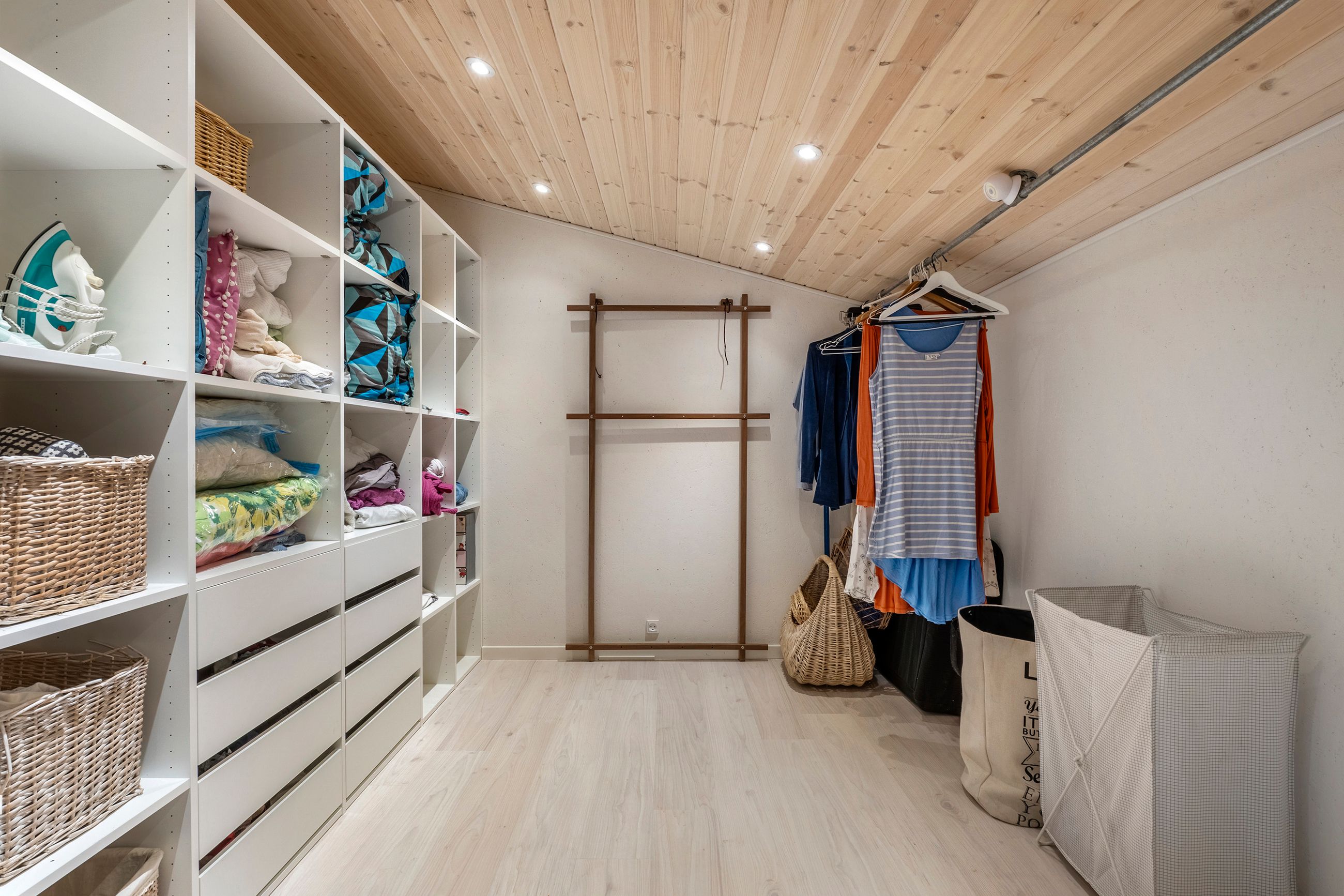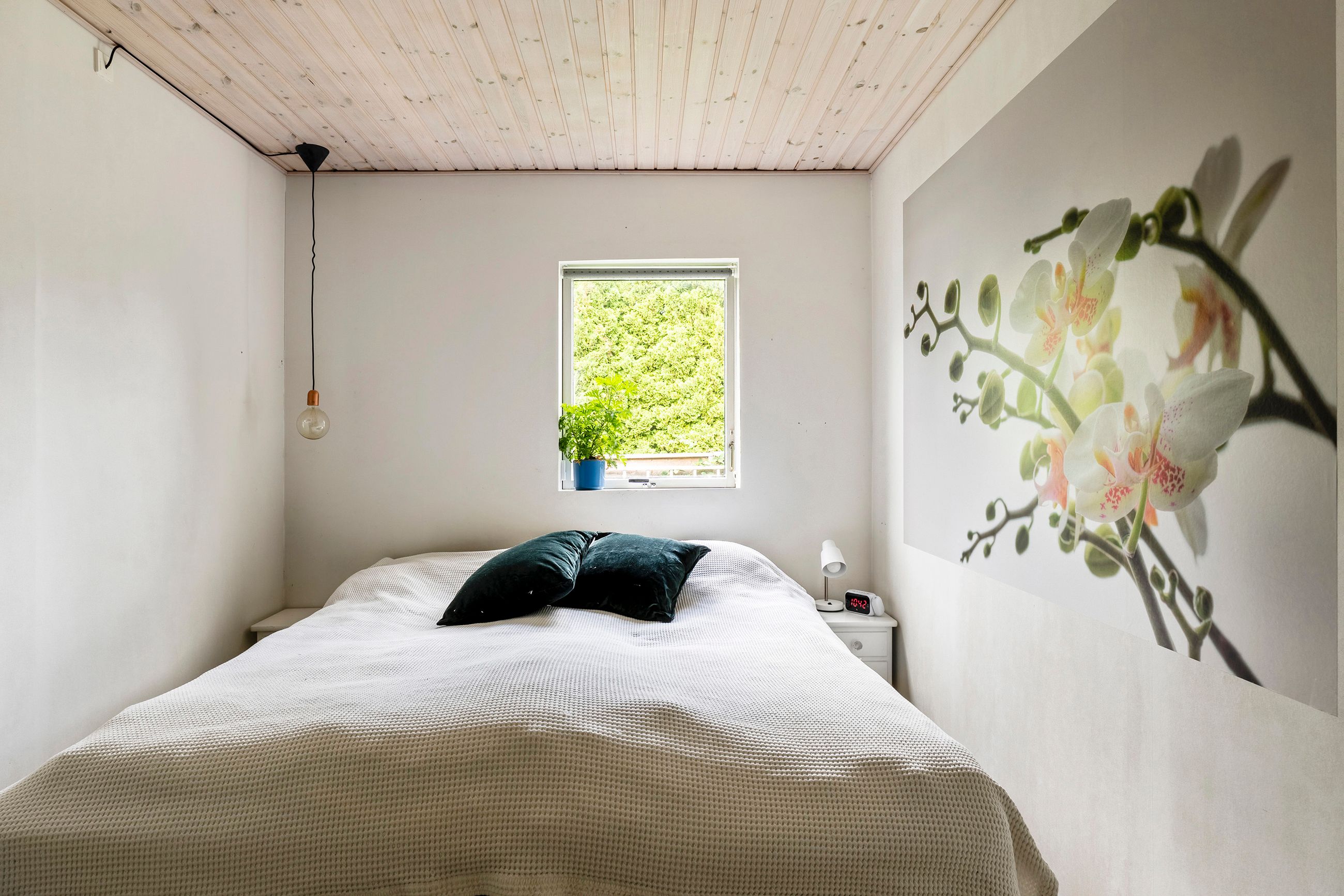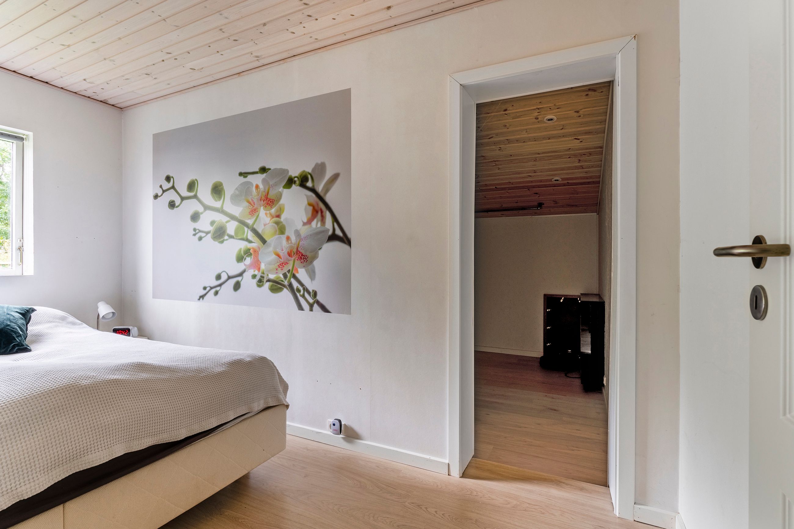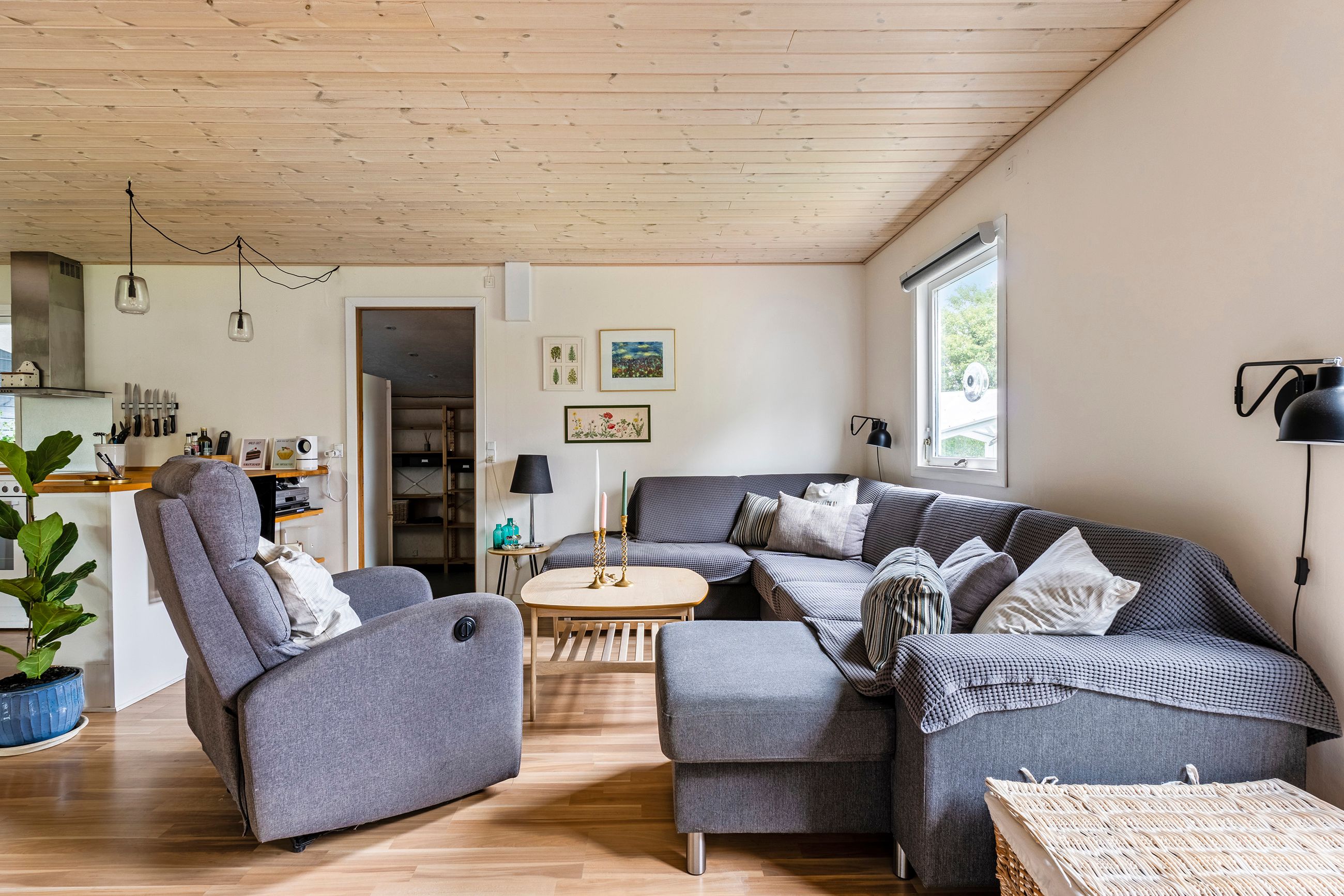 Siden nuværende ejer overtog huset for 26 år siden, er det vedligeholdt og udvidet ad flere omgange, så det i dag rummer 100 kvadratmeter. Udover de tre regulære soveværelser, hvoraf det ene har integreret walk-in-closet, får I et stort brusebadeværelse og et centralt placeret opholdsmiljø med stue og køkkenalrum i åben forbindelse. Herfra er der udgang til en rummelig udestue, der får lyset ind fra syd og vest, og til den anden side har I et kombineret værksted og bryggers.