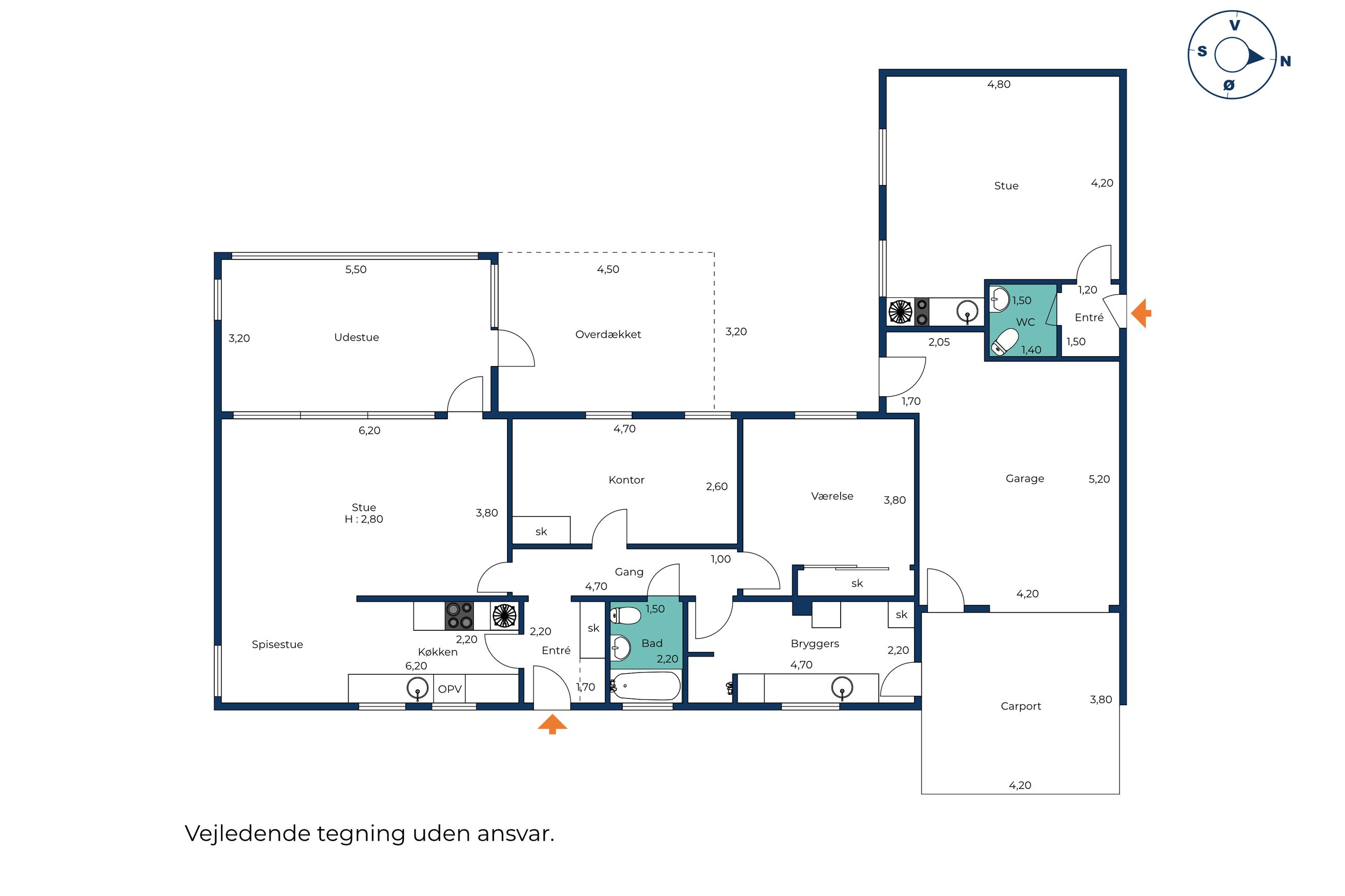 Den oprindelige beboelse rummer to gode værelser, et bryggers, en entré og et originalt badeværelse med badekar, terrazzogulv og mintgrønne flisevægge. Derudover får I et dejligt opholdsmiljø, hvor stue og køkkenalrum ligger i åben forbindelse. Den tilbyggede lejlighed med egen indgang kan bruges til flere forskellige formål. Eksempelvis vil den være et fint hjemmekontor eller en oplagt udslusningsbolig til familiens teenager, ligesom arealet snildt kan udnyttes med to ekstra værelser. Mulighederne er mange.