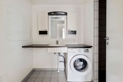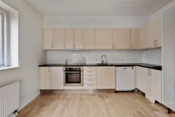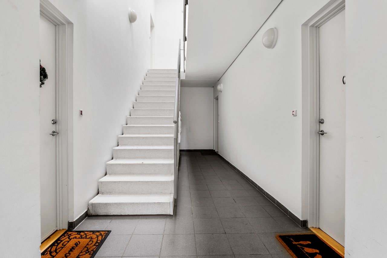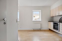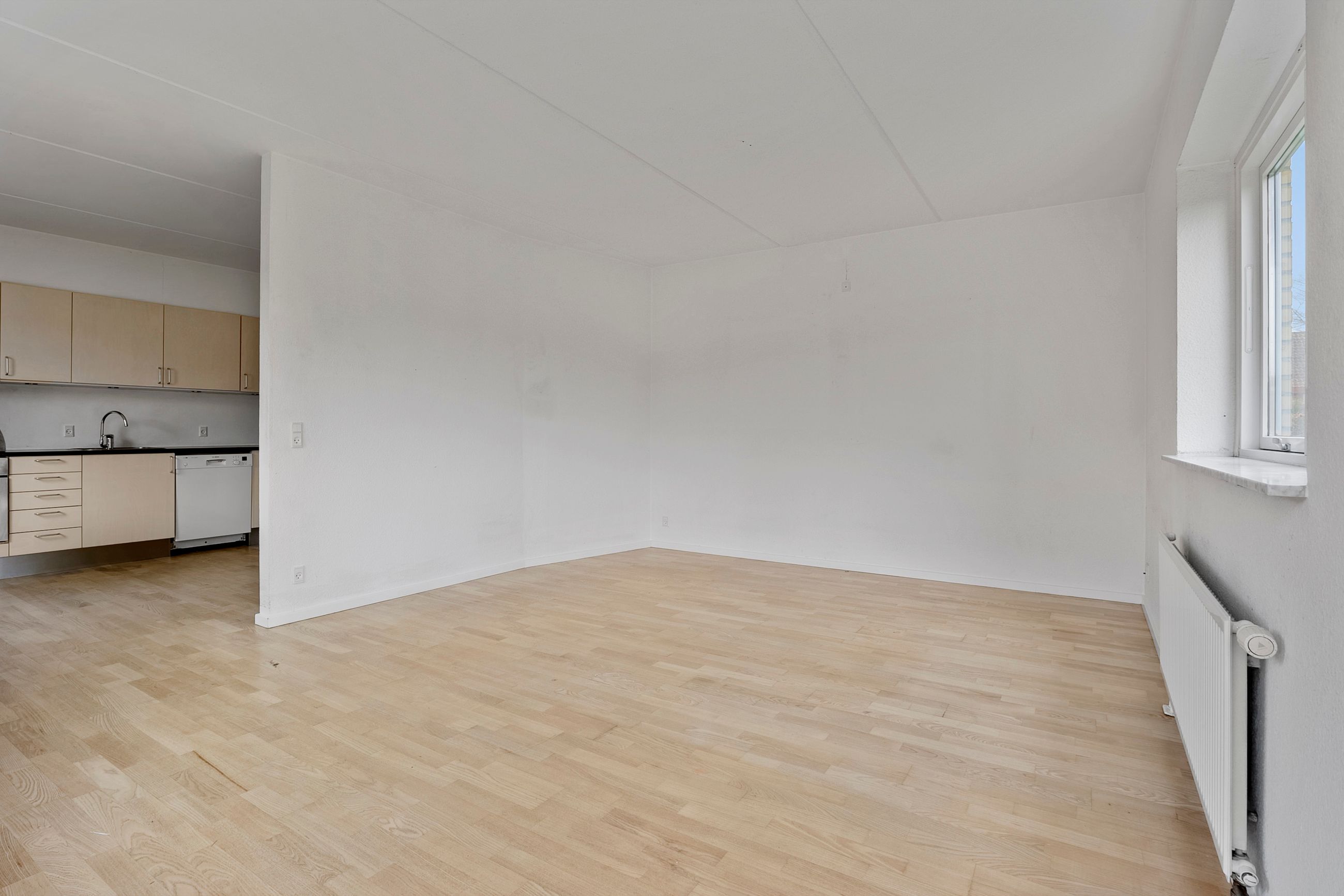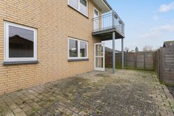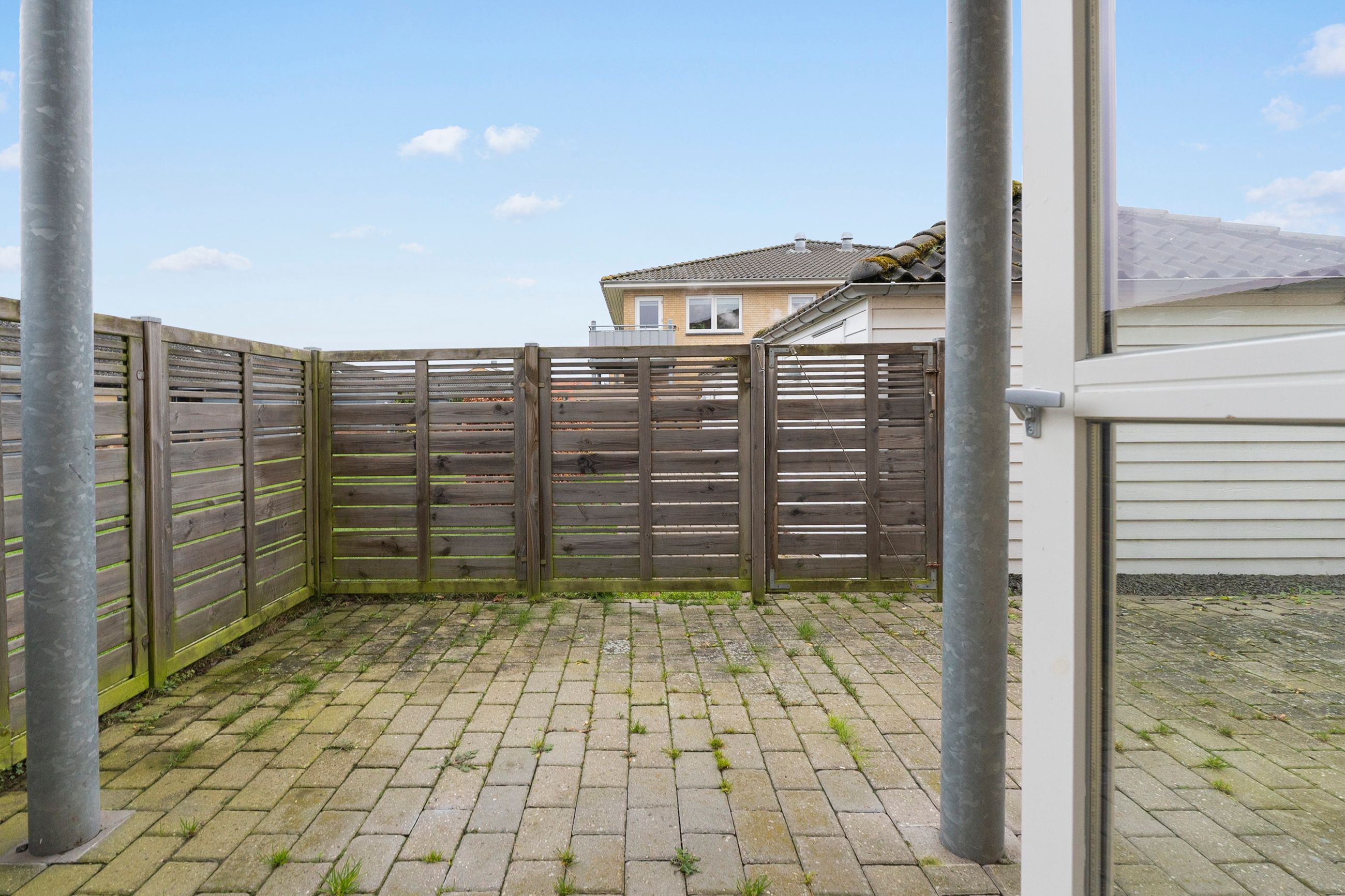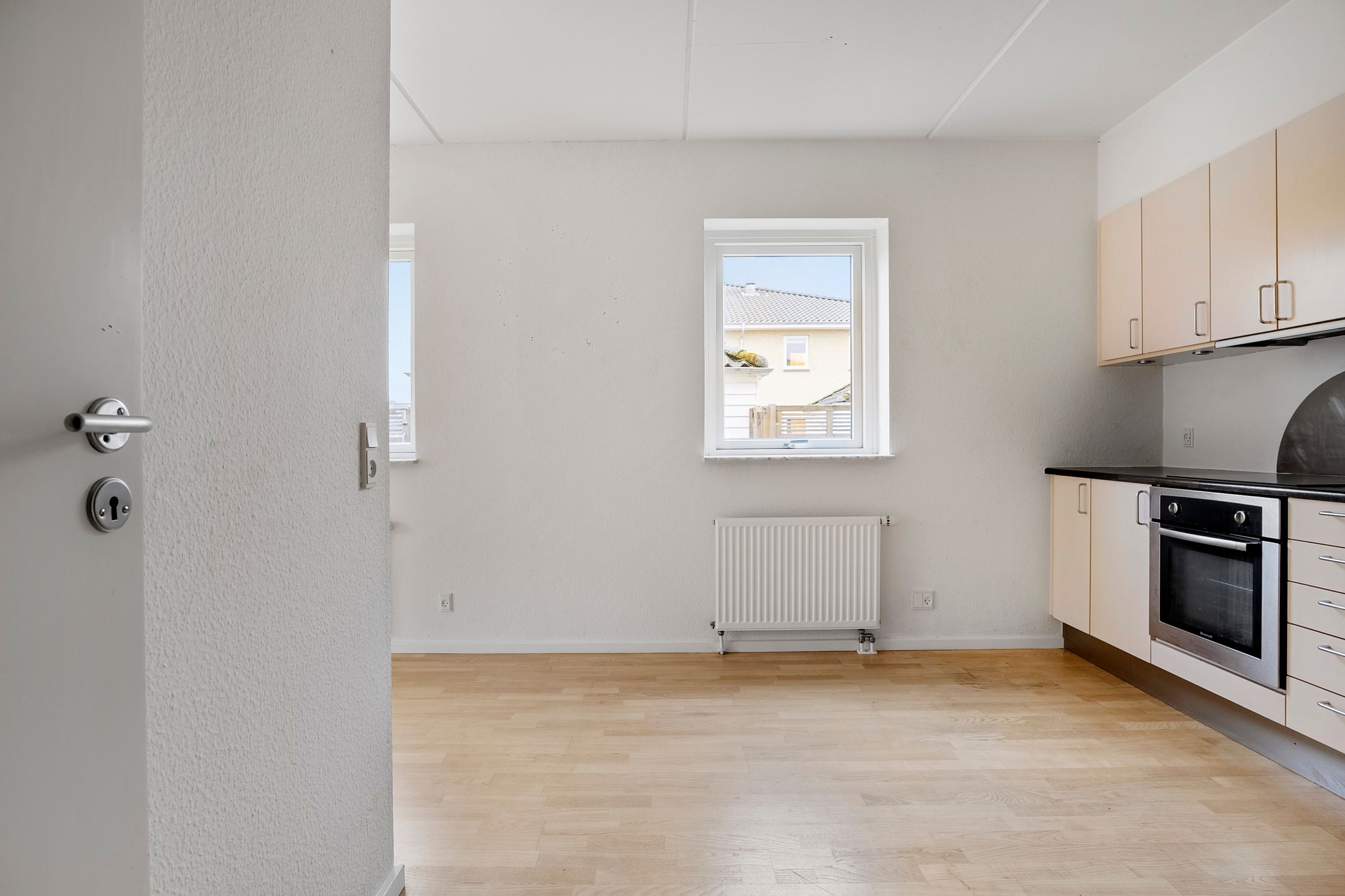 Lejligheden har et soveværelse i god størrelse og et opholdsrum med stue og køkken i halv åben forbindelse. Rummet kan nemt indrettes med både spisebord og sofa. Her er to vinduer og en dør mod eftermiddags- og aftensolen samt et vindue mod syd. Fra opholdsrummet er der adgang til en flisebelagt have, hvor man kan sidde uforstyrret og nyde lys og sol det meste af dagen.