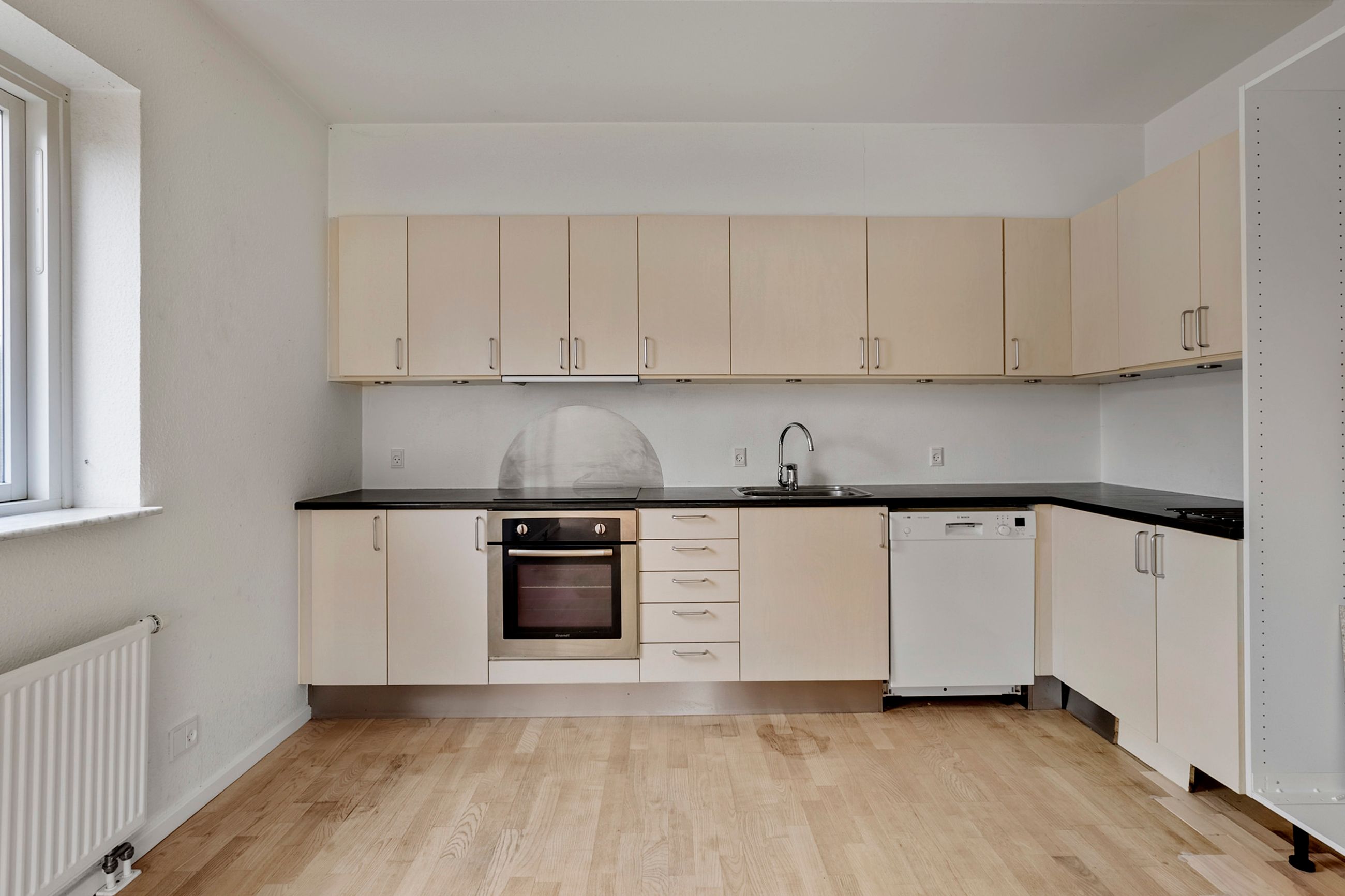 På en stille allé tæt på både centrum og vandet ligger denne lyse toværelses andelslejlighed. De 66 kvadratmeter er godt udnyttet og føles rummelige for både et par og en single, der ønsker lidt ekstra plads.