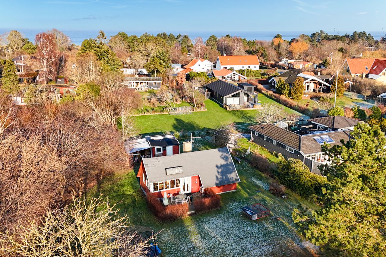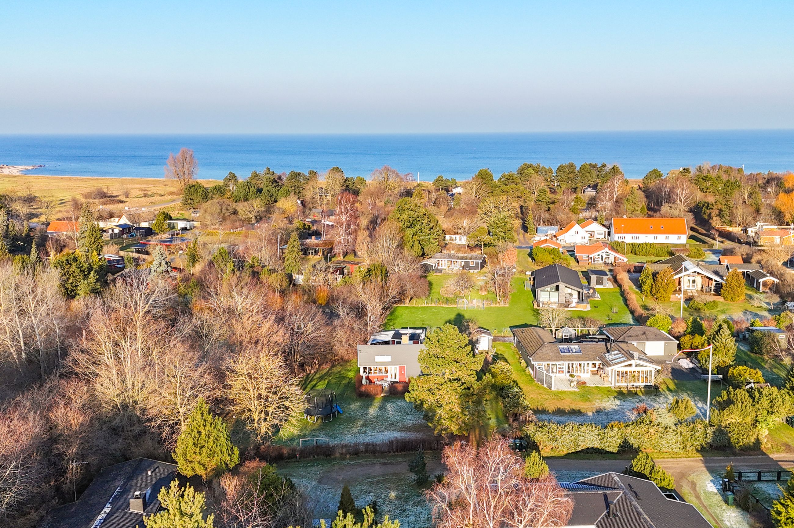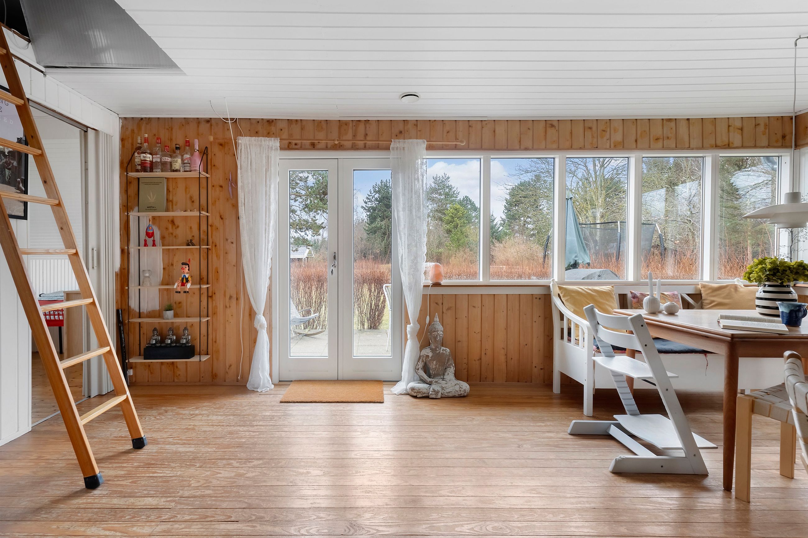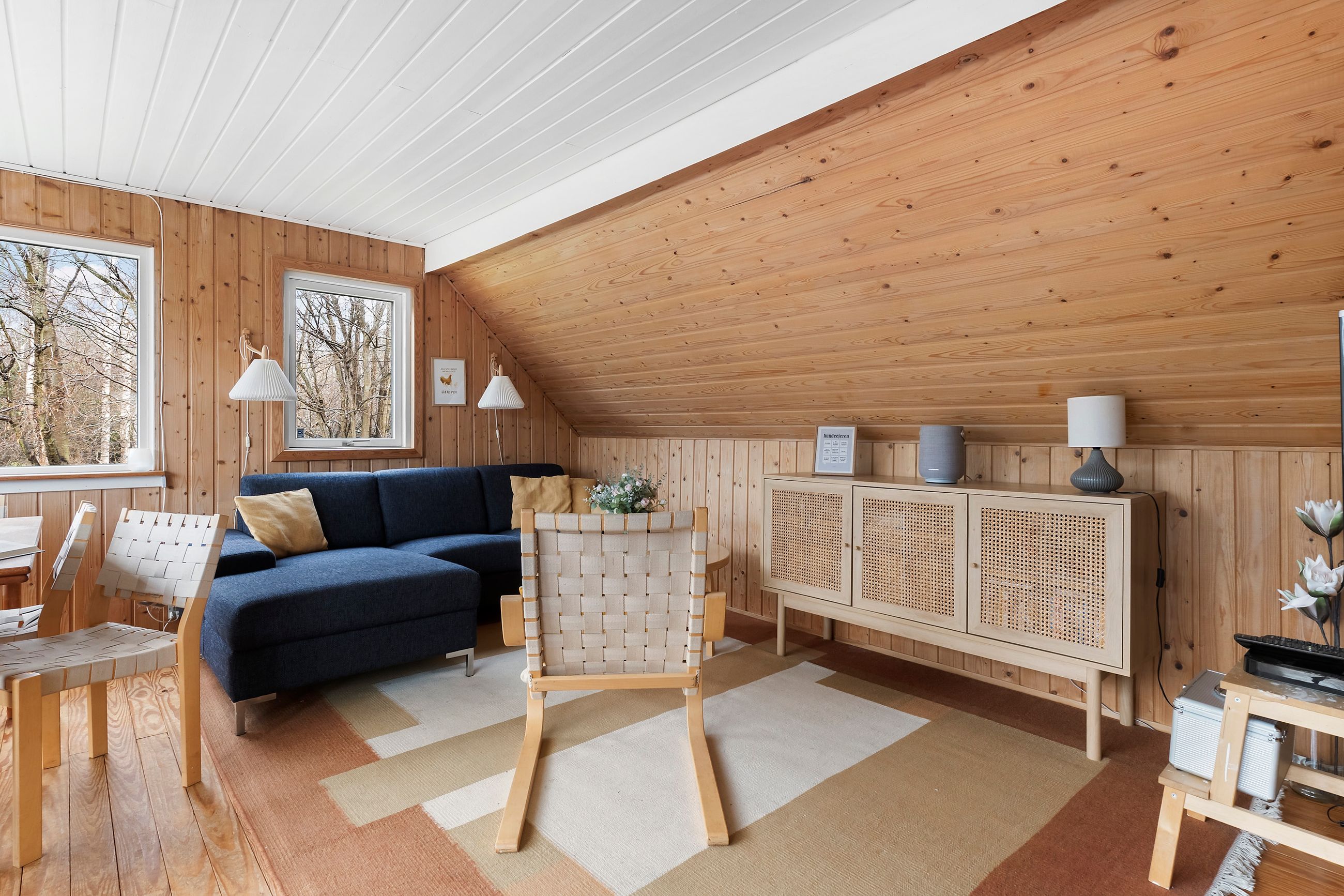 I kan således se frem til hver morgen at kunne snuppe jer en frisk morgendukkert fra badebroen eller stranden, inden I hurtigt er hjemme igen i sommerhuset på den private terrasse bag huset, hvor I kan indtage morgenmaden, mens I kigger på områdets vilde dyr, som ofte lægger deres rute forbi jeres og naboens grund. I kan også iagttage rådyrene, harerne og det øvrige dyreliv inde fra stuen gennem de dejligt store syd- og vestvendte vinduespartier, som også sikrer jer masser af dejligt lysindfald. De store vinduer medvirker nemlig til at sikre jer en skøn fornemmelse af, at inde- og udearealet hænger perfekt sammen.