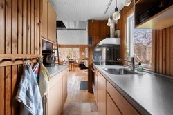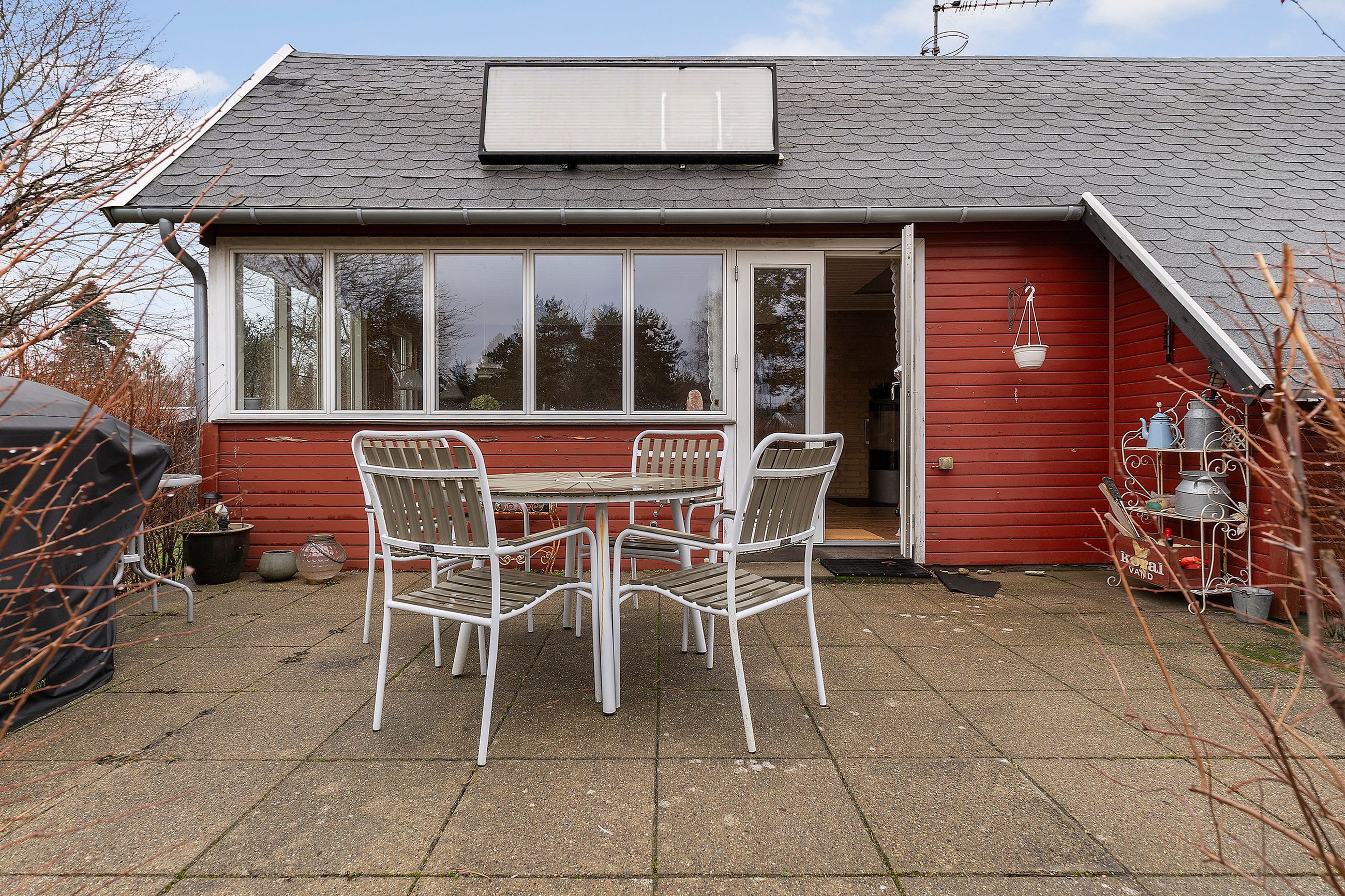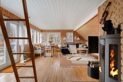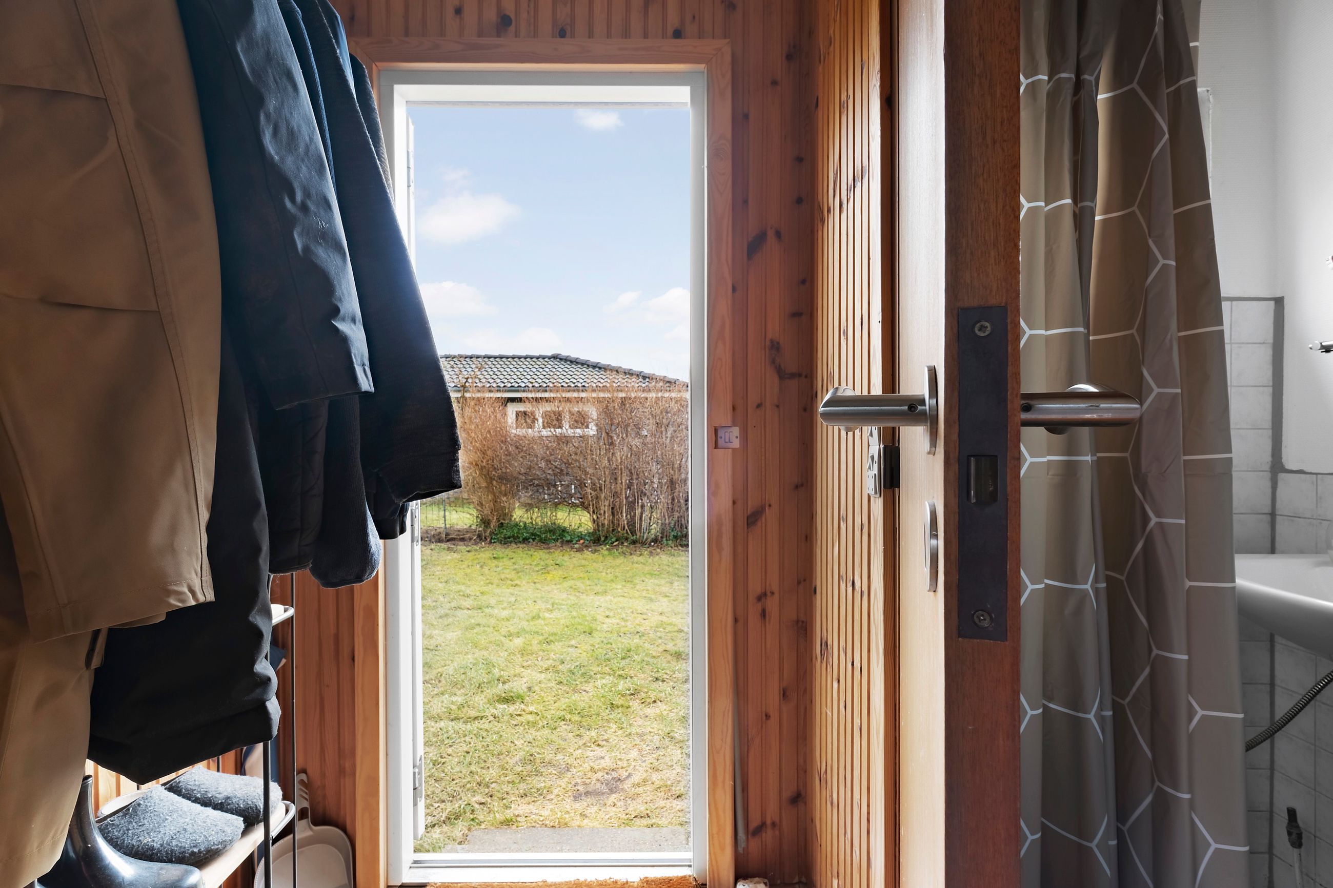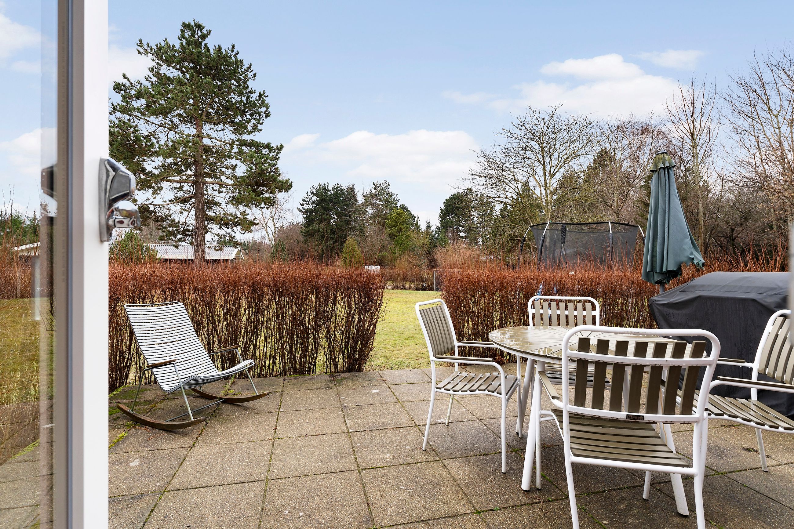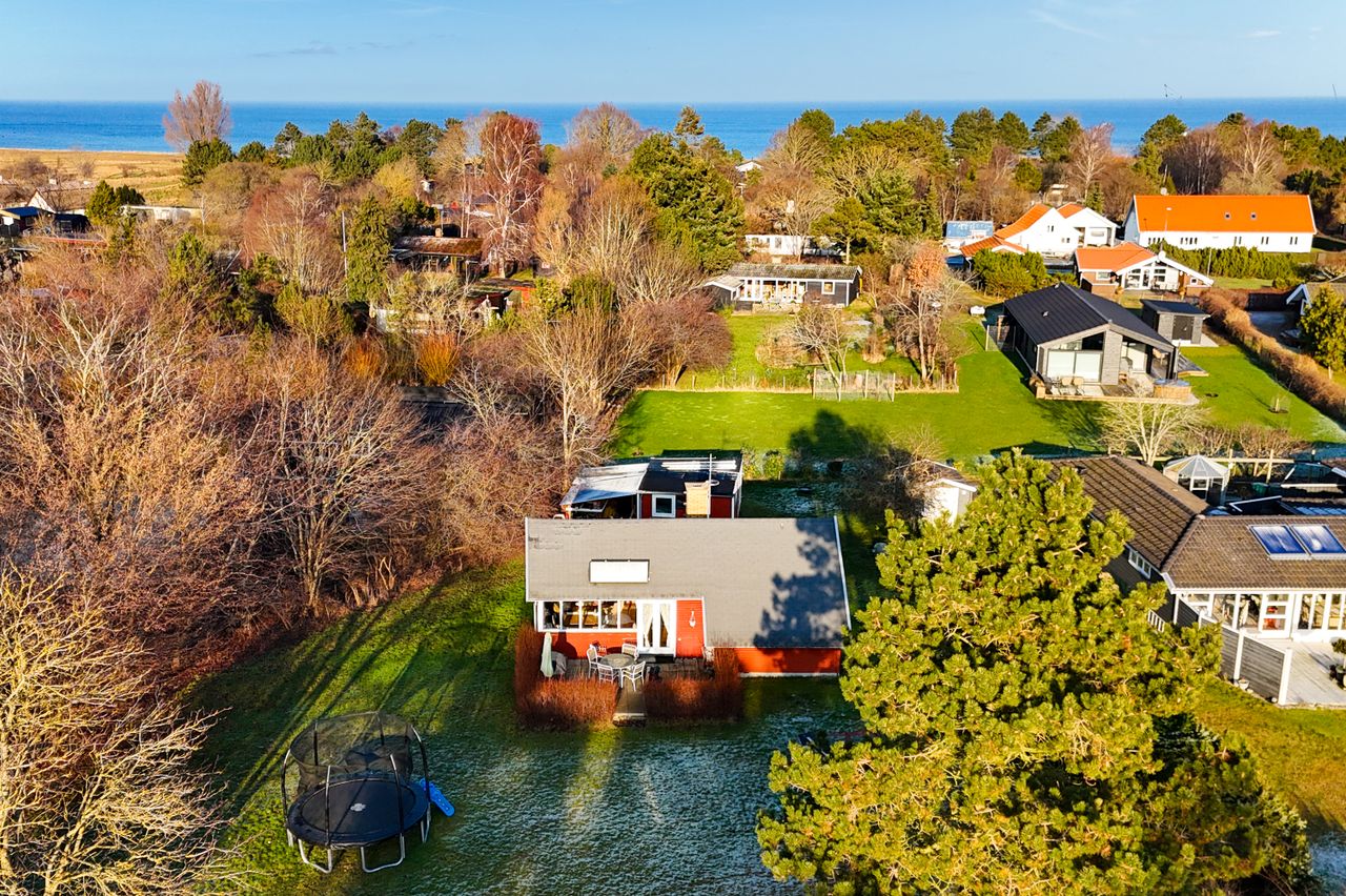I kan således se frem til hver morgen at kunne snuppe jer en frisk morgendukkert fra badebroen eller stranden, inden I hurtigt er hjemme igen i sommerhuset på den private terrasse bag huset, hvor I kan indtage morgenmaden, mens I kigger på områdets vilde dyr, som ofte lægger deres rute forbi jeres og naboens grund. I kan også iagttage rådyrene, harerne og det øvrige dyreliv inde fra stuen gennem de dejligt store syd- og vestvendte vinduespartier, som også sikrer jer masser af dejligt lysindfald. De store vinduer medvirker nemlig til at sikre jer en skøn fornemmelse af, at inde- og udearealet hænger perfekt sammen.