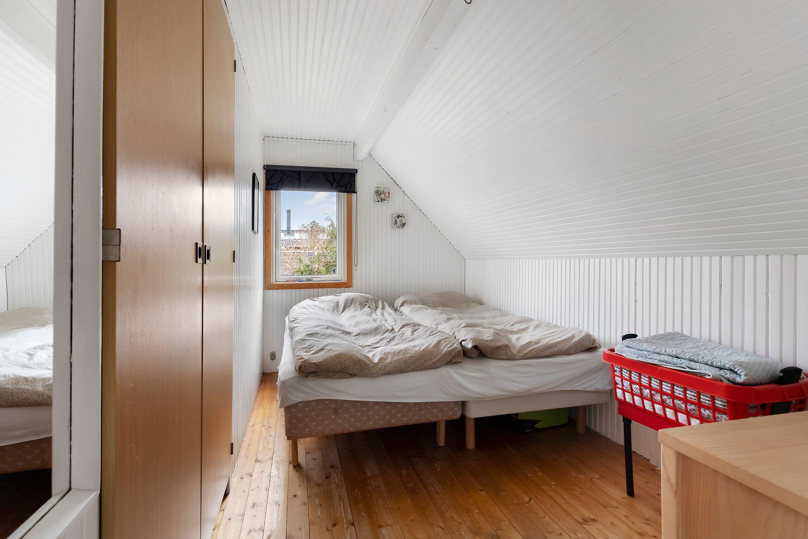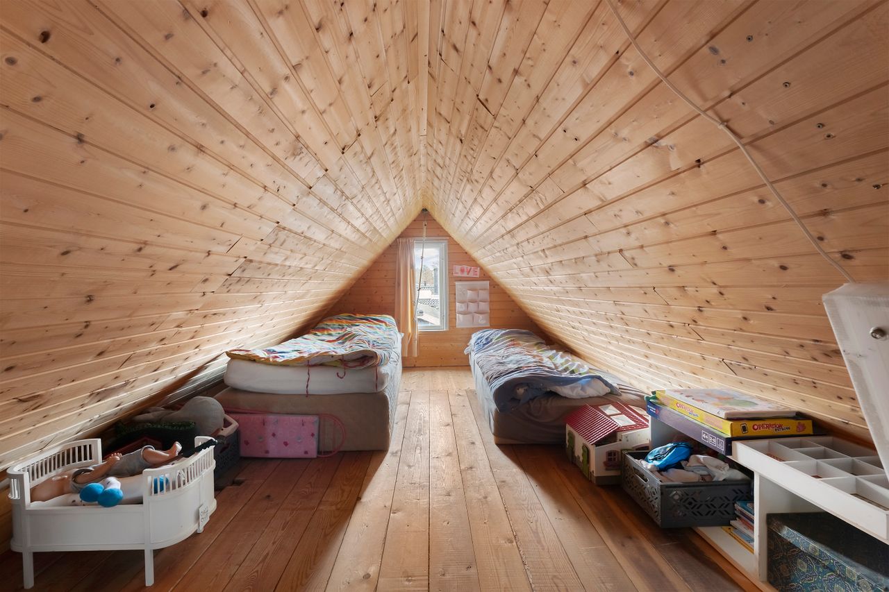 Det er også værd at bide mærke i den stemningsfulde hems, hvor der er 1,60 meter til loftet og mange muligheder for at indrette hyggerum til børnene, der her kan have deres eget lidt hemmelige domæne på afstand af de voksne.