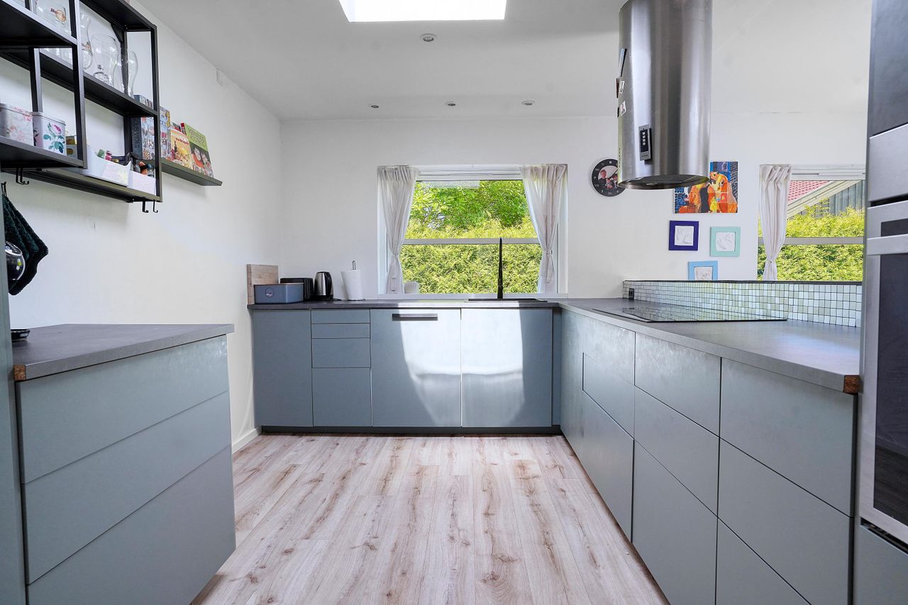 Solrig, ugeneret have og god plads til hverdagenHaven er helt ugeneret og orienteret perfekt mod syd. Den er omkranset af tæt hæk og plankeværk og byder på masser af sol, en dejlig græsplæne til leg og afslapning samt to udhuse – det ene integreret med carporten. Ejendommen er beliggende i et område uden lokalplan, hvilket giver den nye ejer usædvanligt gode udviklingsmuligheder. Ønsker man eksempelvis at etablere en førstesal, er det en reel mulighed – noget der adskiller sig markant fra mange andre villaområder i Kokkedal, hvor lokalplaner ofte begrænser byggeriets omfang. Alt i alt er det en skøn, funktionel ramme for familielivet – både nu og med spændende fremtidsperspektiver.