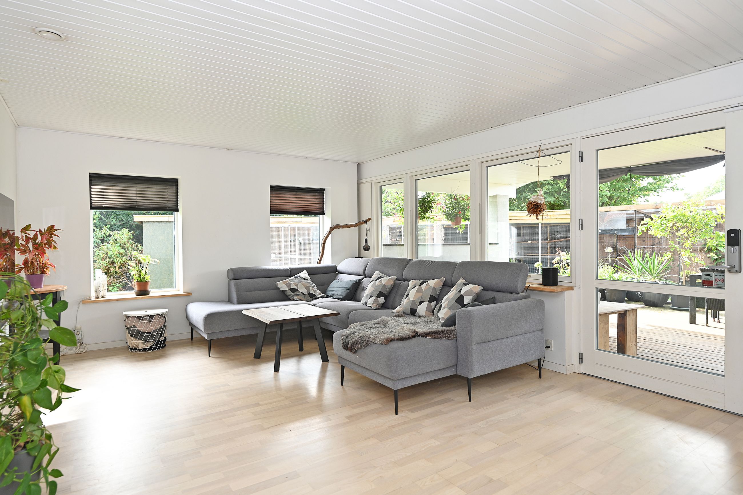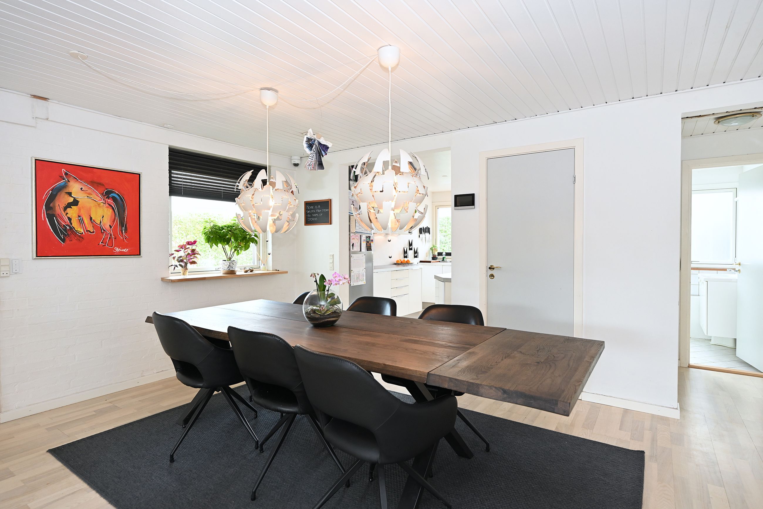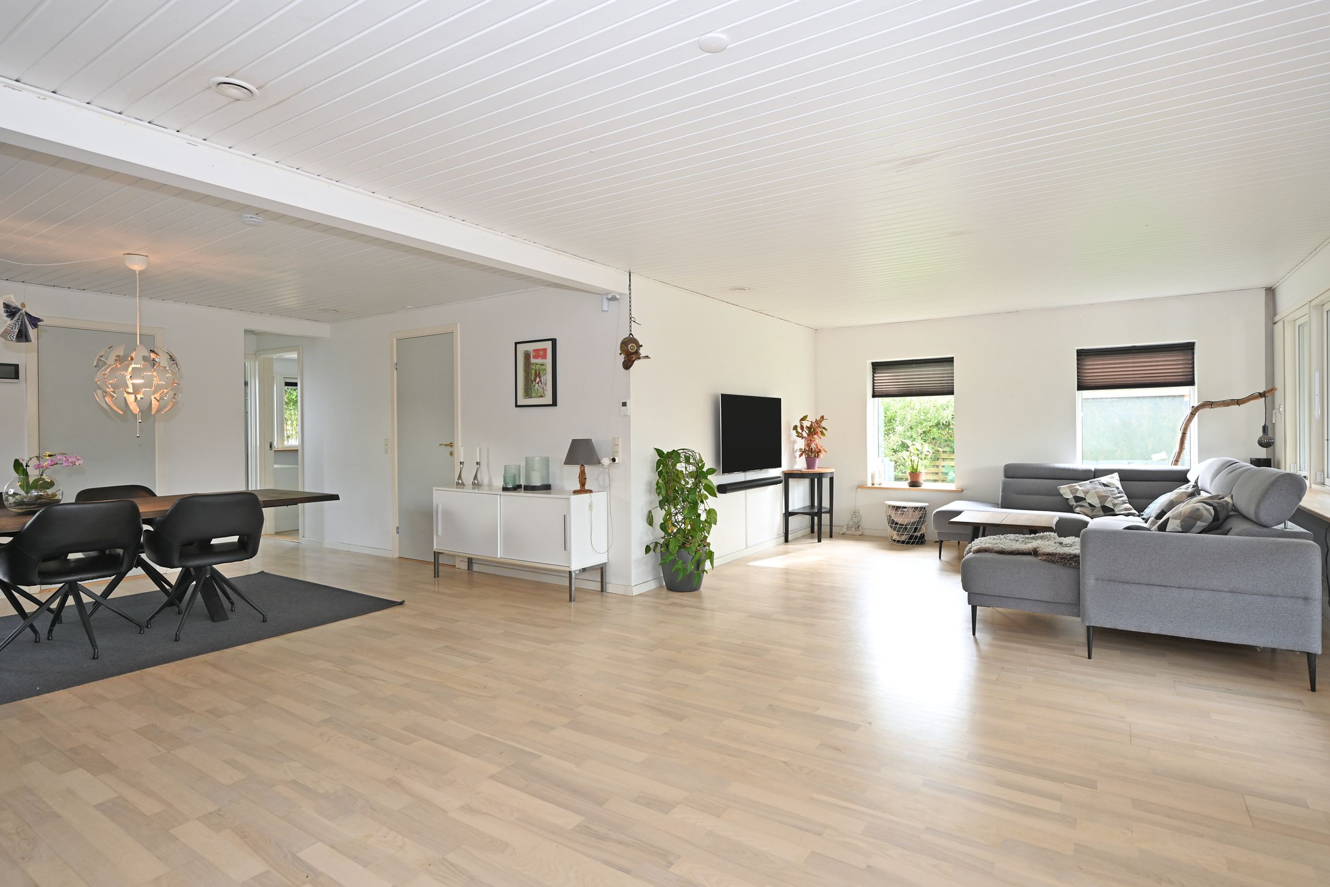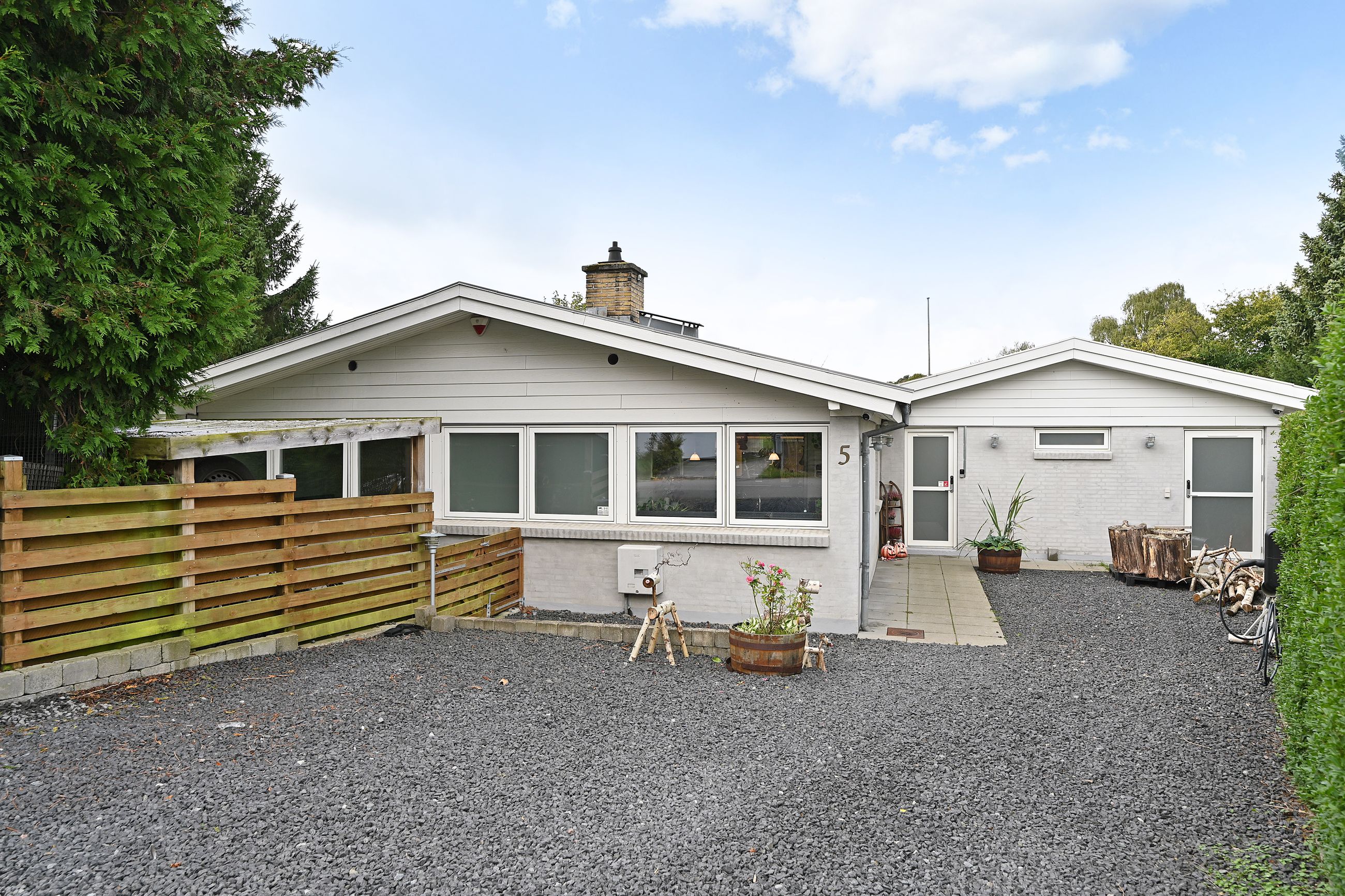 Indretningen er lys og rummelig med en stor, åben stue, hvorfra der er direkte adgang til en skøn overdækket træterrasse – perfekt til udendørs ophold året rundt. Køkkenet ligger i åben forbindelse med spisestuen og har god skabsplads. Boligen rummer desuden fire gode værelser, som kan anvendes som soveværelser, kontor eller børneværelser.