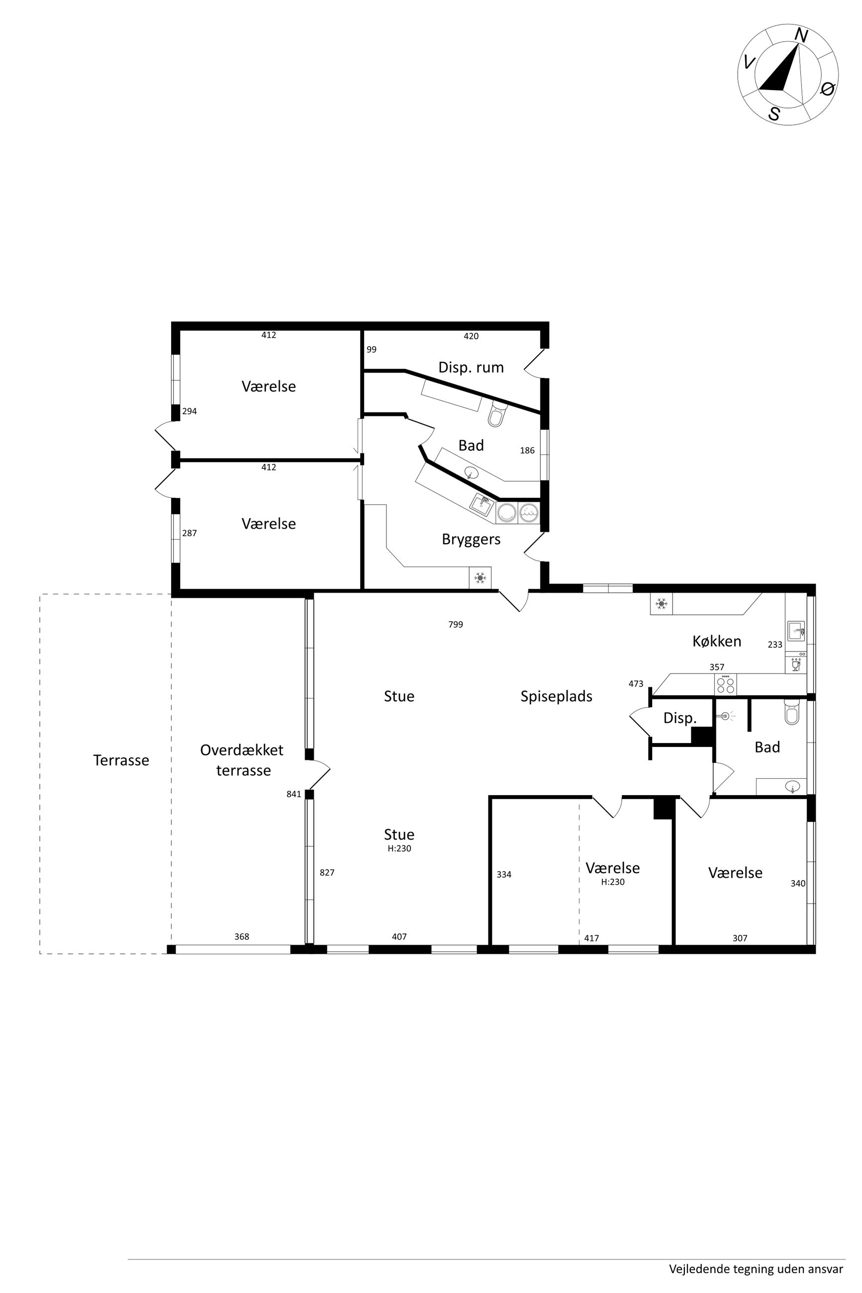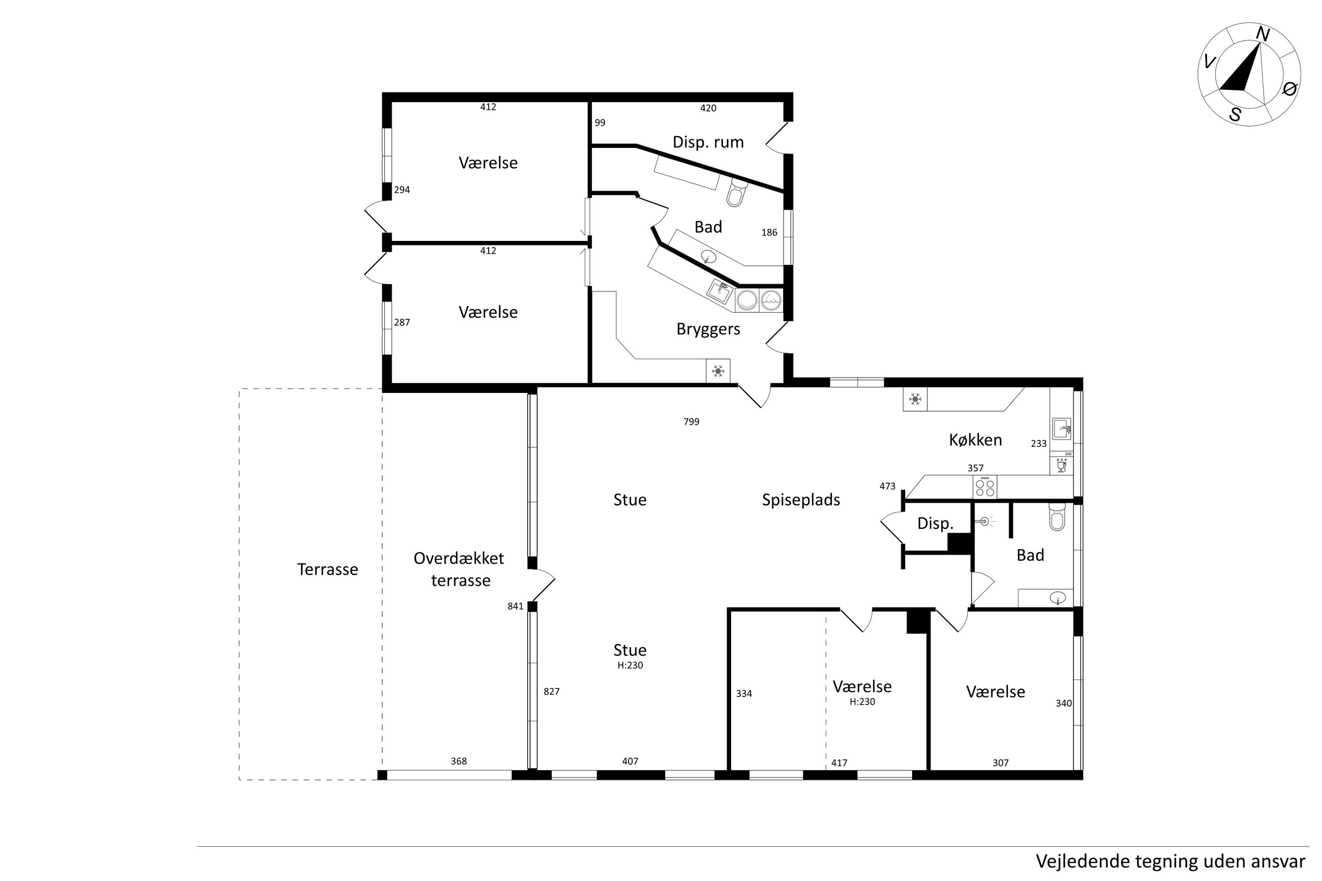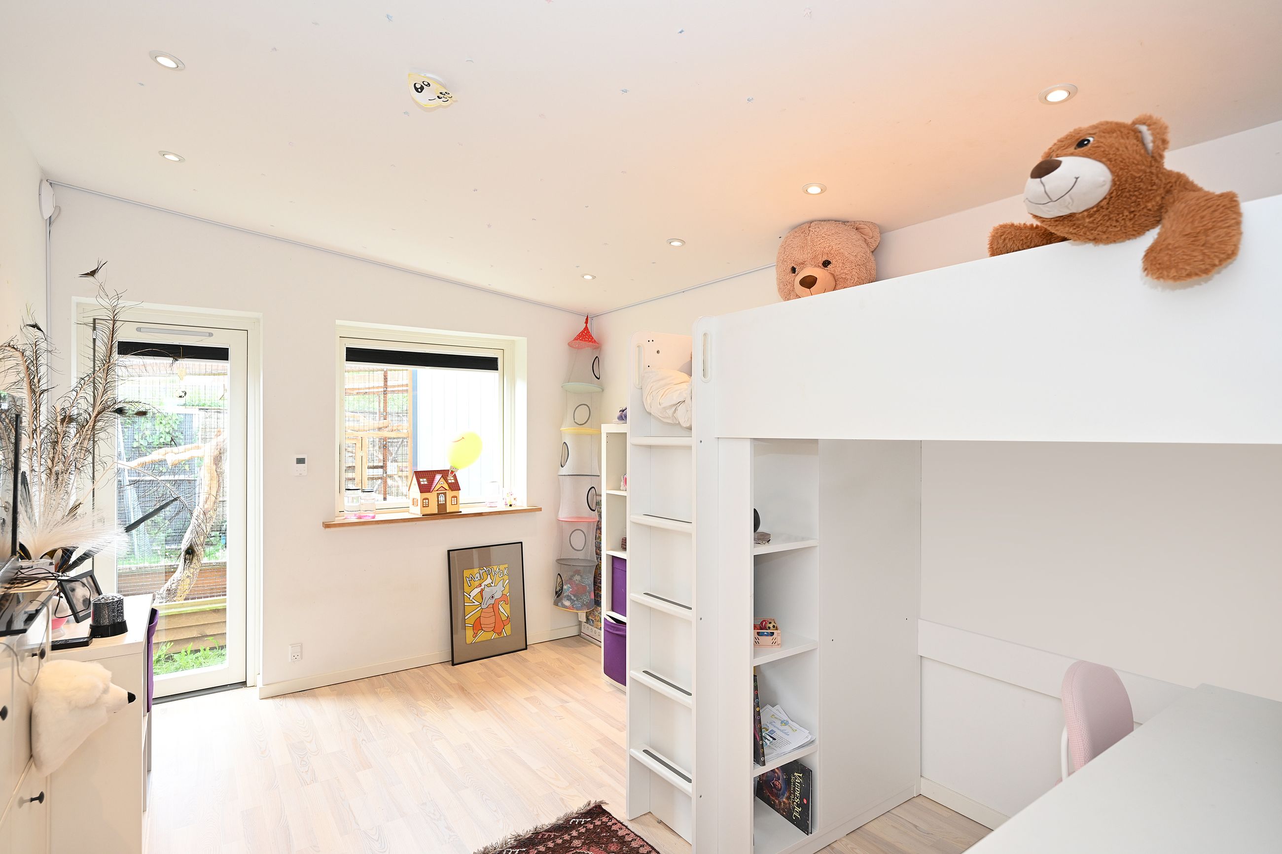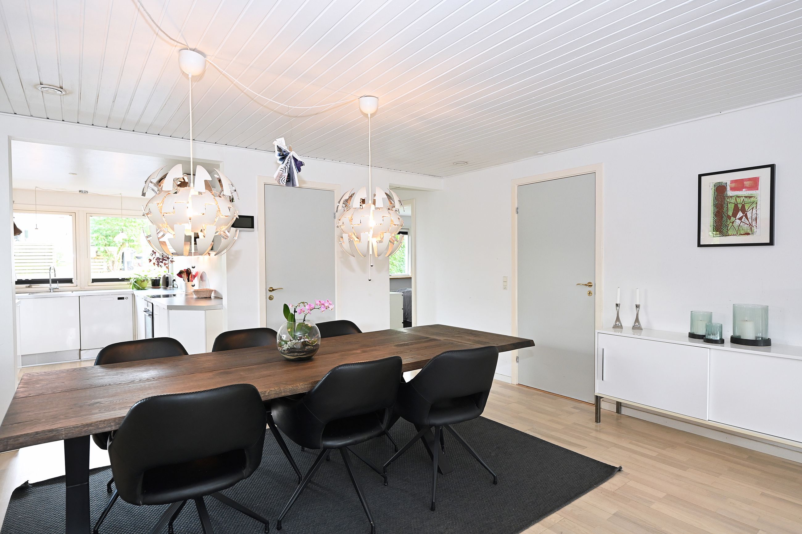 Indretningen er lys og rummelig med en stor, åben stue, hvorfra der er direkte adgang til en skøn overdækket træterrasse – perfekt til udendørs ophold året rundt. Køkkenet ligger i åben forbindelse med spisestuen og har god skabsplads. Boligen rummer desuden fire gode værelser, som kan anvendes som soveværelser, kontor eller børneværelser.