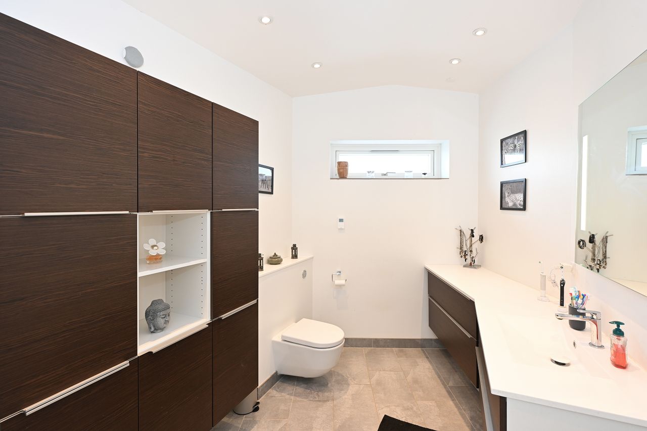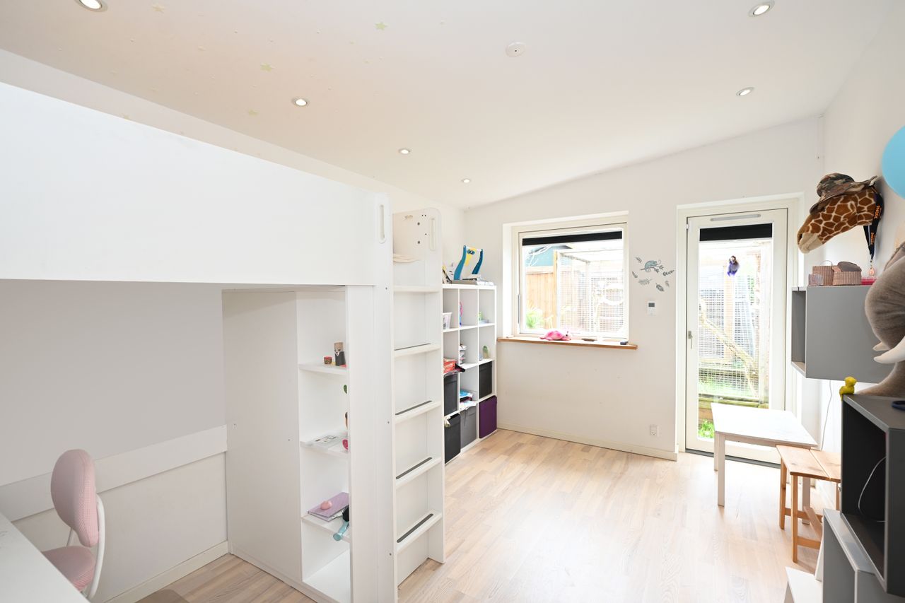 I 2016 blev der tilføjet en flot tilbygning, som tilfører boligen ekstra plads og moderne løsninger. Der er desuden to stilfulde badeværelser, hvoraf det ene er særligt rummeligt med eksklusive materialer.