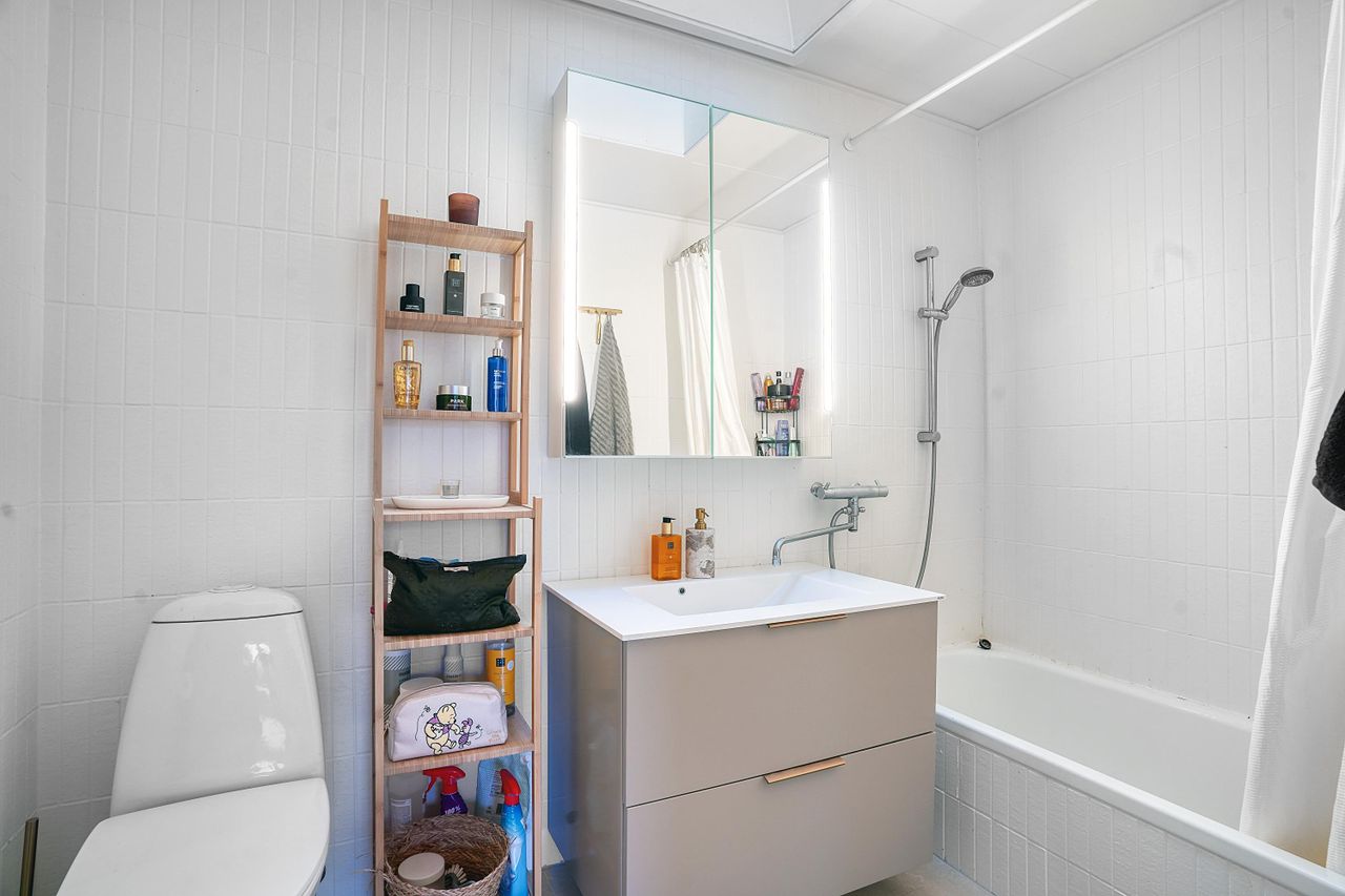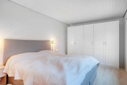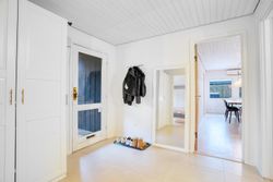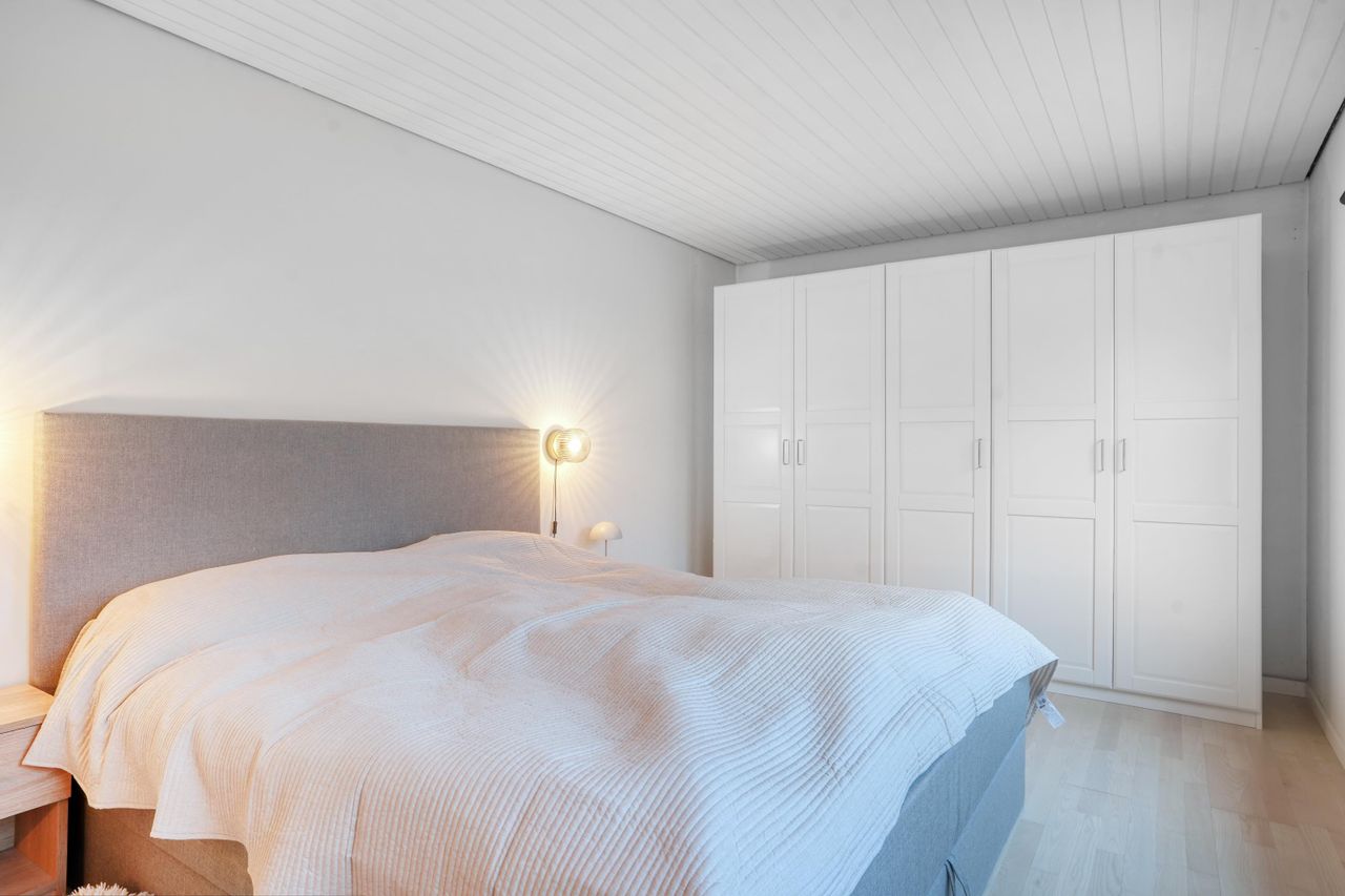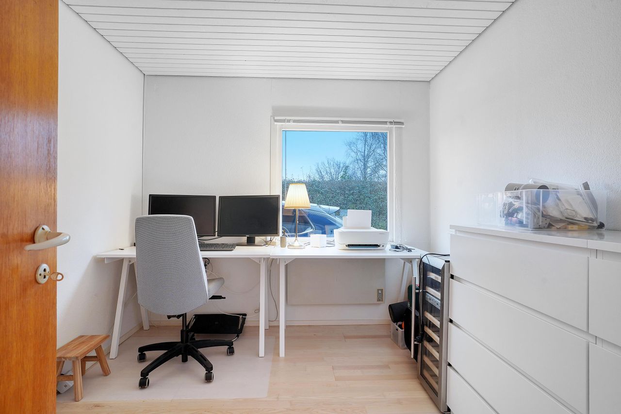 Boligen byder på tre gode værelser, der kan anvendes som soveværelse, børneværelser, hjemmekontor eller gæsteværelse. Det flotte badeværelse er velholdt med badekar, opbevaringsplads og moderne indretning. Hertil kommer et praktisk bryggers med vaskefaciliteter og direkte udgang til haven.