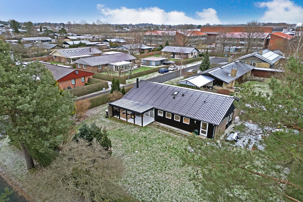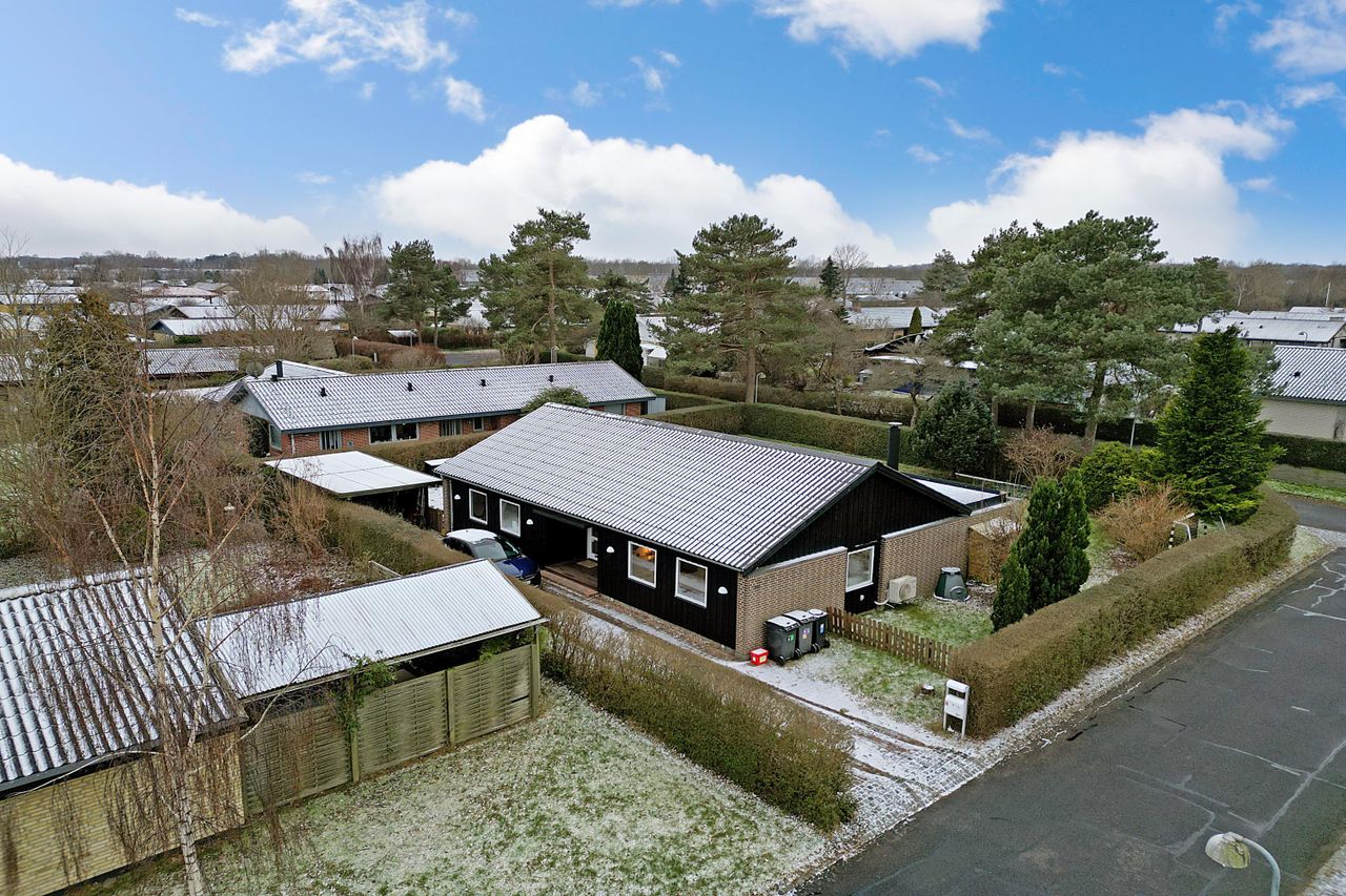 Den 700 m2 store grund giver masser af plads til både leg og afslapning. I baghaven forlænger et stemningsfuldt, overdækket terrassemiljø udesæsonen. Her kan I trække ind på sommeraftenerne, når duggen falder, eller hygge med en varmelampe og et tæppe i ydersæsonerne. Haven ligger syd og vestvendt og byder altså på sol hele dagen. På grunden finder du desuden en carport samt et praktisk udhus, der sikrer gode opbevaringsmuligheder. Ejendommen er placeret i et fredeligt villakvarter tæt på skoler, daginstitutioner, indkøbsmuligheder og offentlig transport. Motorvejsnettet ligger inden for kort rækkevidde, hvilket gør det let at pendle til både København og de omkringliggende byer.