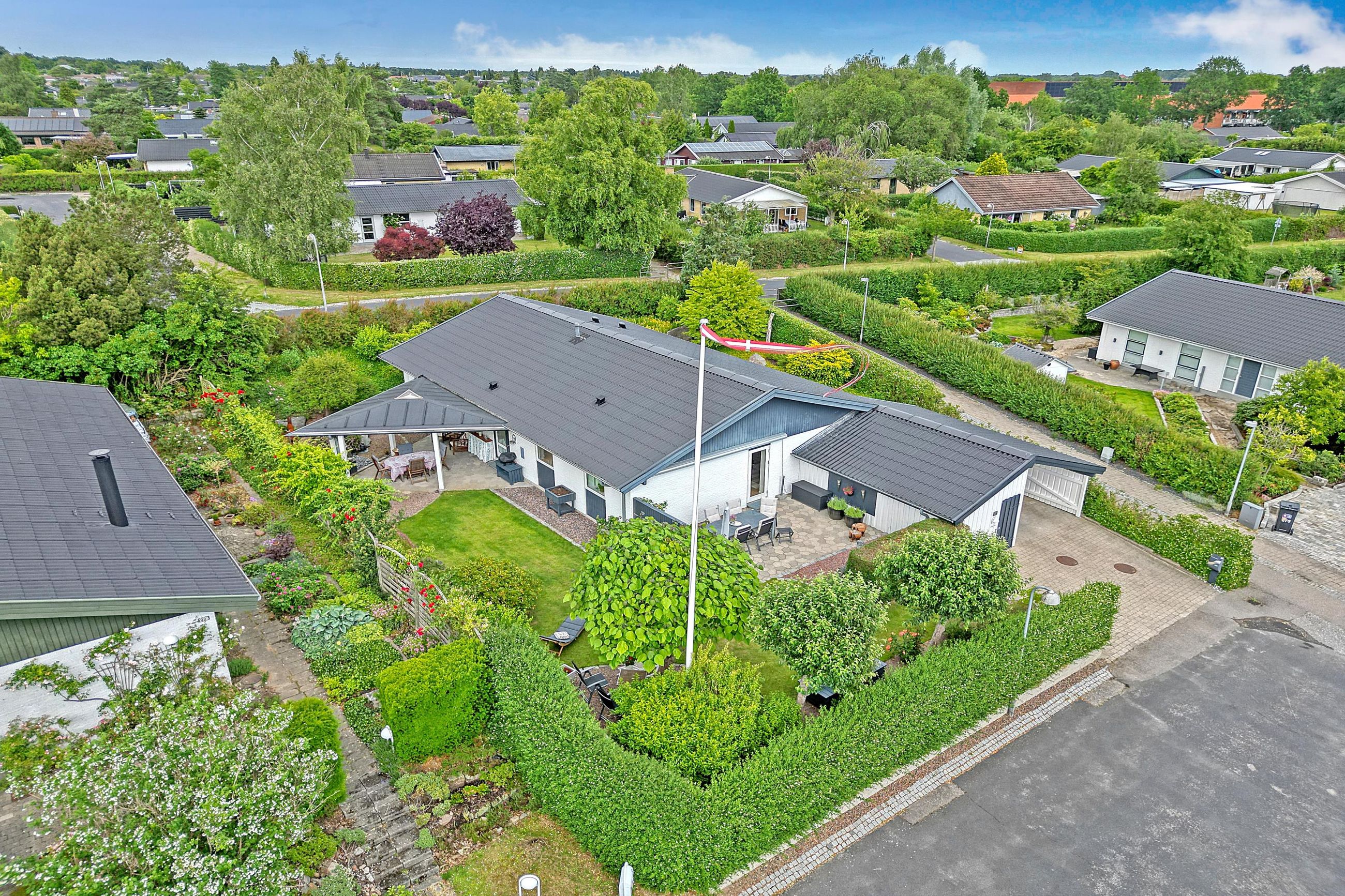 Her venter jer en rolig og tryg beliggenhed i et fredeligt villakvarter, hvor børnene leger frit på vejen, og naboerne hilser med et smil. Området er præget af mange børnefamilier, hvilket