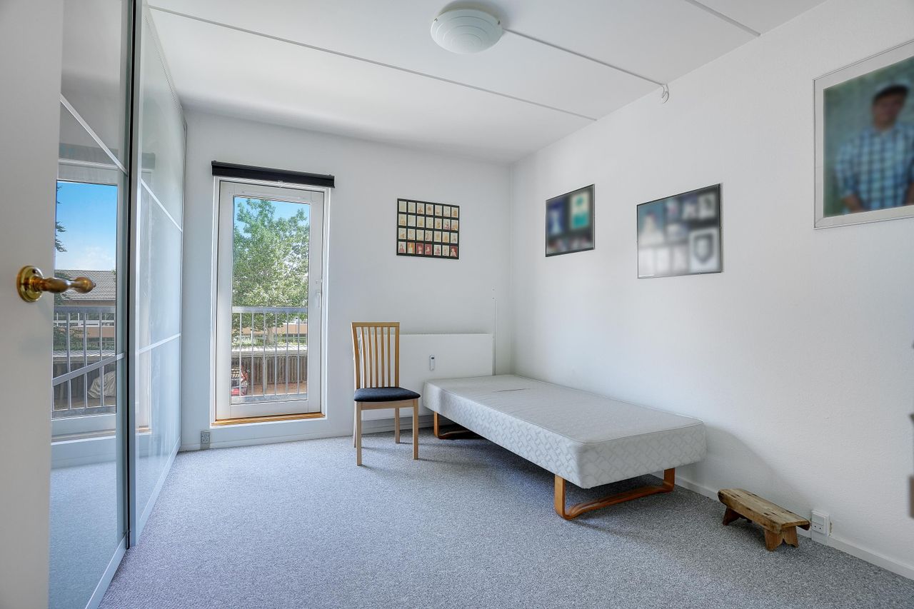 Planløsningen byder på to regulære værelser med gode opbevaringsmuligheder og plads til både seng og kontorplads. De ligger praktisk placeret i hver sin ende af boligen, hvilket giver ro og fleksibilitet, uanset livssituation.