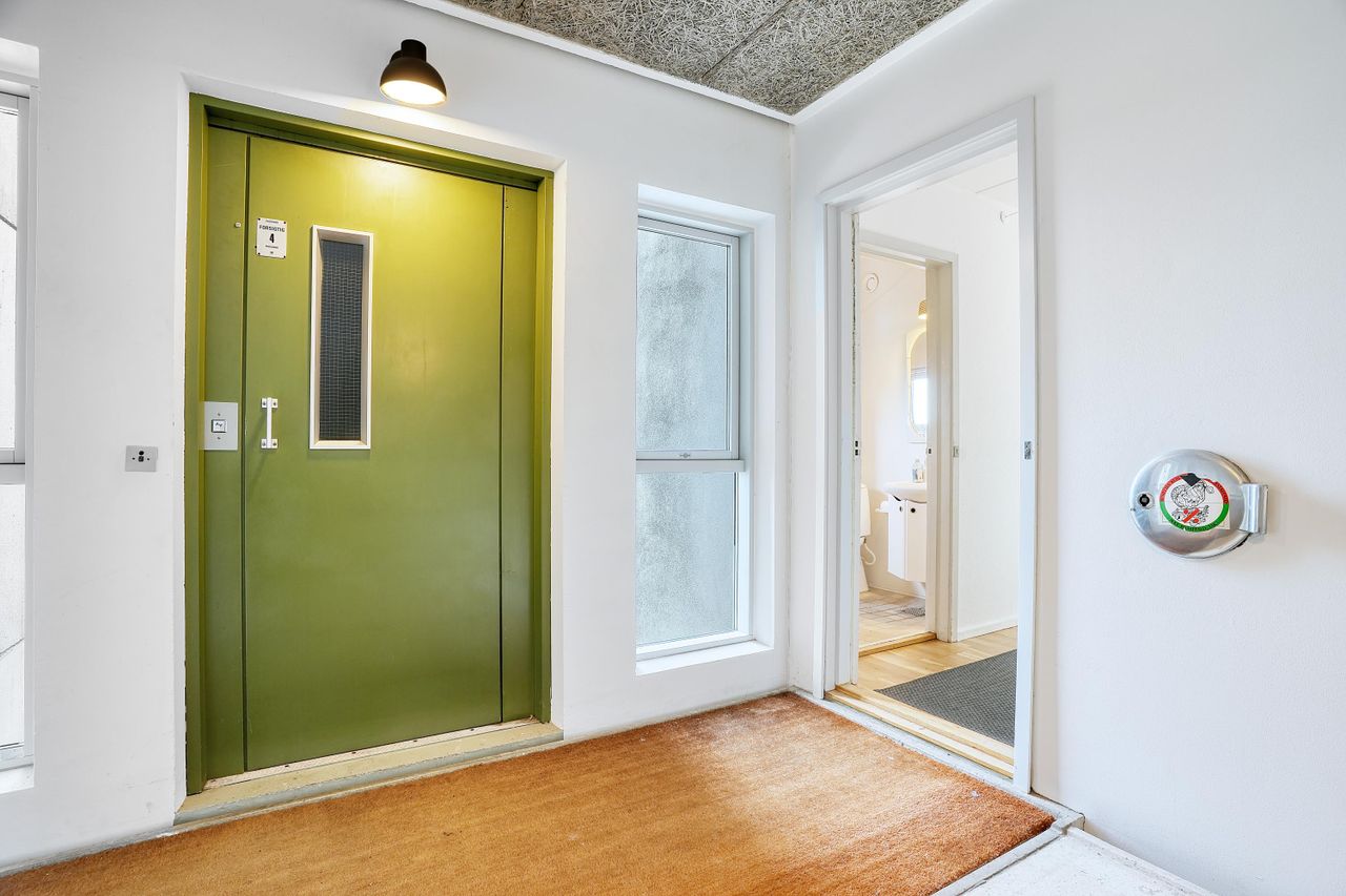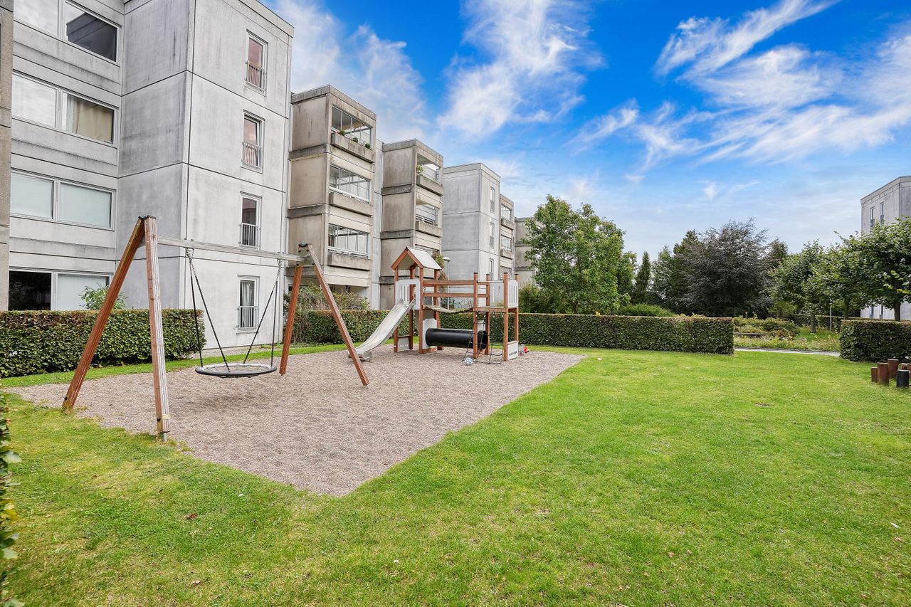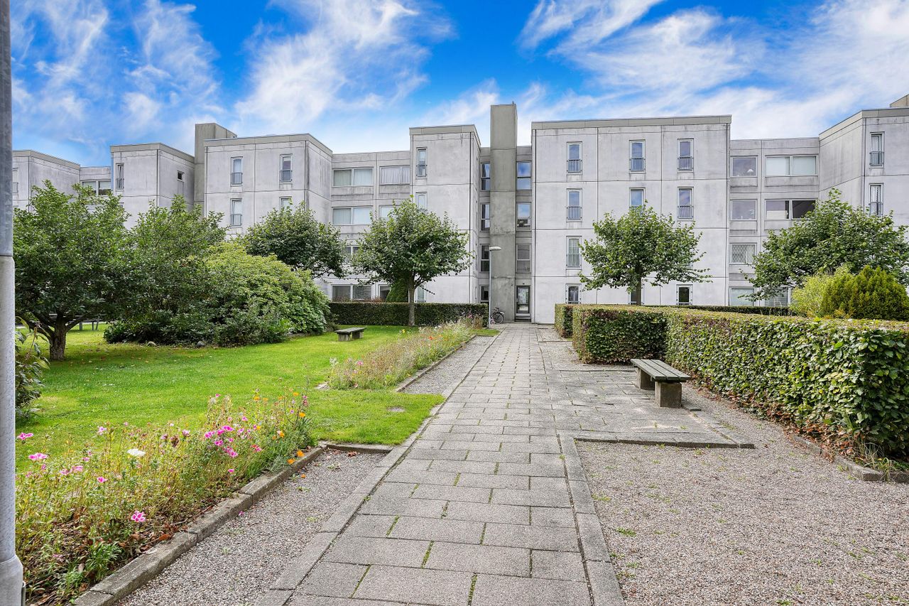 Ejendommen er udstyret med elevator og dørkaldeanlæg, hvilket gør hverdagen både bekvem og sikker. Holmegårdsparken tilbyder et fredeligt og grønt miljø med indkøb, offentlig transport og rekreative områder i gåafstand.