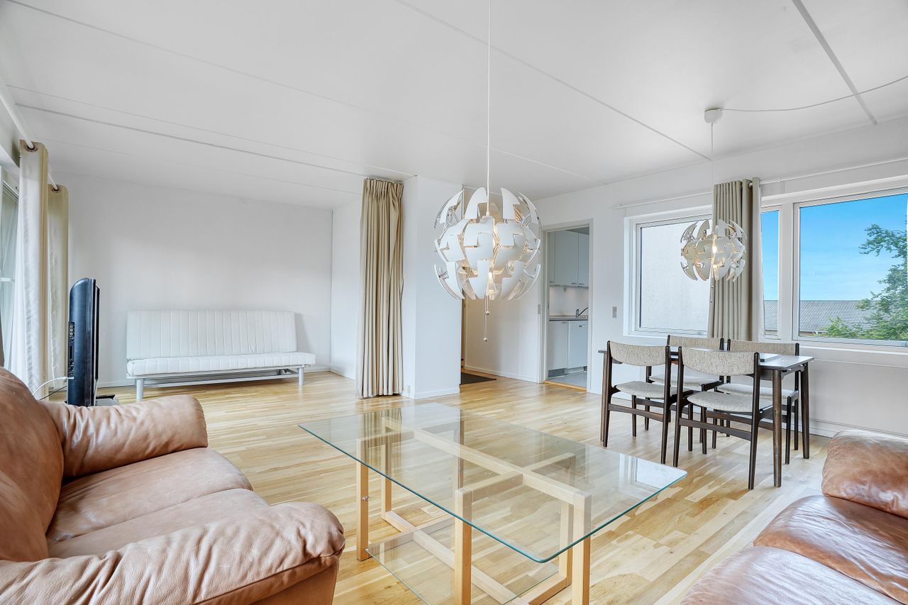 Velkommen til denne store 1-værelses lejlighed på 2. sal i Holmegårdsparken, hvor lys, plads og funktionalitet går hånd i hånd.