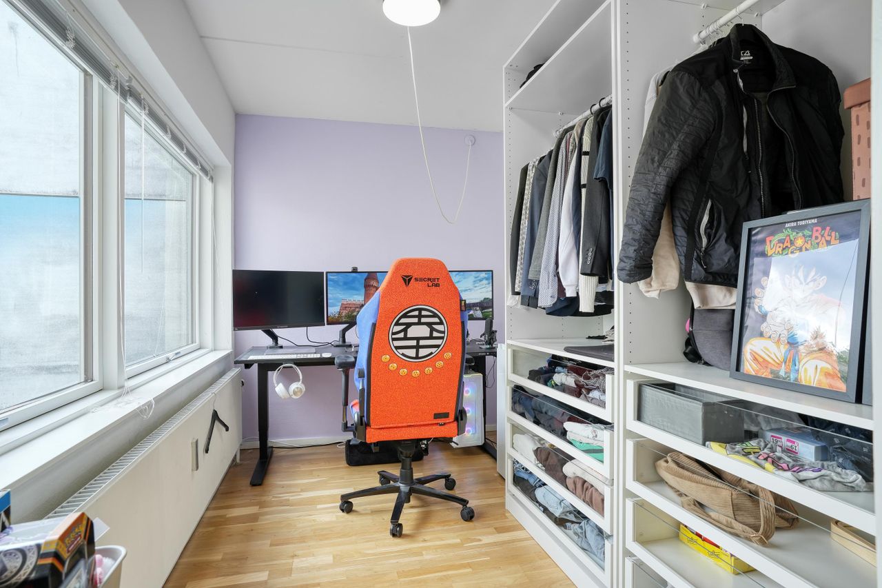 Lejlighedens hjerterum er den store opholdsstue, som har et fantastisk lysindfald fra de vestvendte vinduer, og her er både plads til spise- og sofaarrangementet. Fra opholdsstuen har du adgang til det lille kontor, som sagtens kan benyttes som sovealkove samt den store vestvendte altan med skydedør. På altanen er der rig mulighed for at indrette med flere terrassemøbler, så du i komfortable møbler, kan nyde eftermiddags- og aftensolen. Derudover er der investeret i en glasinddækning, så altanen kan benyttes som en udestue i de lidt køligere måneder eller på en regnvejrsdag.