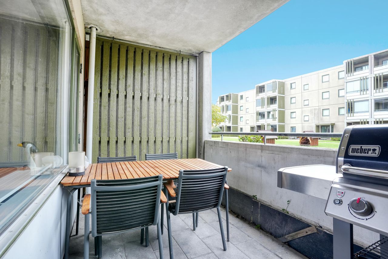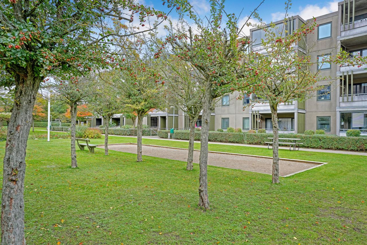 Suveræn 2V'er i veldrevet ejerforening. Indeholder stilrent spisekøkken, stor opholdsstue med direkte adgang til vestvendt altan, pænt badeværelse med bruseniche og plads til vaskemaskine/vaskesøjle, soveværelse med indbygget skab og direkte adgang til østvendt altan samt entré med indbygget skab. En helt reel toværelses som egentlig bare venter på, at du flytter ind. Og for madentusiasten er det her en lejlighed, hvor du godt kan invitere venner på besøg til en super hyggelig aften, hvor samtalerne flyder i det store køkken til et lille glas, mens du forbereder maden til dine gæster. Ejerlejligheden er omgivet af grønne velpassede fællesarealer, og her er unikke fællesfaciliteter såsom indendørs swimmingpool, sauna, boldbaner mv. Der følger naturligvis også et kælderrum med til ejerlejligheden. Der er kun få minutters gang til det lokale indkøbscenter, og offentlig transport er lige om hjørnet.