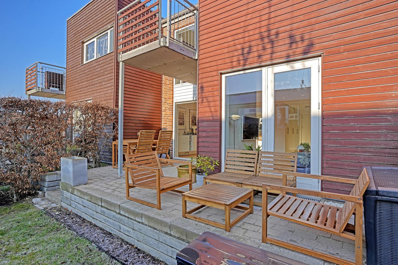 Velkommen til Brødregårdsvej 63 – Et dejligt og velindrettet rækkehus på 126 m2 fordelt over to etager. Boligen byder på masser af naturligt lys, en gennemtænkt planløsning og hyggelige udearealer.
