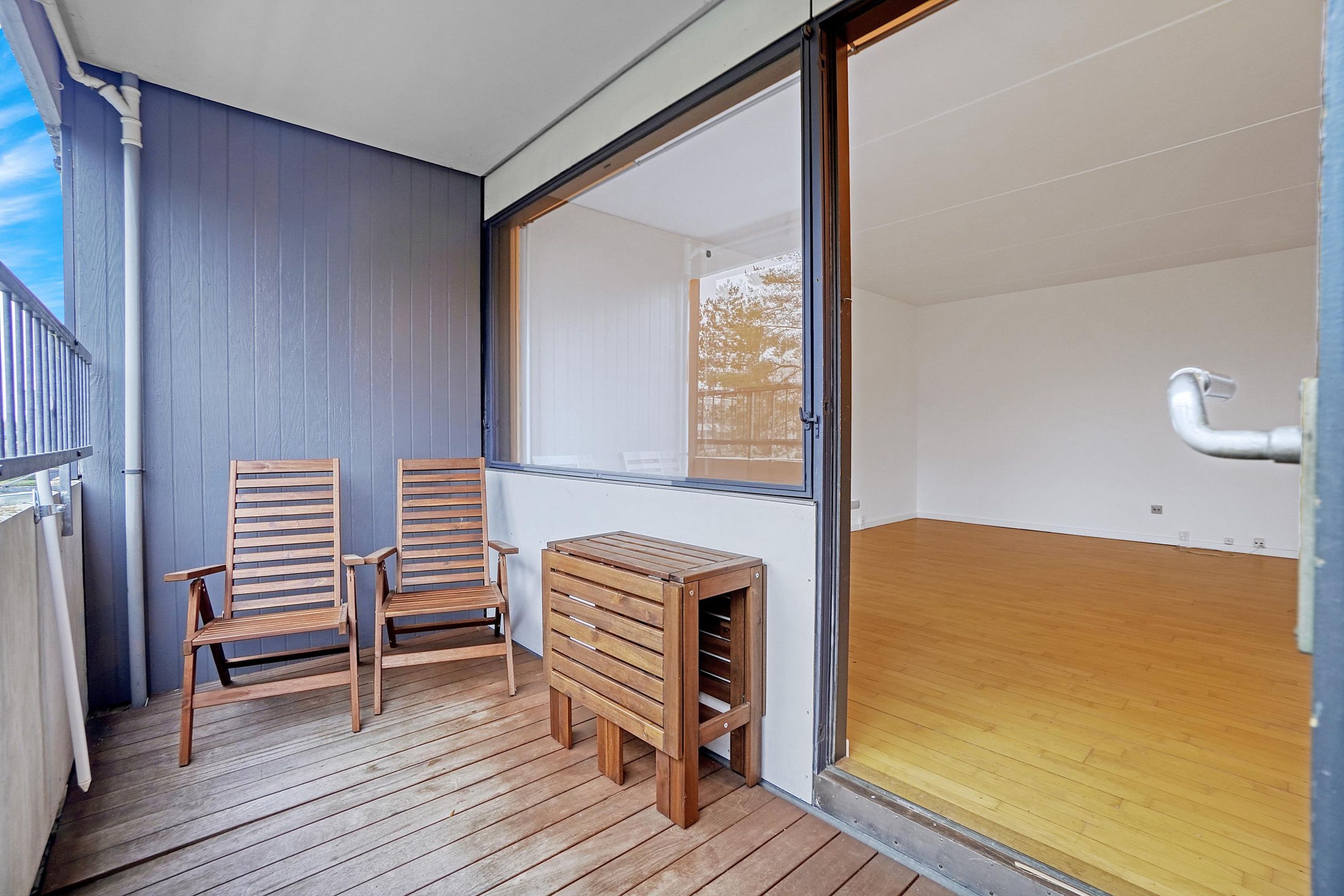 opholdsstue med kig til grønne områder. Fra stuen udgang til skøn sydvendt og solrig altan, hvorfra