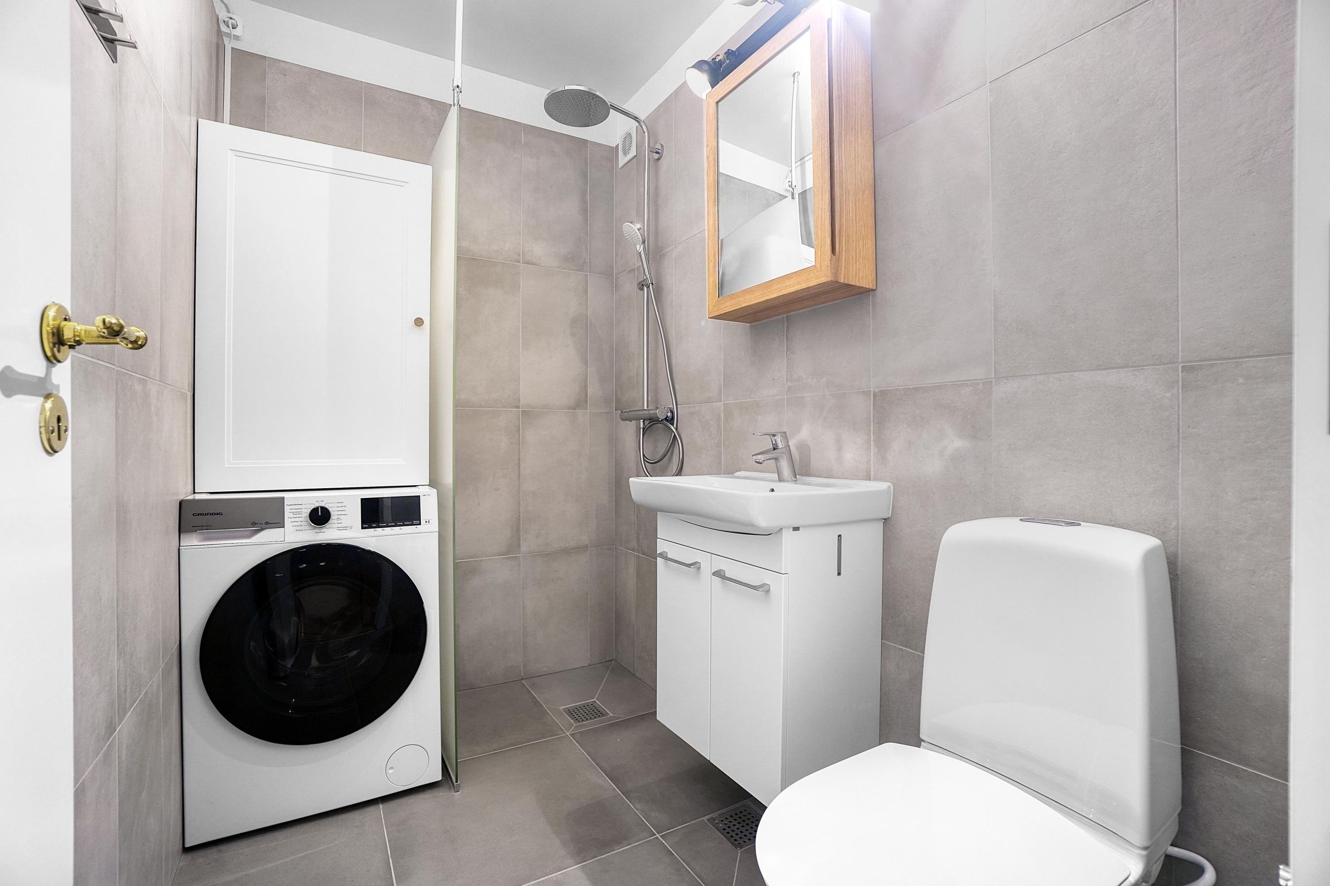 arealer. Flot eksklusivt badeværelse med bruseniche og vaske/tørremaskine og skabsplads.