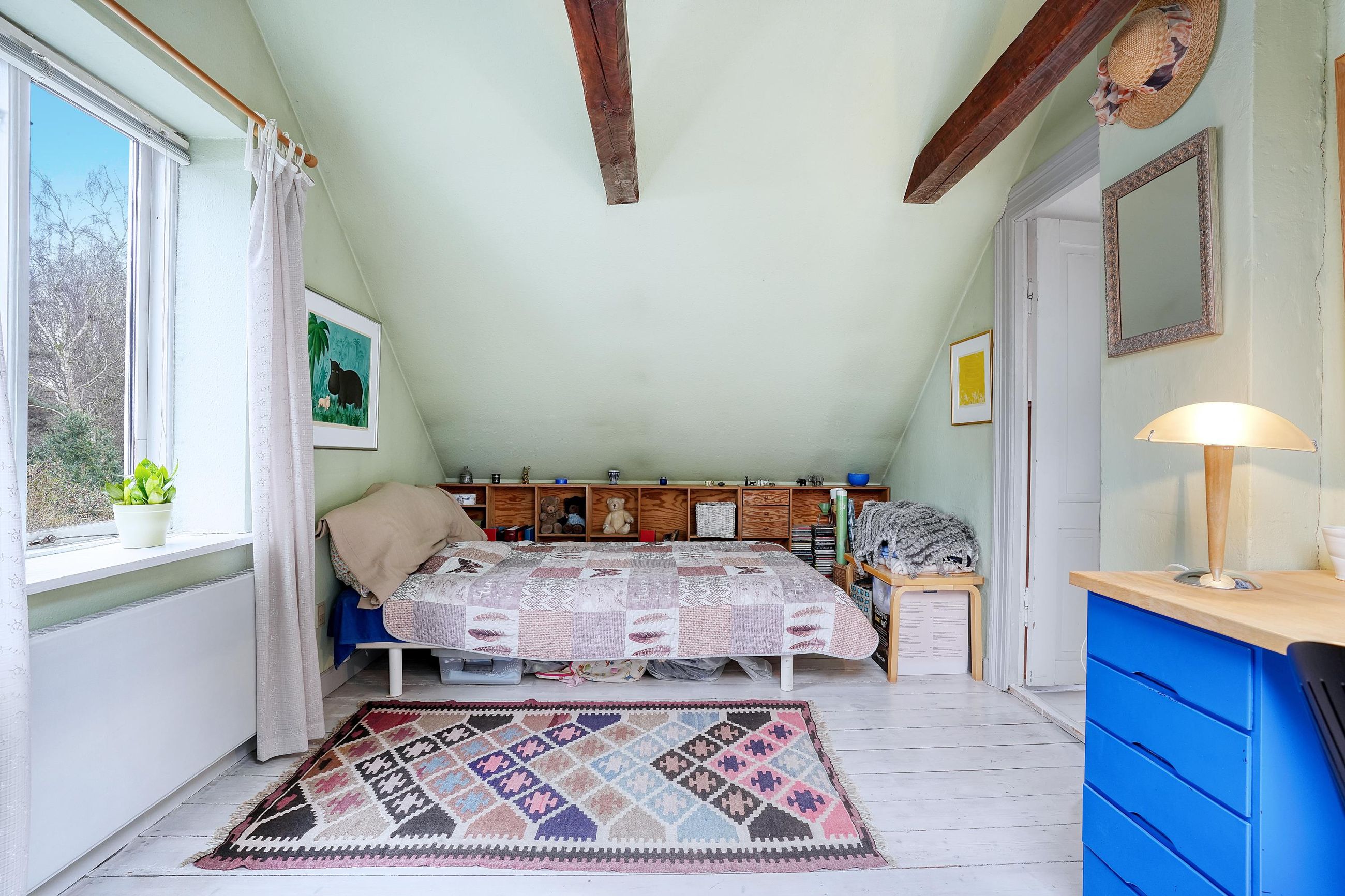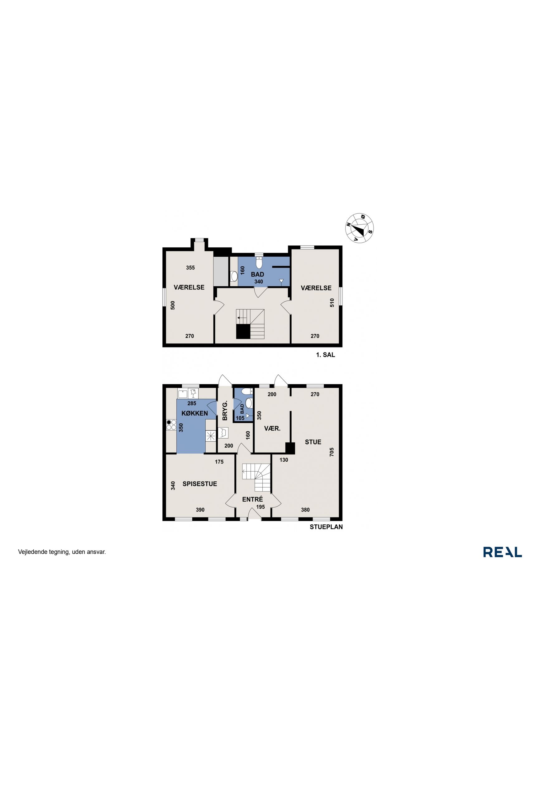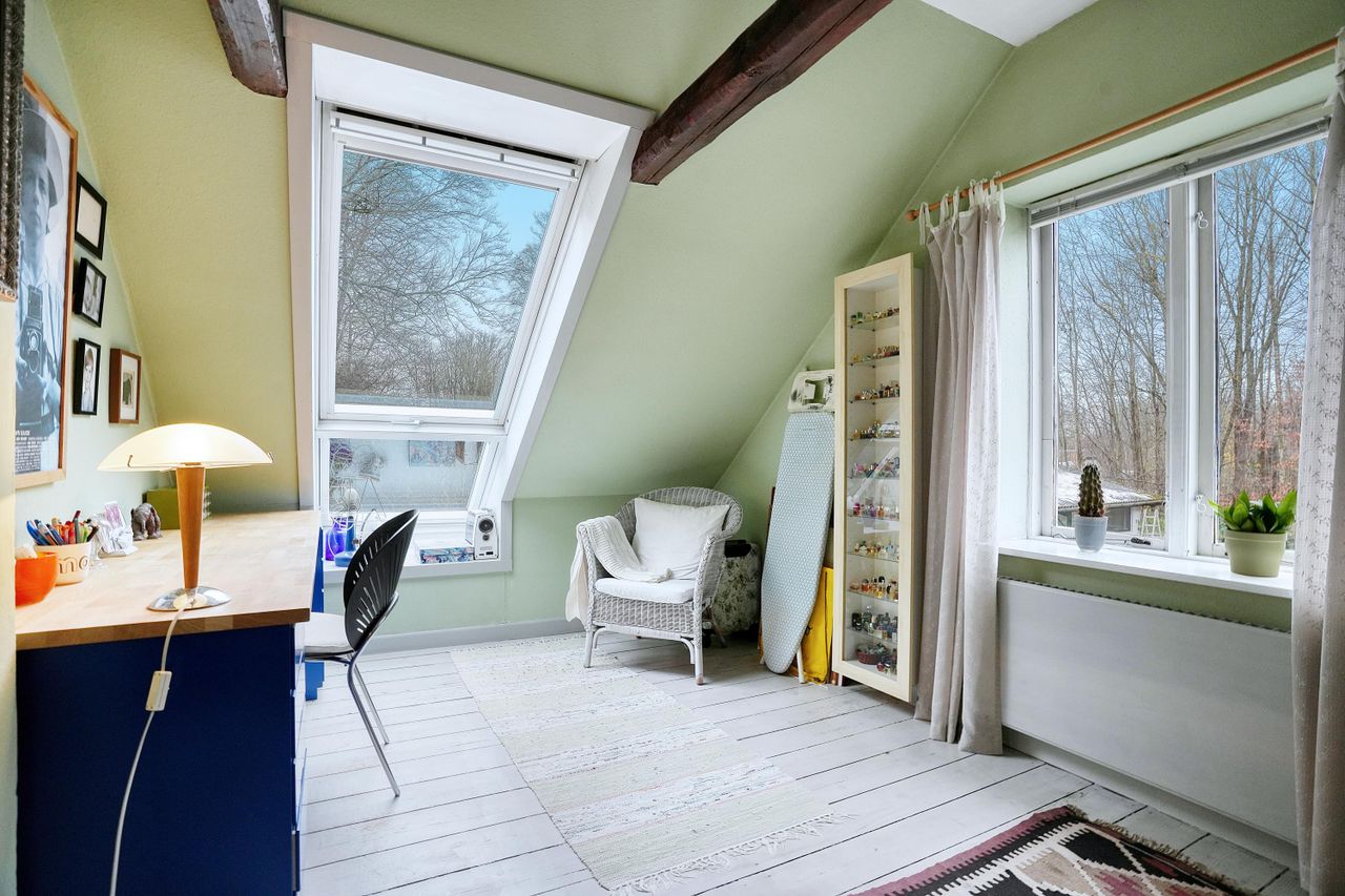 Første sal indeholder repos, brusebadeværelse og 2 soveværelser.
