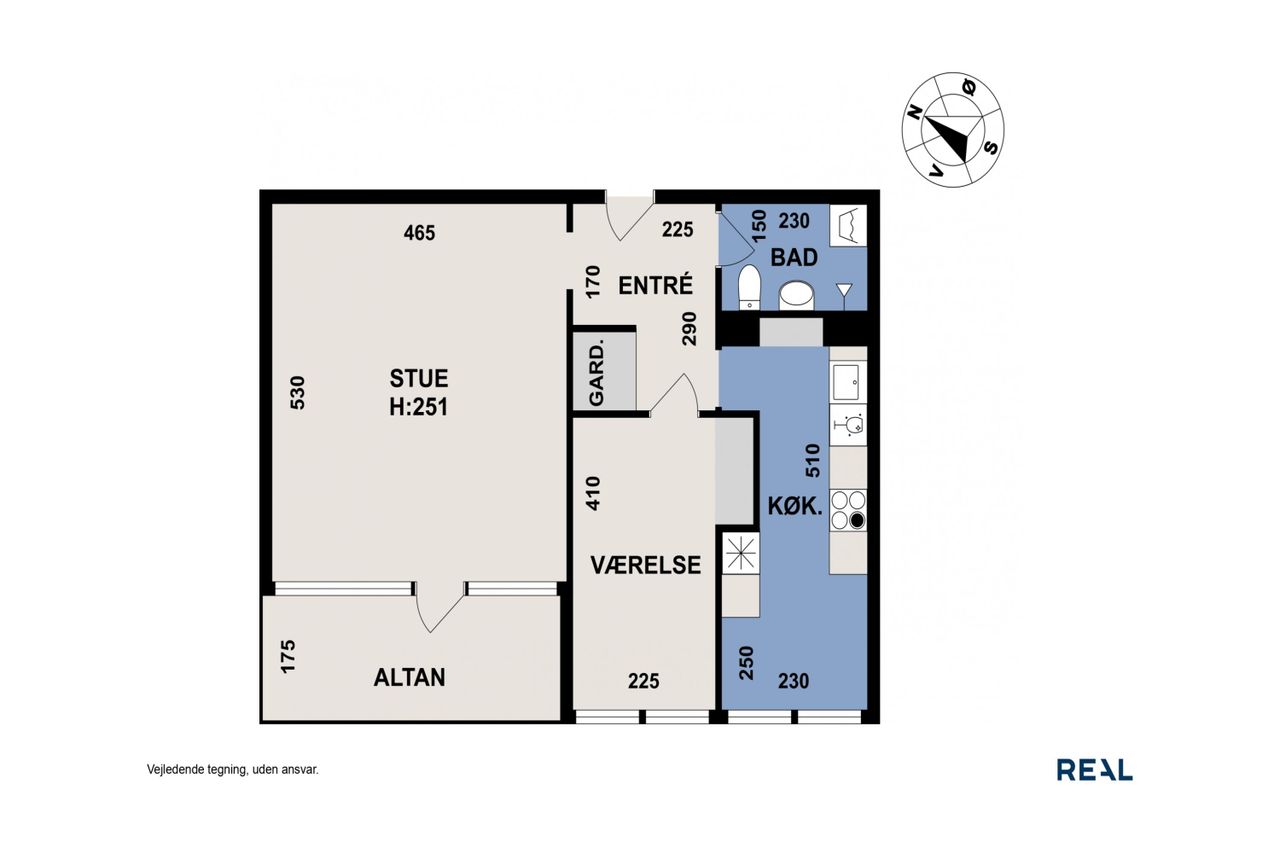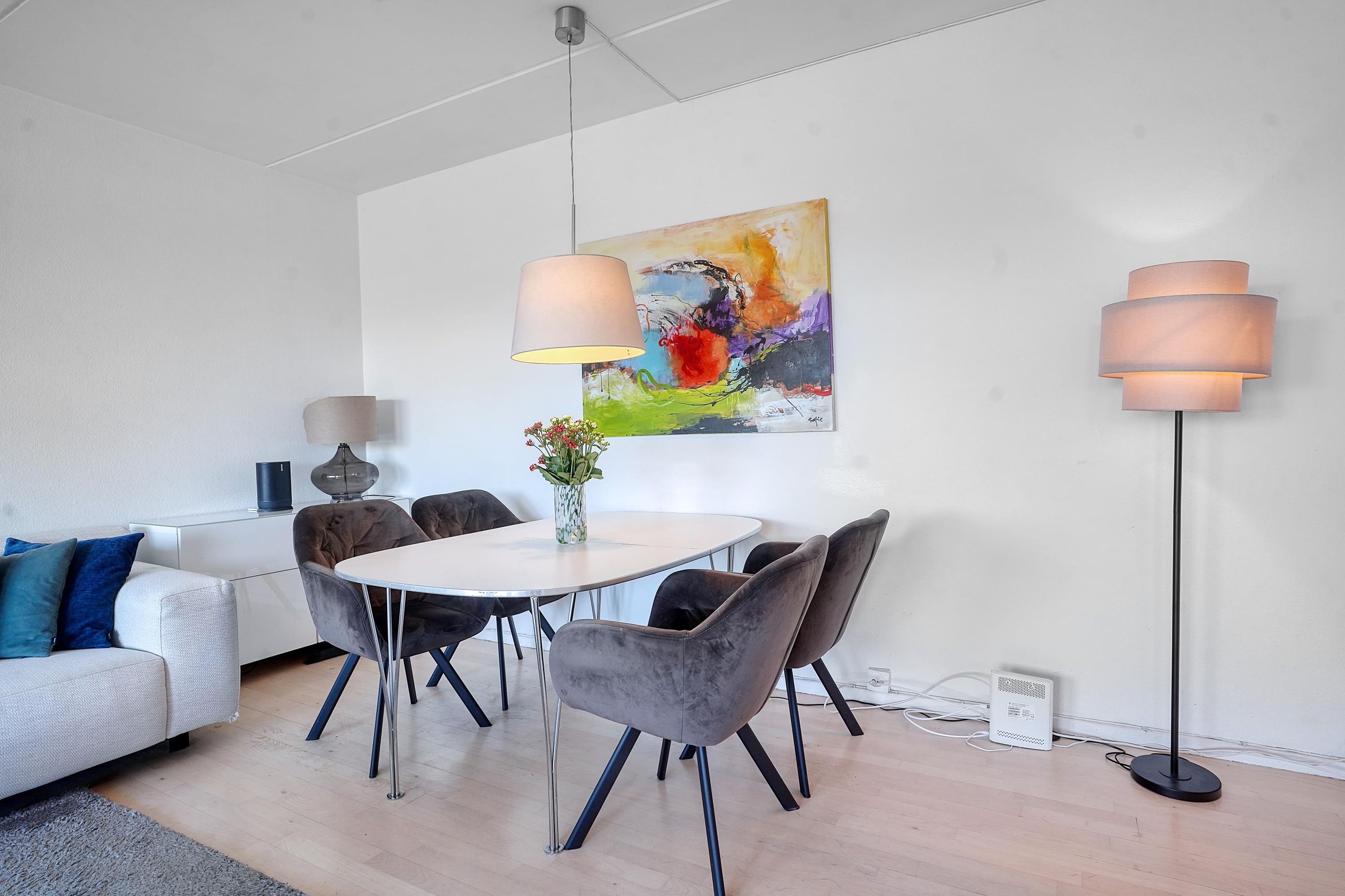 Lejligheden indeholder: stor fordelingsentre med skabe og med adgang til samtlige rum i lejligheden. Stor lys opholdsstue med udsigt. Fra stuen er der udgang til skøn vestvendt og solrig altan, hvorfra udsigten kan nydes. Soveværelse med indbygget skab. Stort nyere IKEA køkken (ca. 2022) med god skabs- og arbejdsplads samt spiseplads til flere personer. Nyere badeværelse (ca. 2023) som er med toilet, bruseafsnit og vaskemaskine. Soveværelset samt køkken har nyere vinduer (2015).
