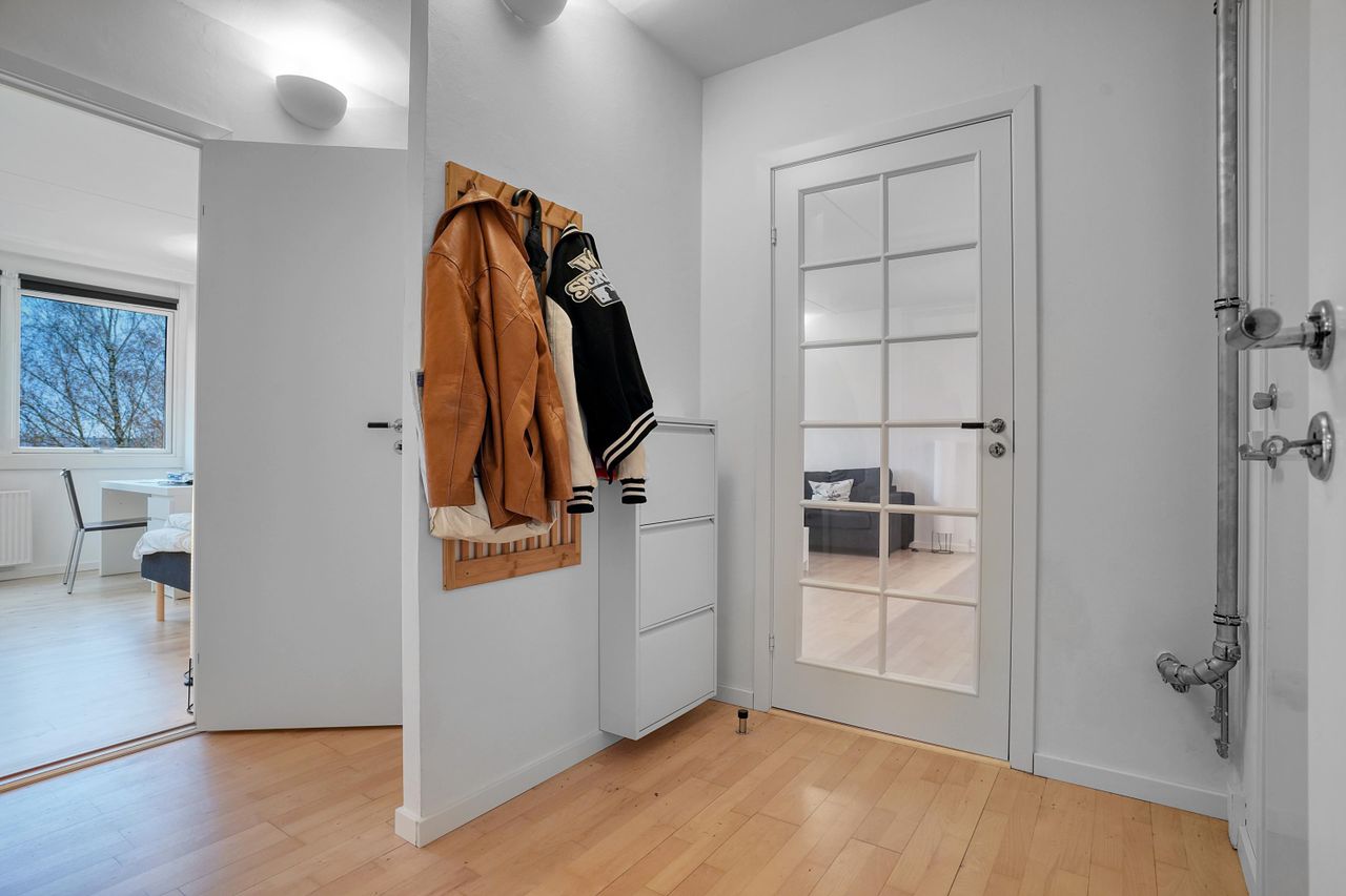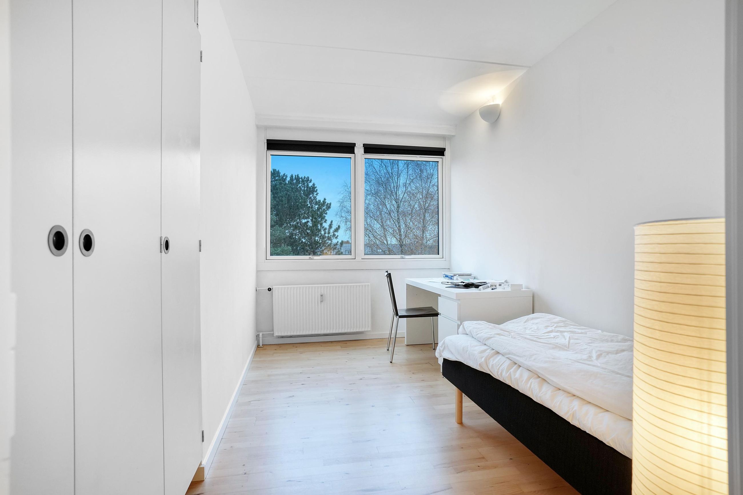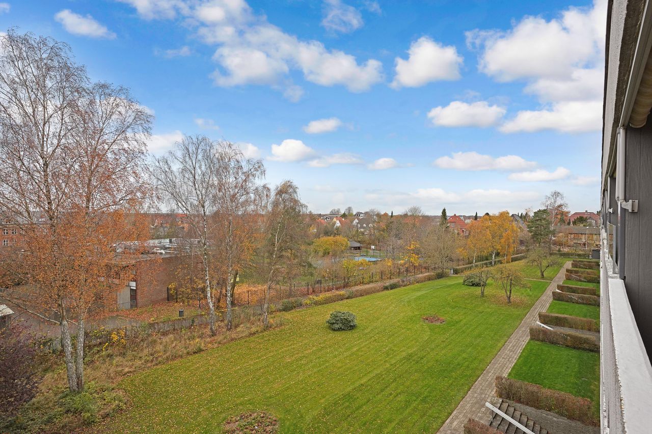 Lejligheden er unik, da den er den eneste lejlighed med denne 3 værelses indretning i hele bebyggelsen med ugenert udsigt fra alle rum.