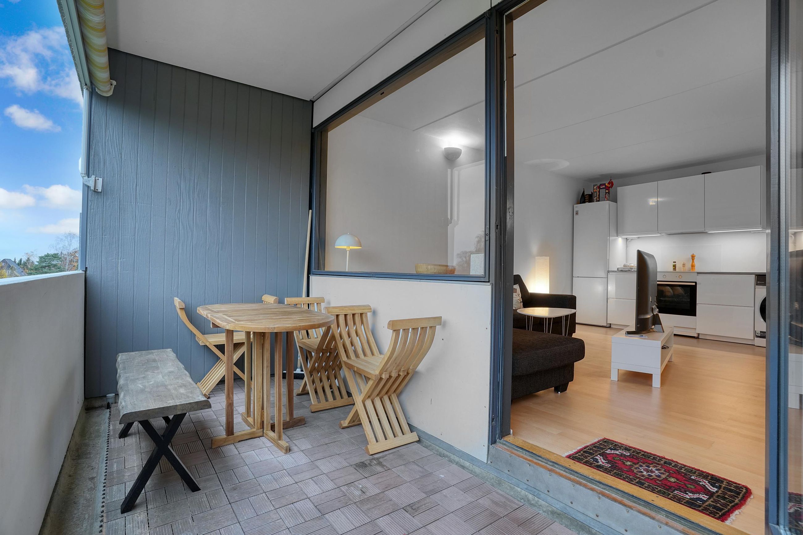 Lejligheden ligger i et område med skov og indkøb indenfor gå-afstand, ligesom Rungsted Havn og stranden kan nås indenfor 10 min. på cykel.