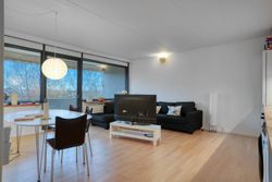 Nyrenoveret/nyombygget 3 værelses lejlighed beliggende øverst oppe på den stille side med stor vestvendt altan i ejendom med elevator. Der er en fantastisk udsigt fra altan, stue/køkken og begge værelser. Perfekt til et ungt par, en single med barn eller som en perfekt otiumbolig. Skal opleves!