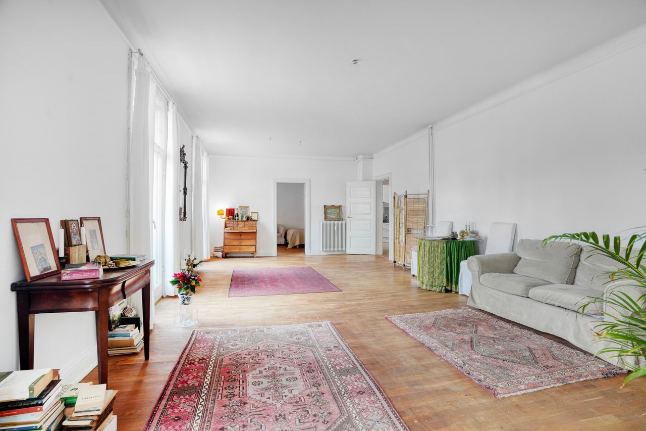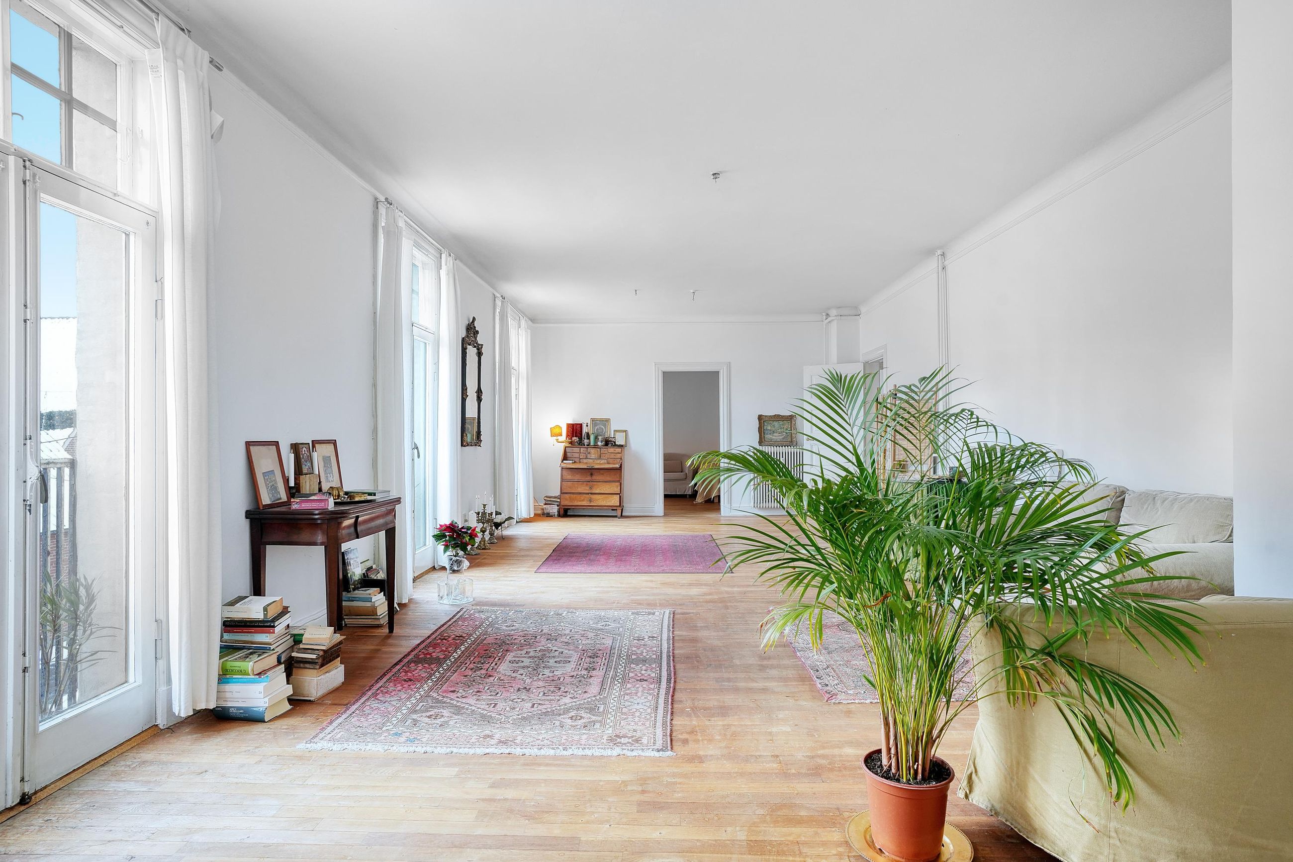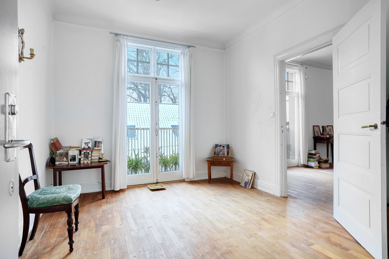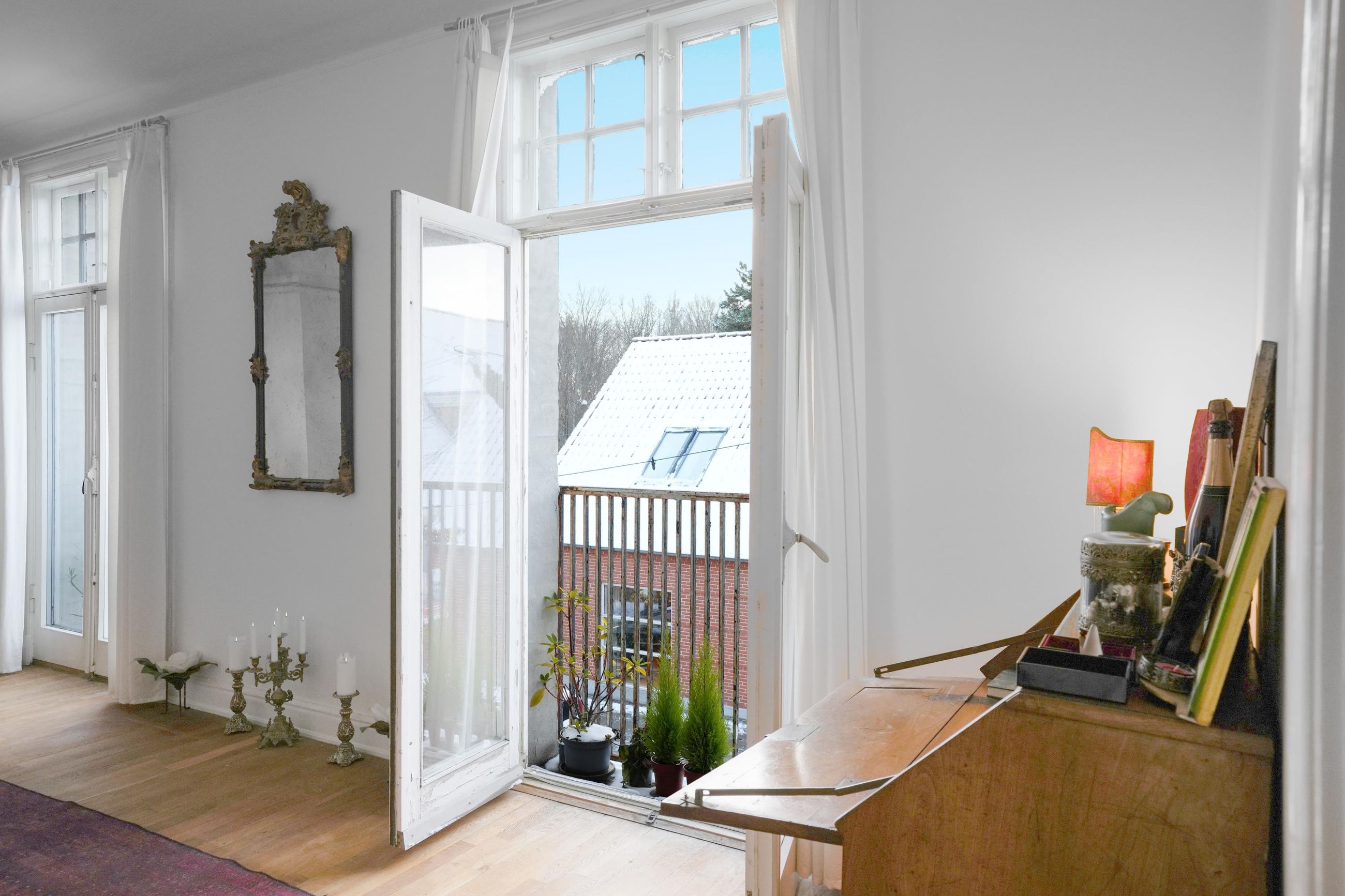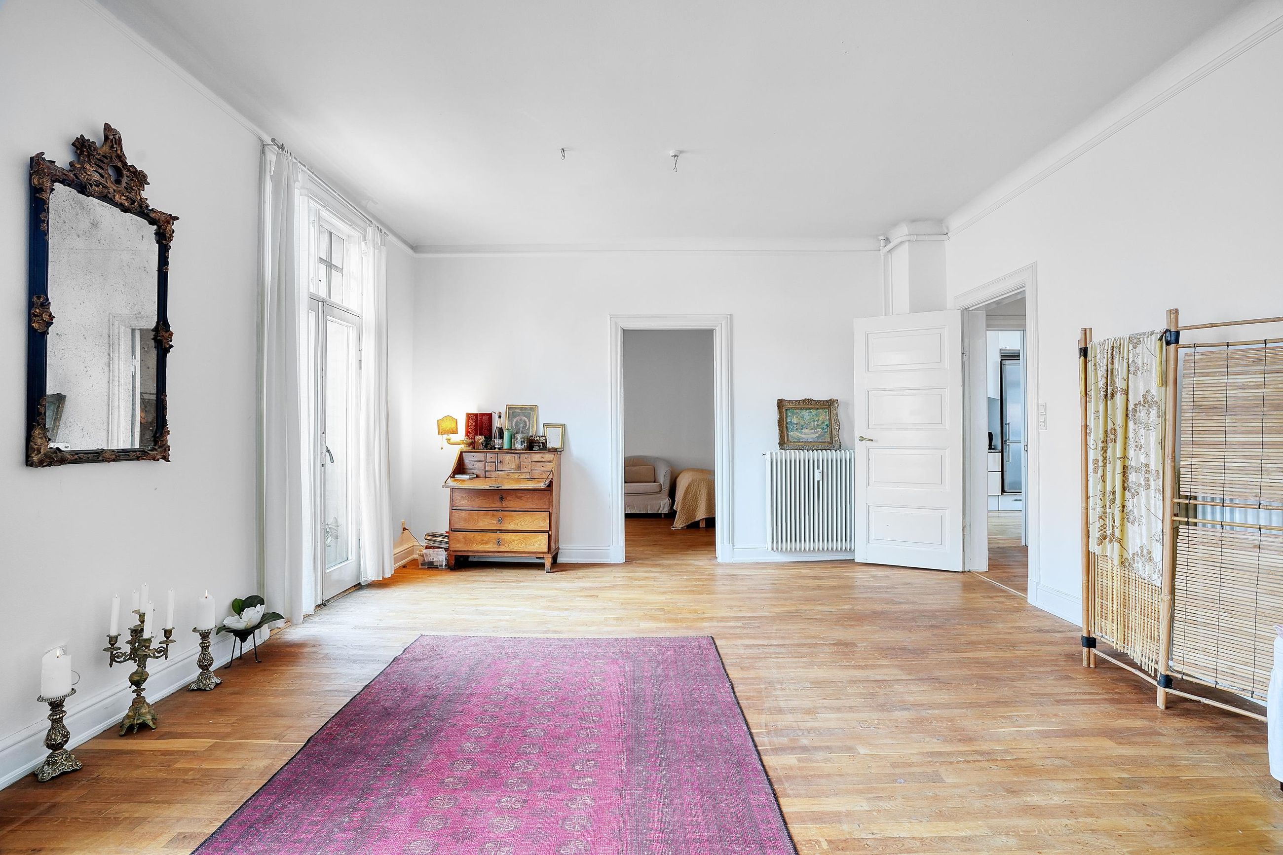 Hjertet af lejligheden er den store, lyse stue. Og de 5 franske altaner gør lejligheden hel unik og sikrer, at der kommer masser af lys ind i boligen.